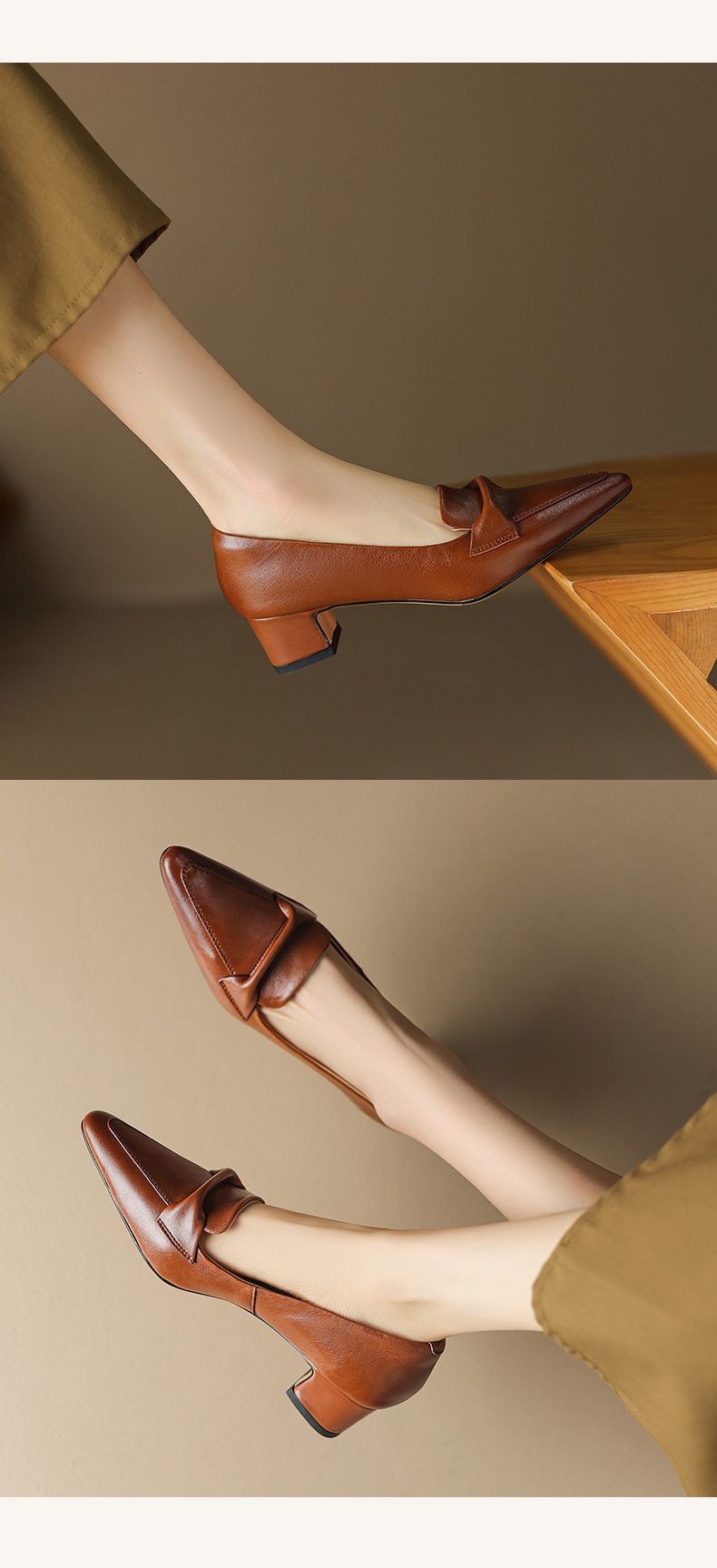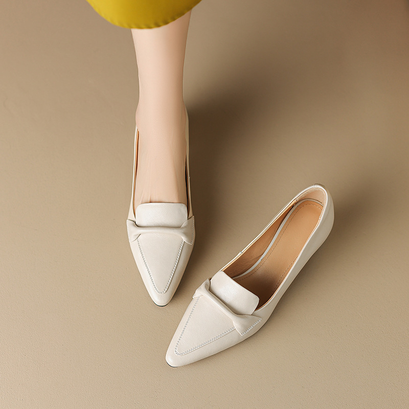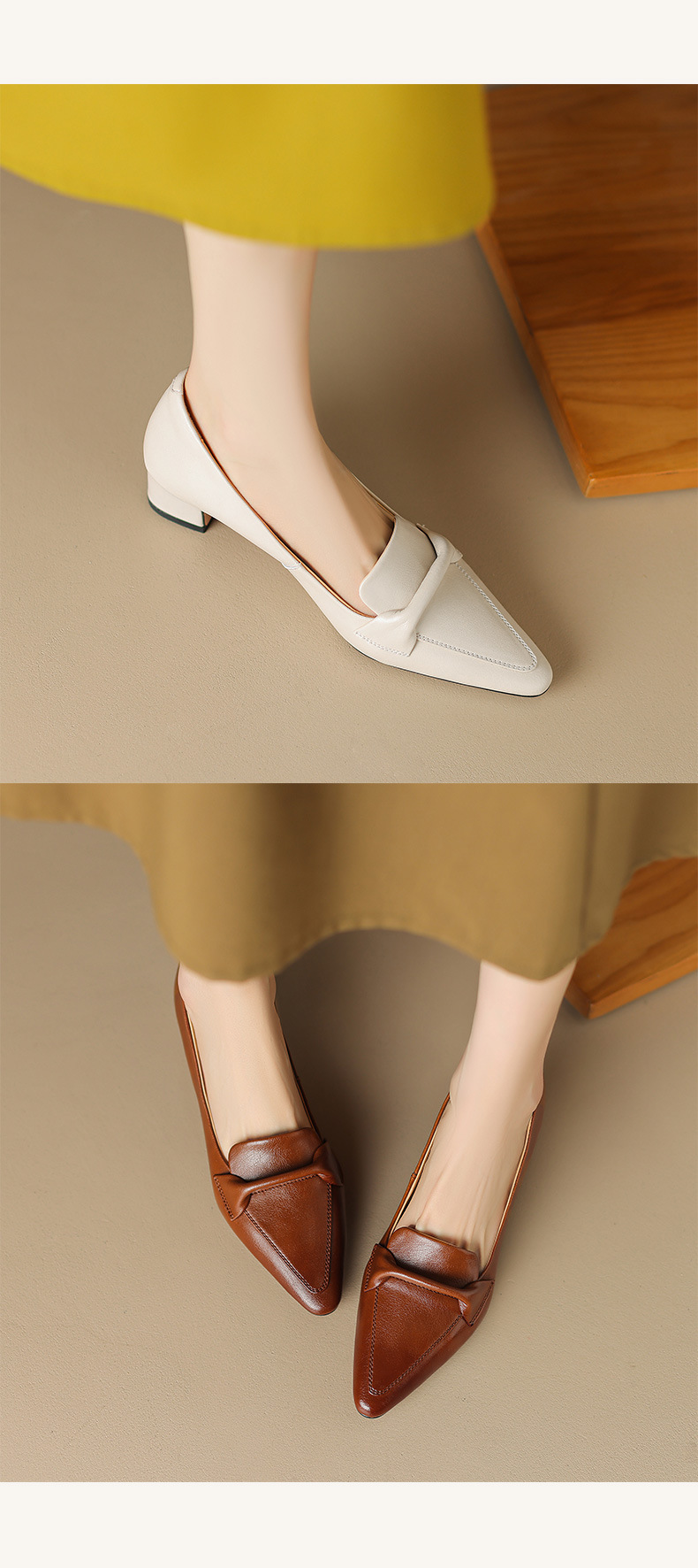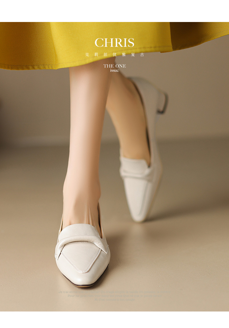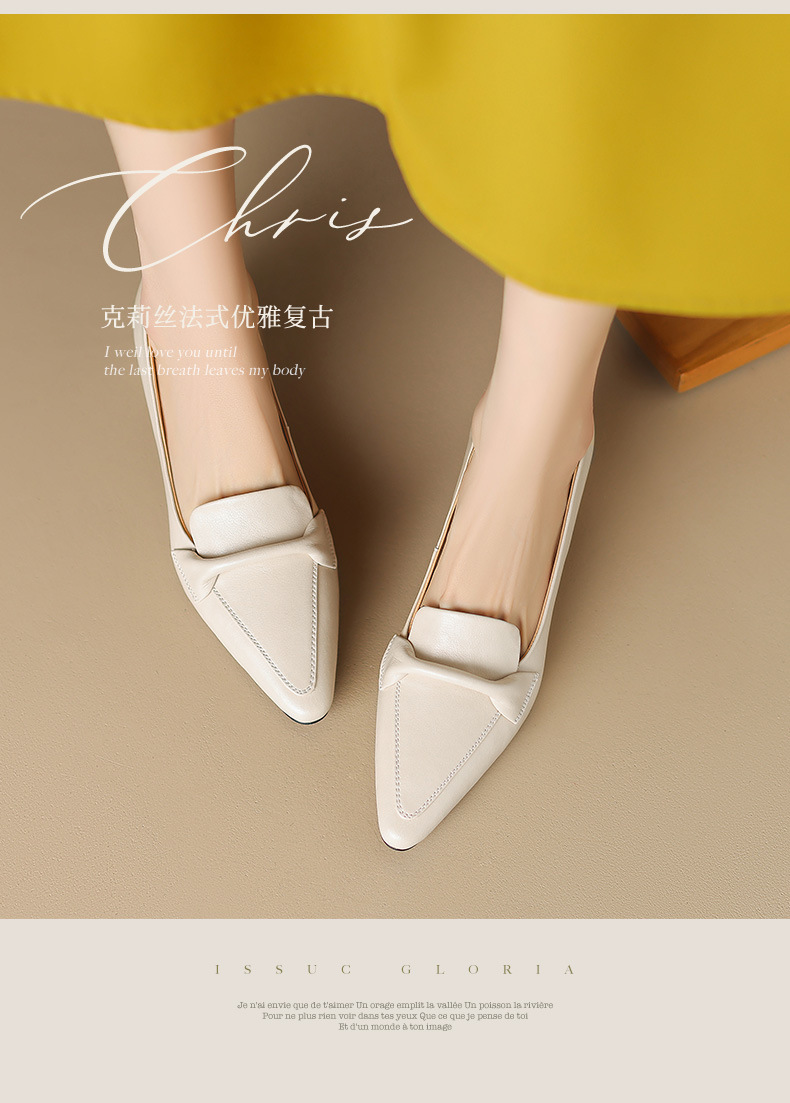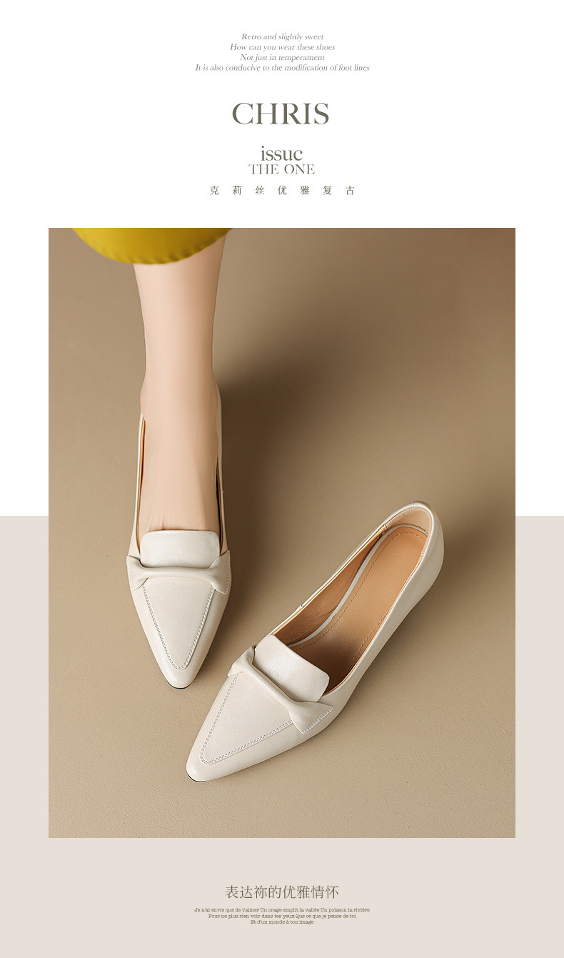 Yue Laiya ~ 작업 작은 가죽 신발 여성용 2023 봄 가을 새로운 기질 뾰족한 얕은 입 소가죽 전문 통근 신발스토어 가기