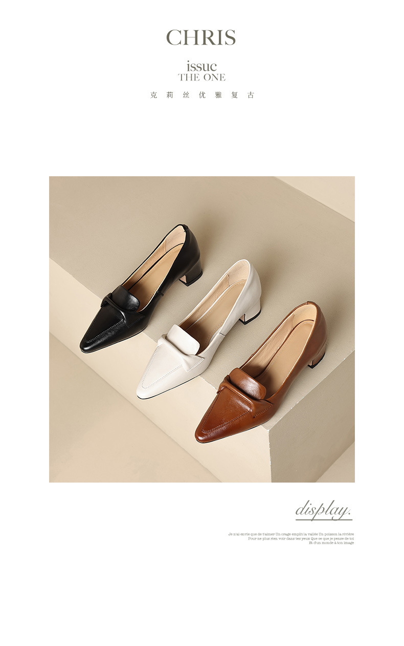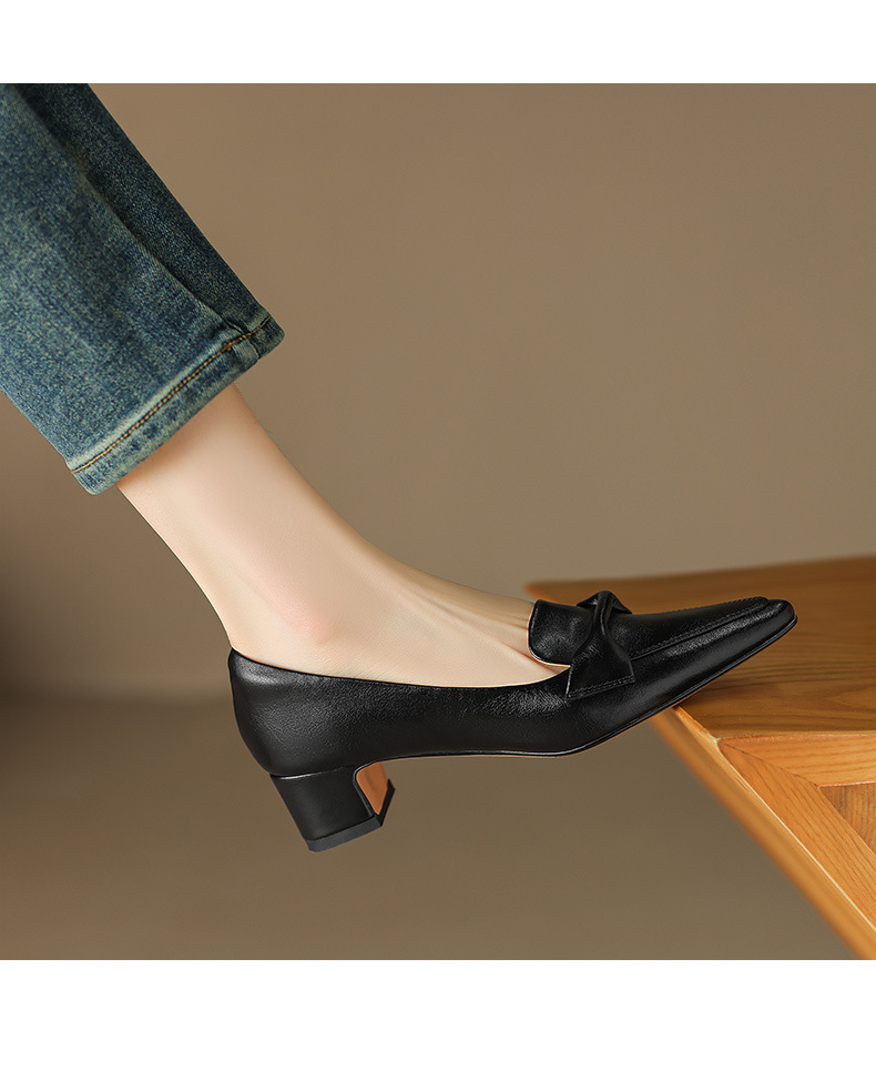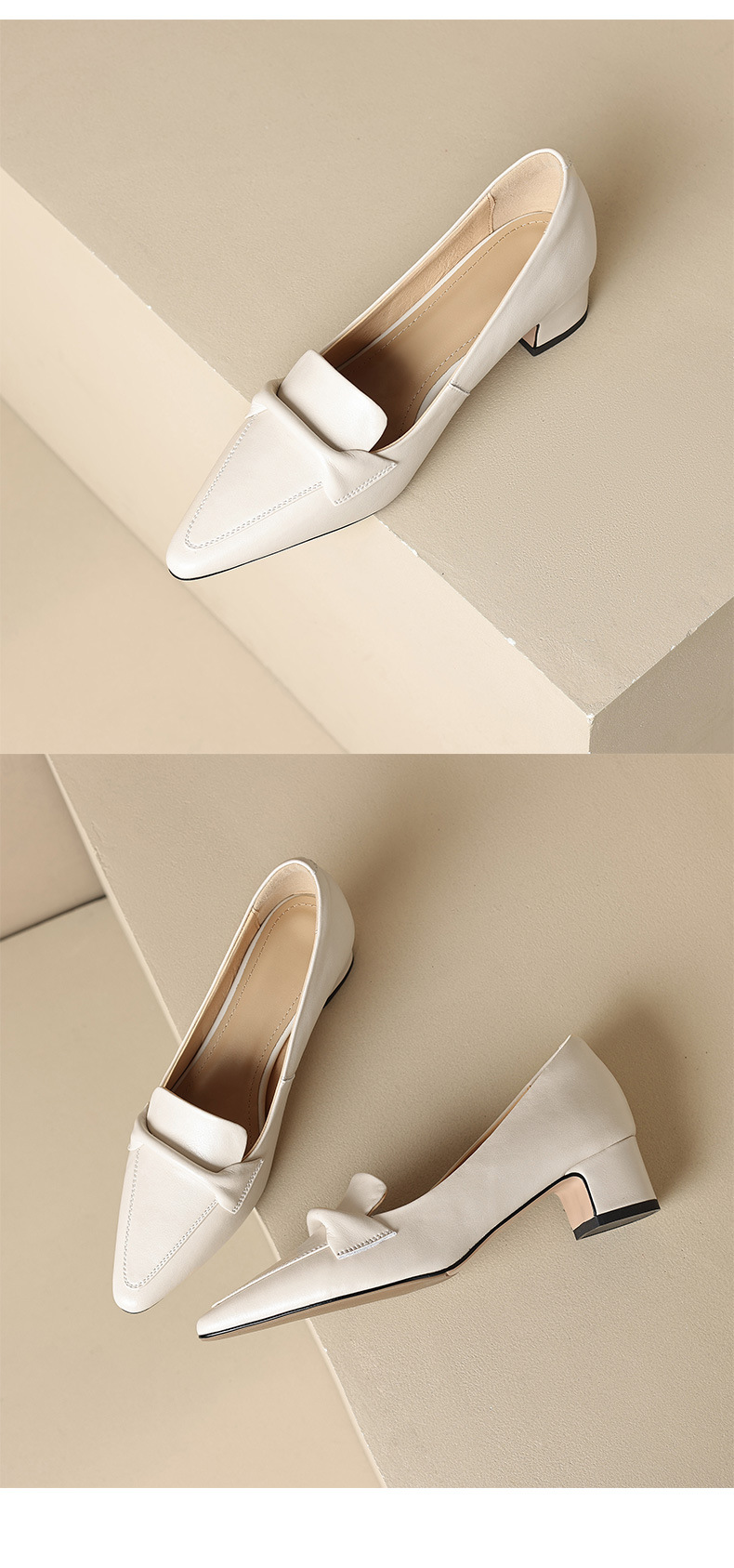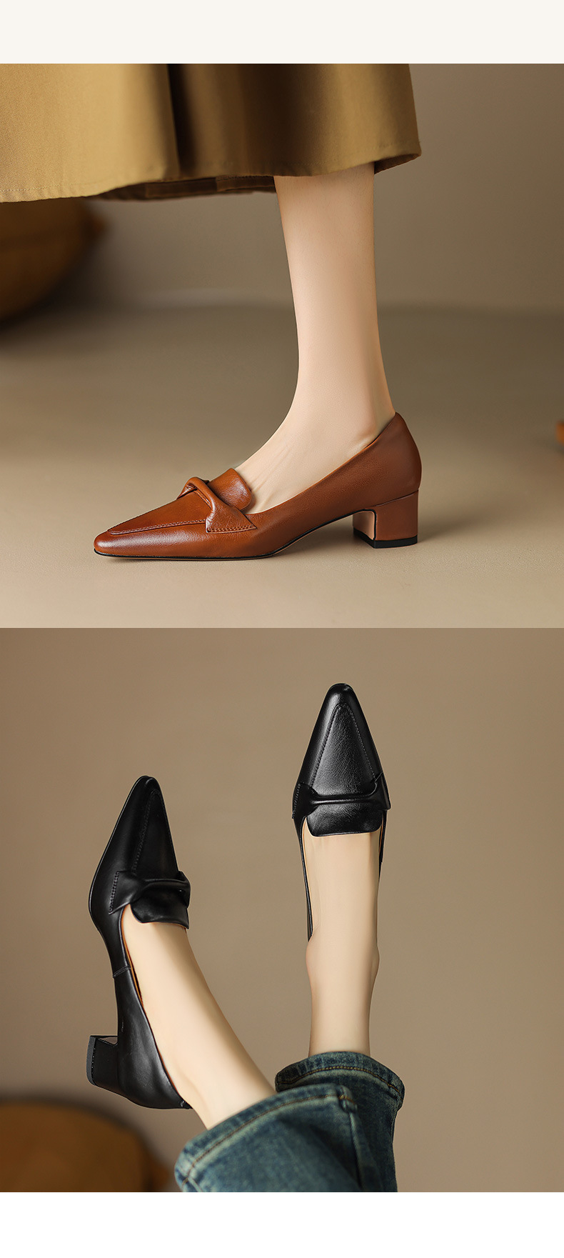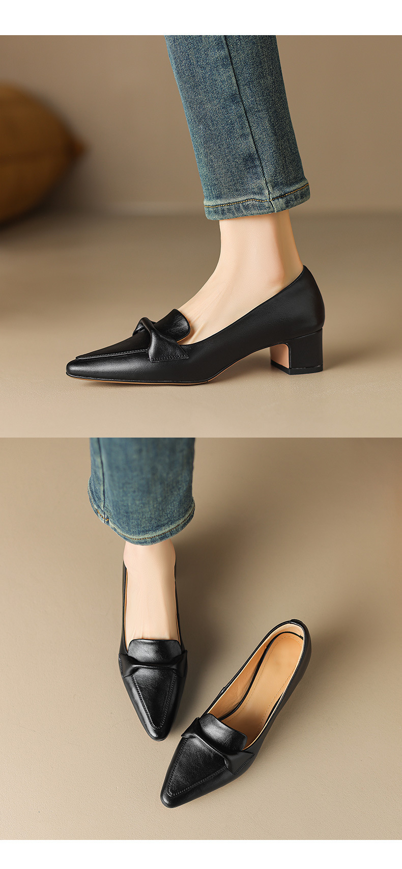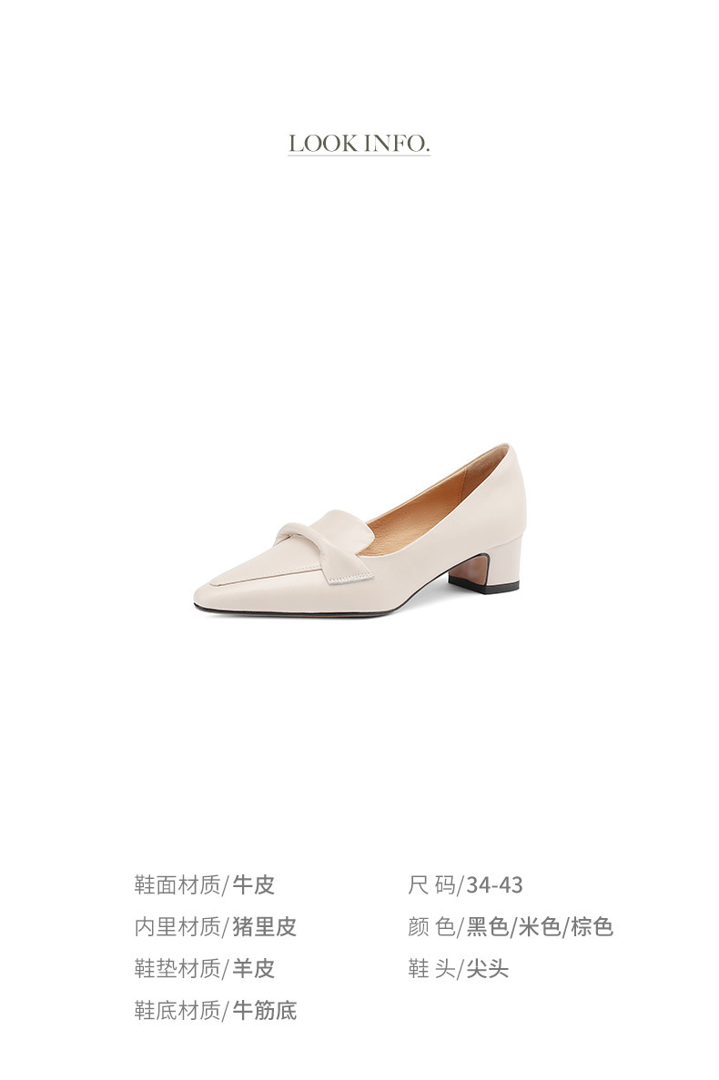 Yue Laiya ~ 작업 작은 가죽 신발 여성용 2023 봄 가을 새로운 기질 뾰족한 얕은 입 소가죽 전문 통근 신발스토어 가기