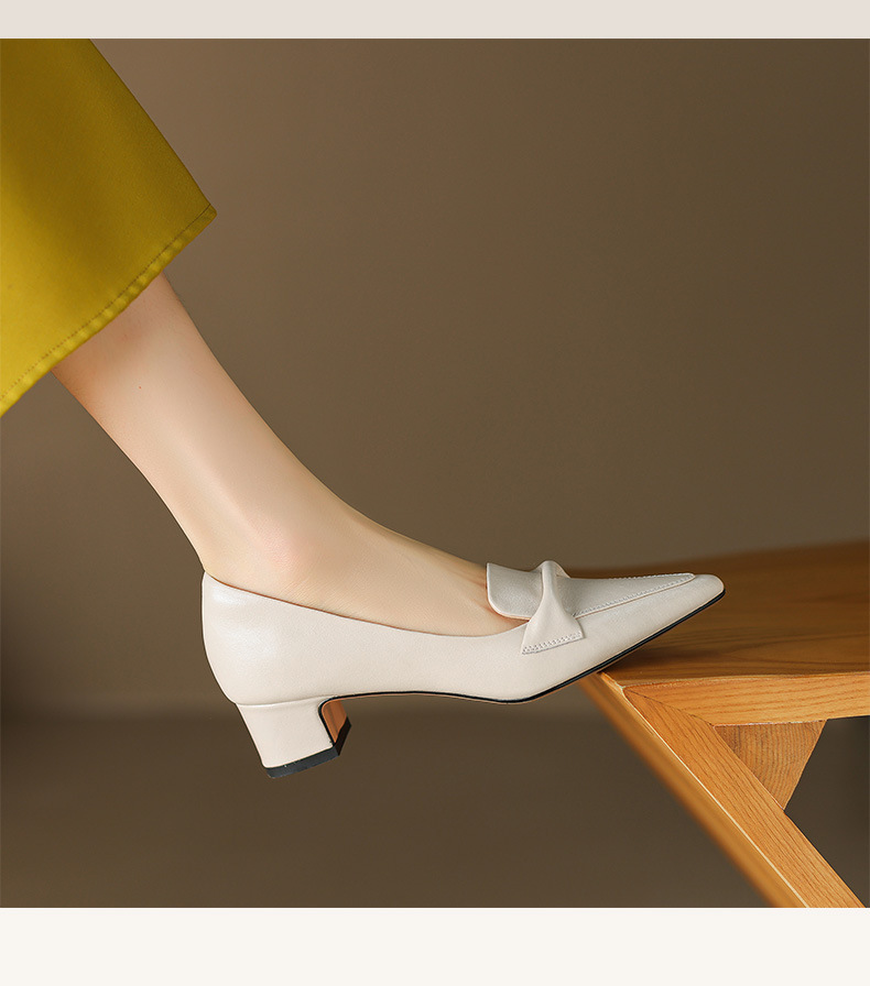 Yue Laiya ~ 작업 작은 가죽 신발 여성용 2023 봄 가을 새로운 기질 뾰족한 얕은 입 소가죽 전문 통근 신발