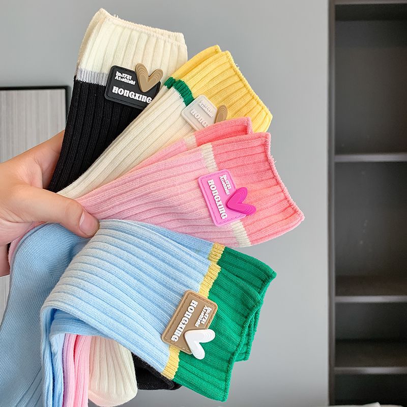 도파민 컬러 착용 양말 여성용 폴리에스터 면 싱글 바늘 얇은 여름 더블 컬러 중간 튜브 액세서리 트렌디 양말 유행스토어 가기