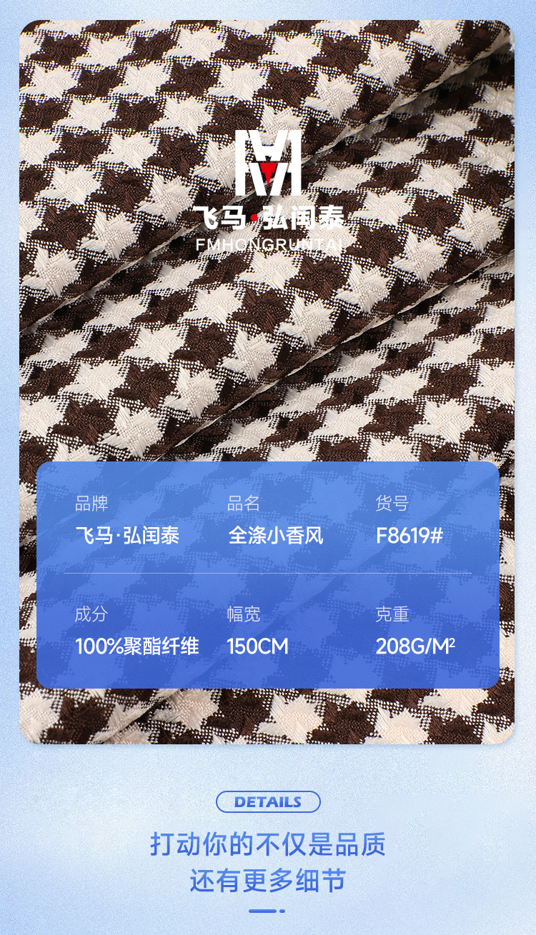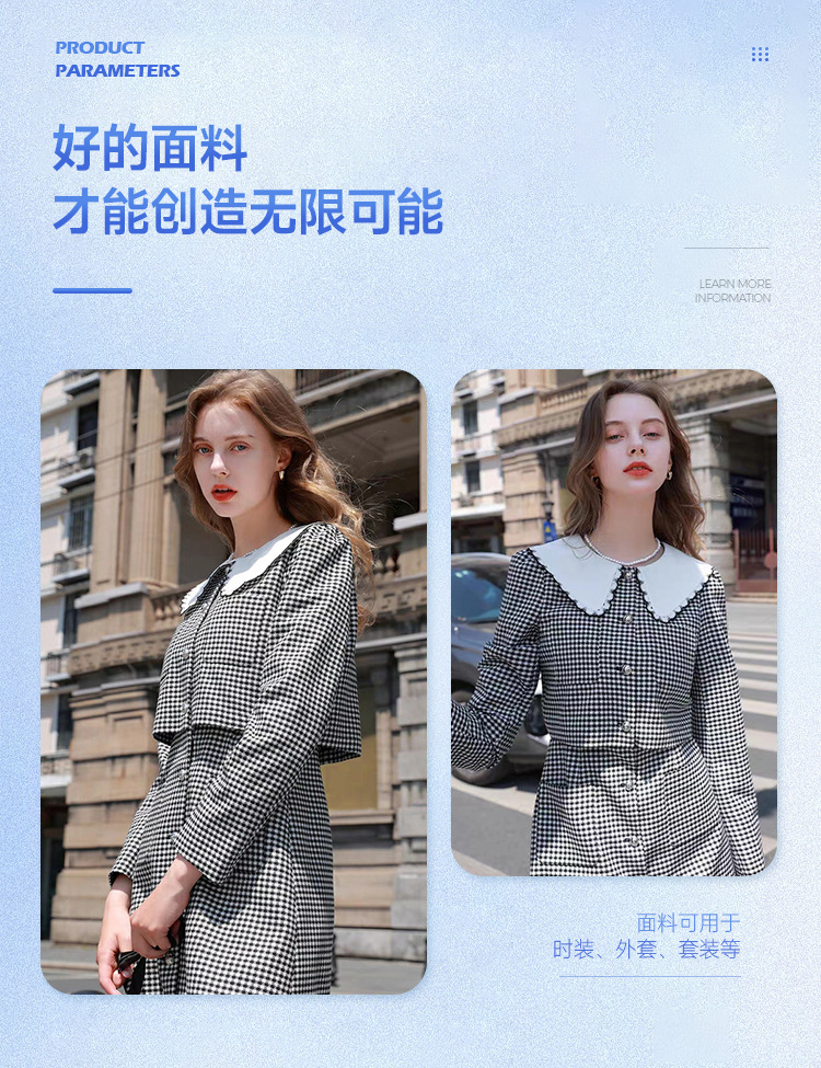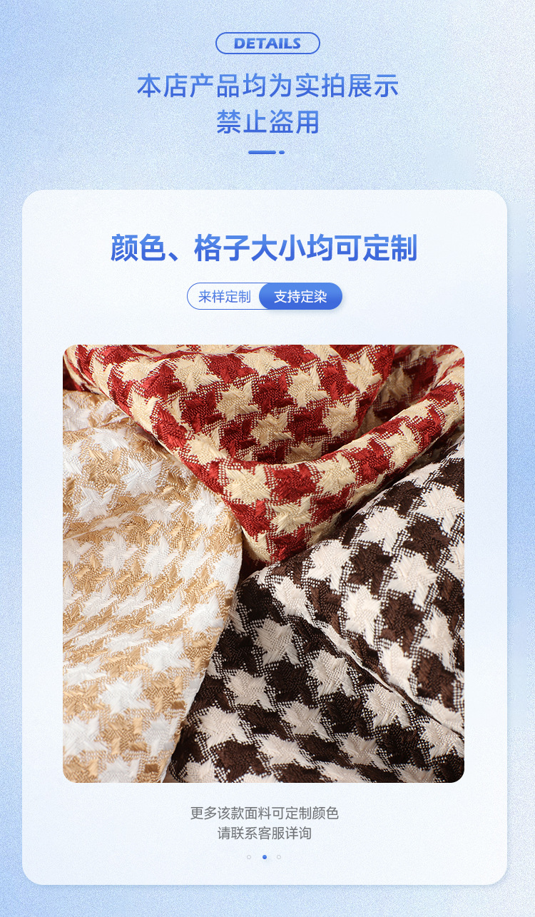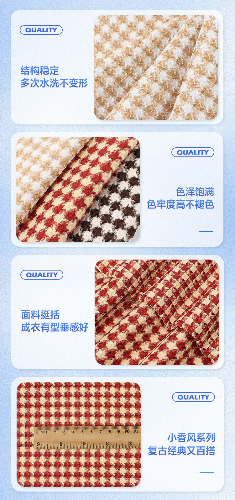 재고 208g 폴리 에스터 모직 작은 향기로운 바람 하운드 투스 패브릭 여성용 짧은 스커트 아동복 신발 가방 홈 패브릭스토어 가기