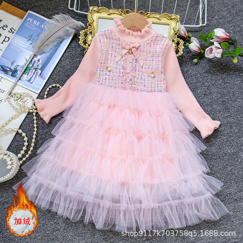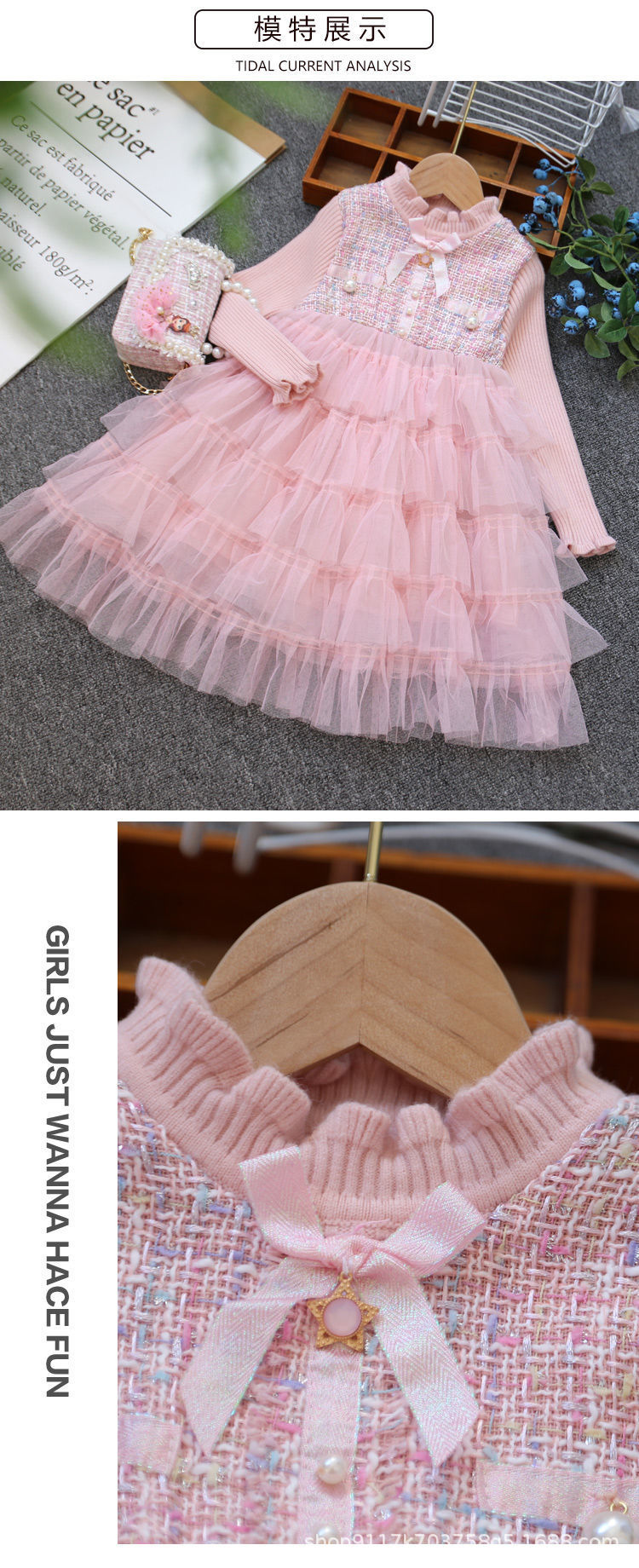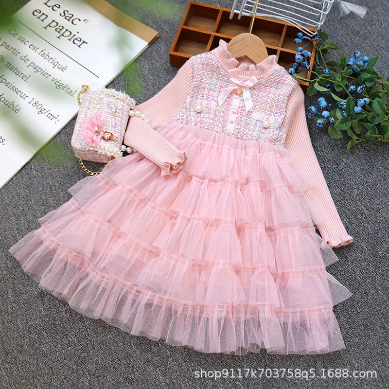 여아 스웨터 원피스 2023 가을/겨울 새로운 스타일 샤넬 스타일 공주 원피스 여아 세련된 니트 거즈 스커트 케이크 스커트스토어 가기