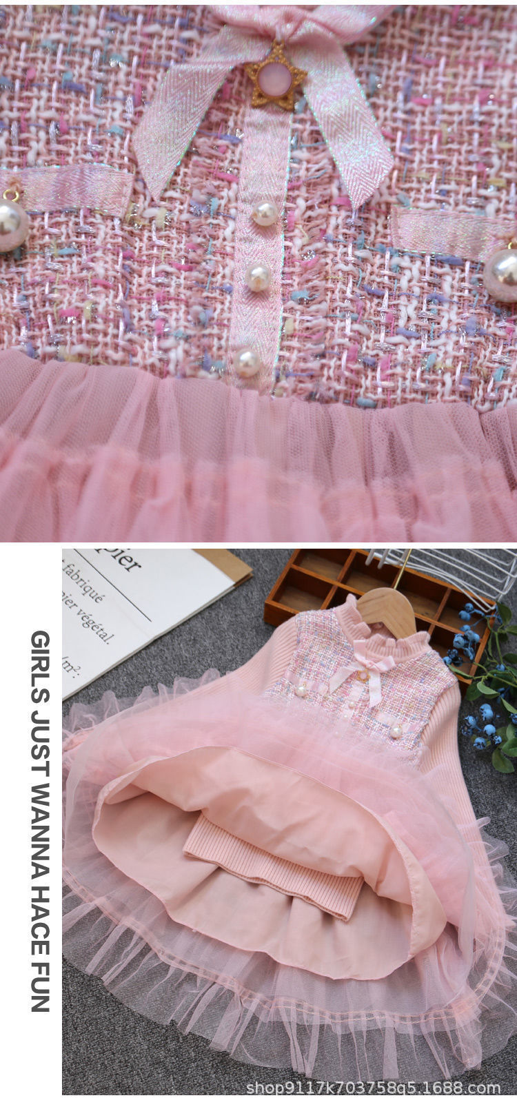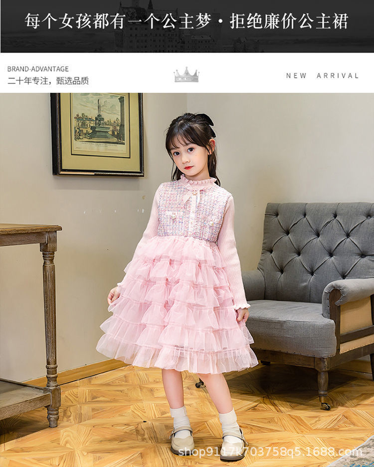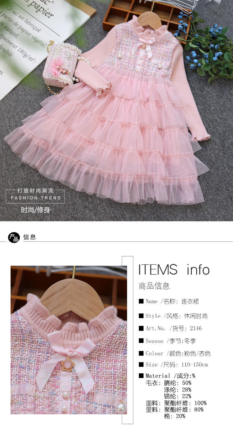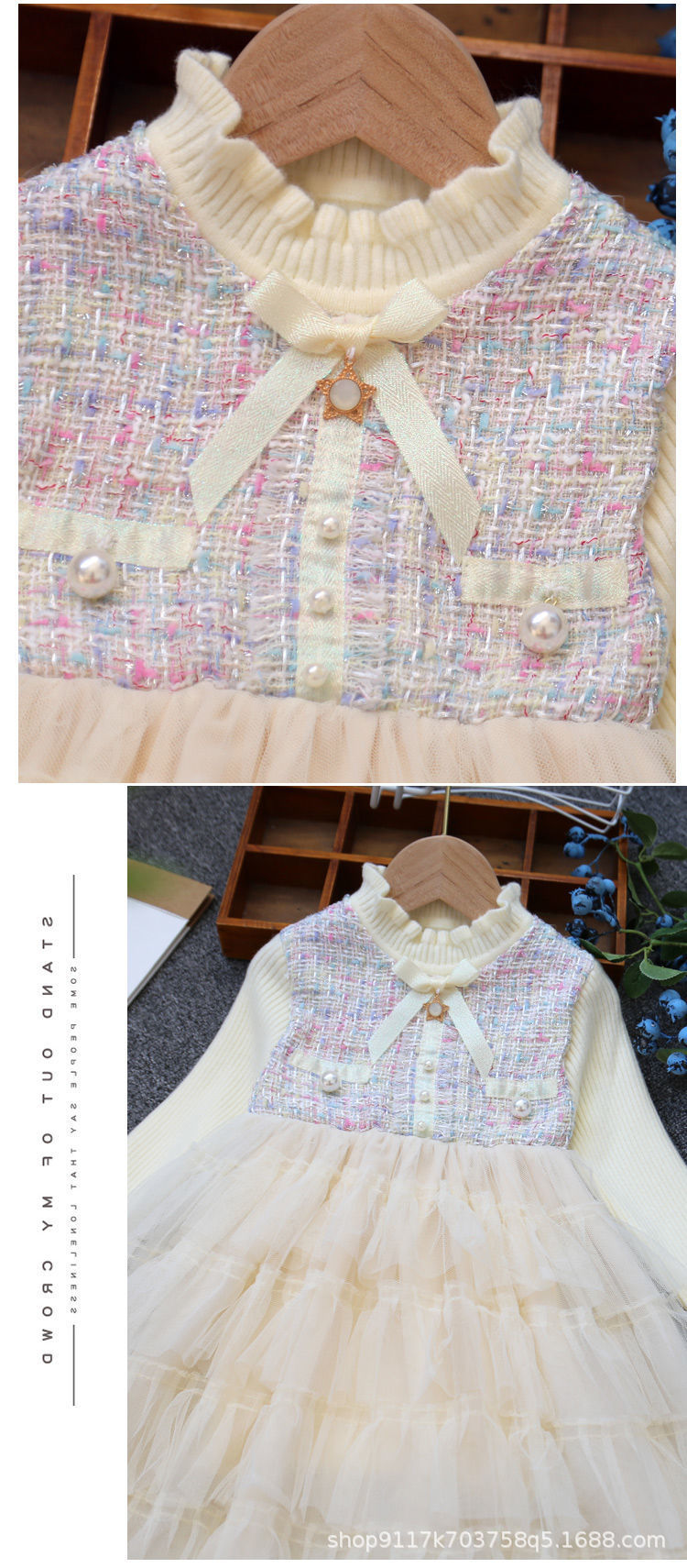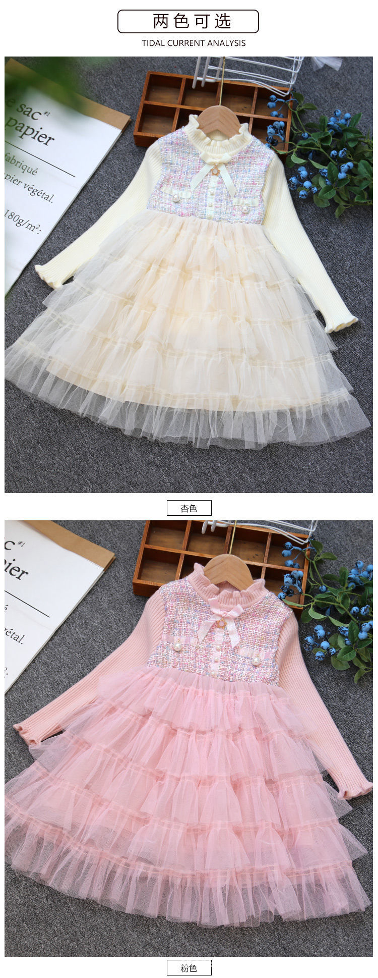 여아 스웨터 원피스 2023 가을/겨울 새로운 스타일 샤넬 스타일 공주 원피스 여아 세련된 니트 거즈 스커트 케이크 스커트