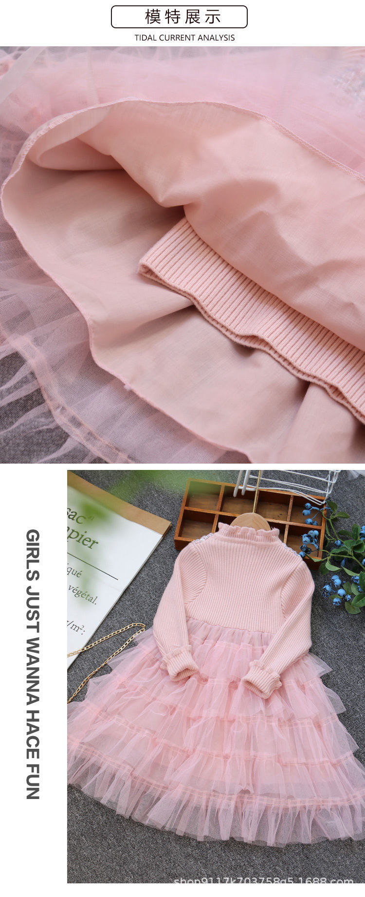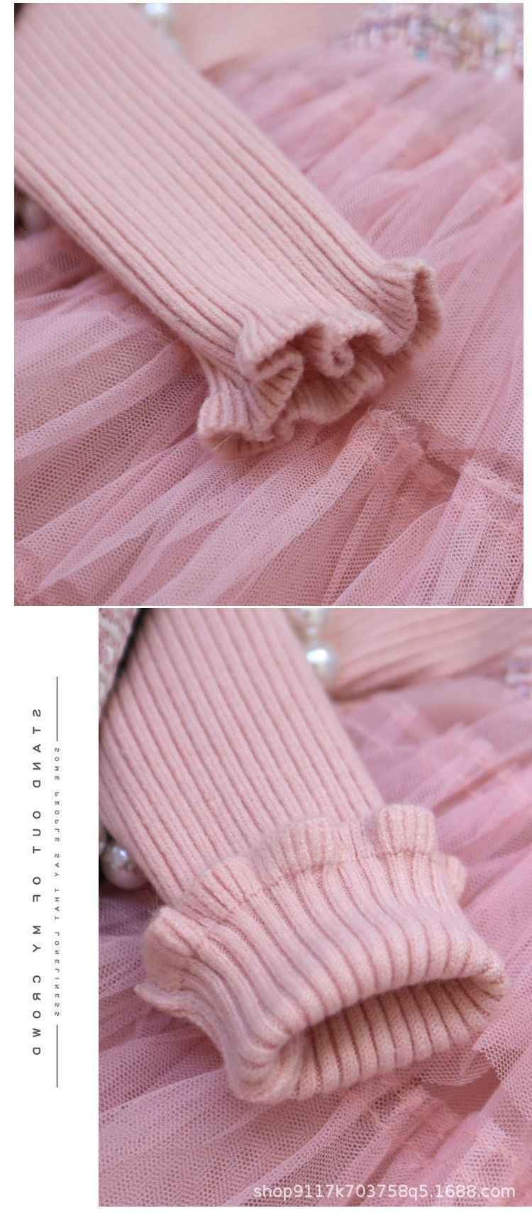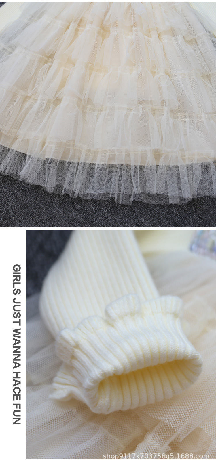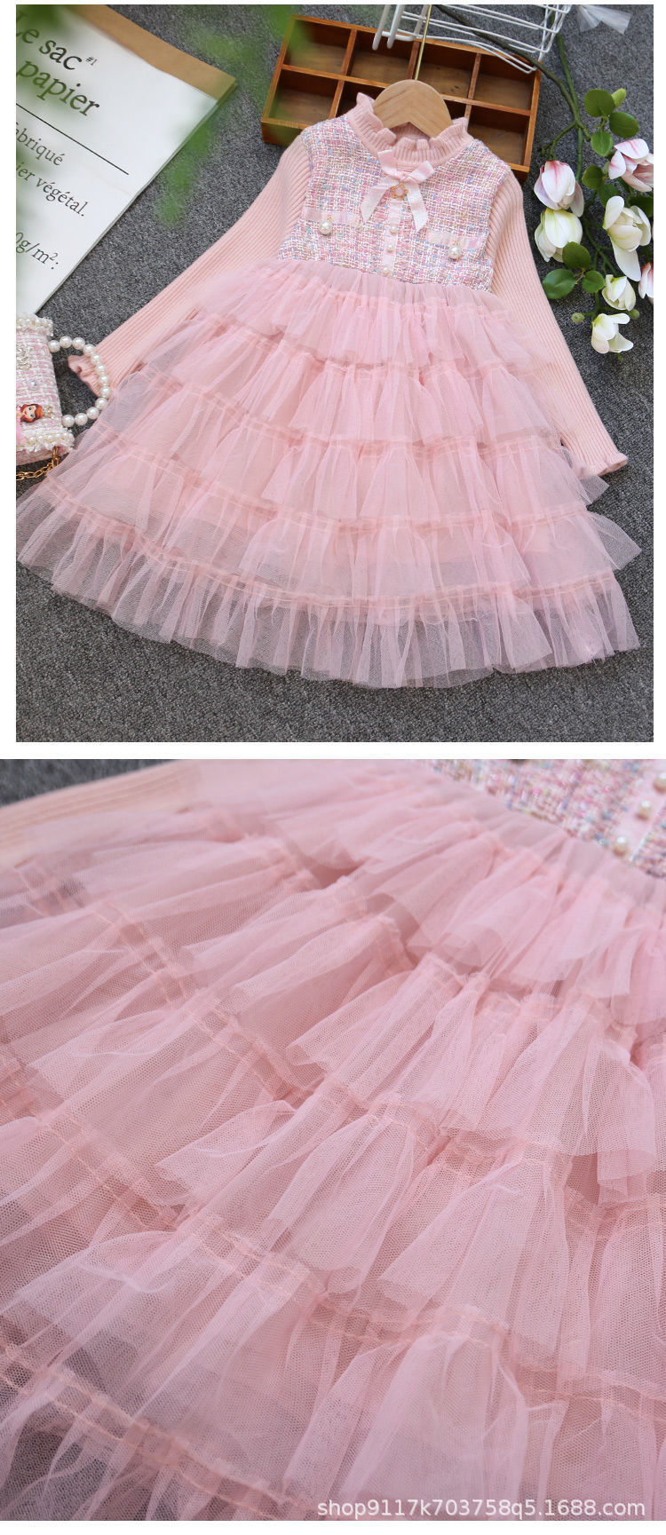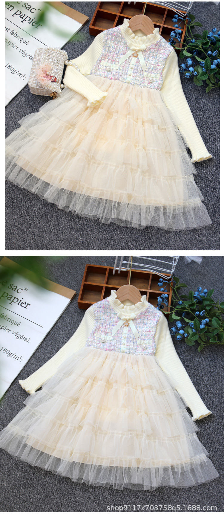 여아 스웨터 원피스 2023 가을/겨울 새로운 스타일 샤넬 스타일 공주 원피스 여아 세련된 니트 거즈 스커트 케이크 스커트
