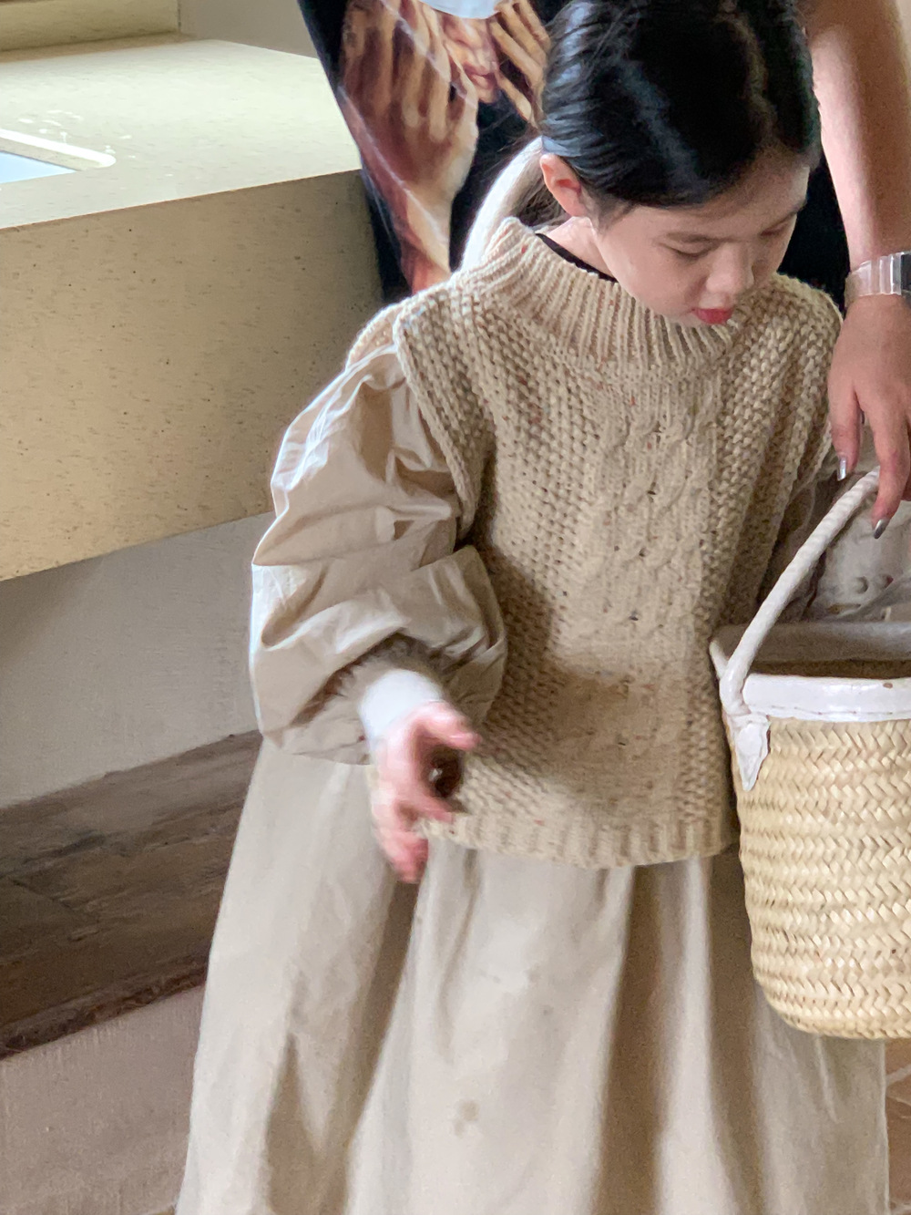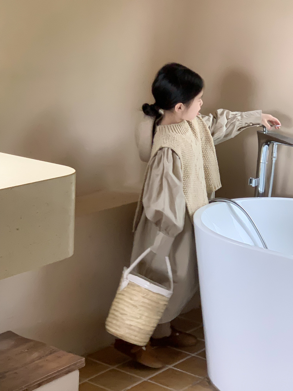 아동용 원피스 2025 봄 신상 여아 한국 스타일 단색 퍼프 소매 원피스 아동용 루즈핏 롱 원피스 니트 숄스토어 가기