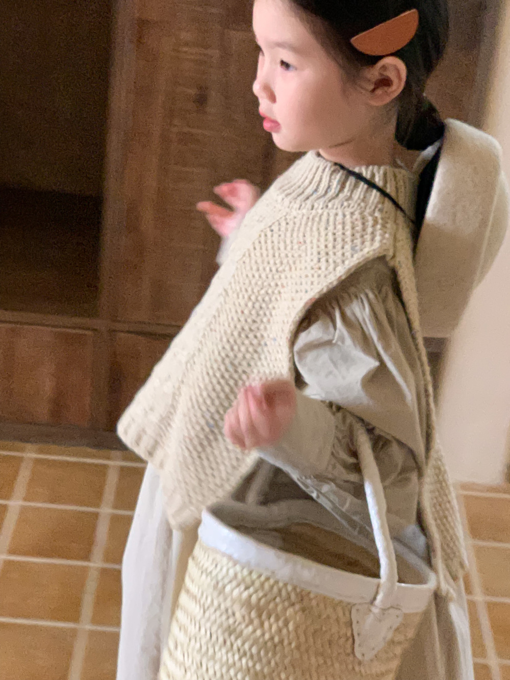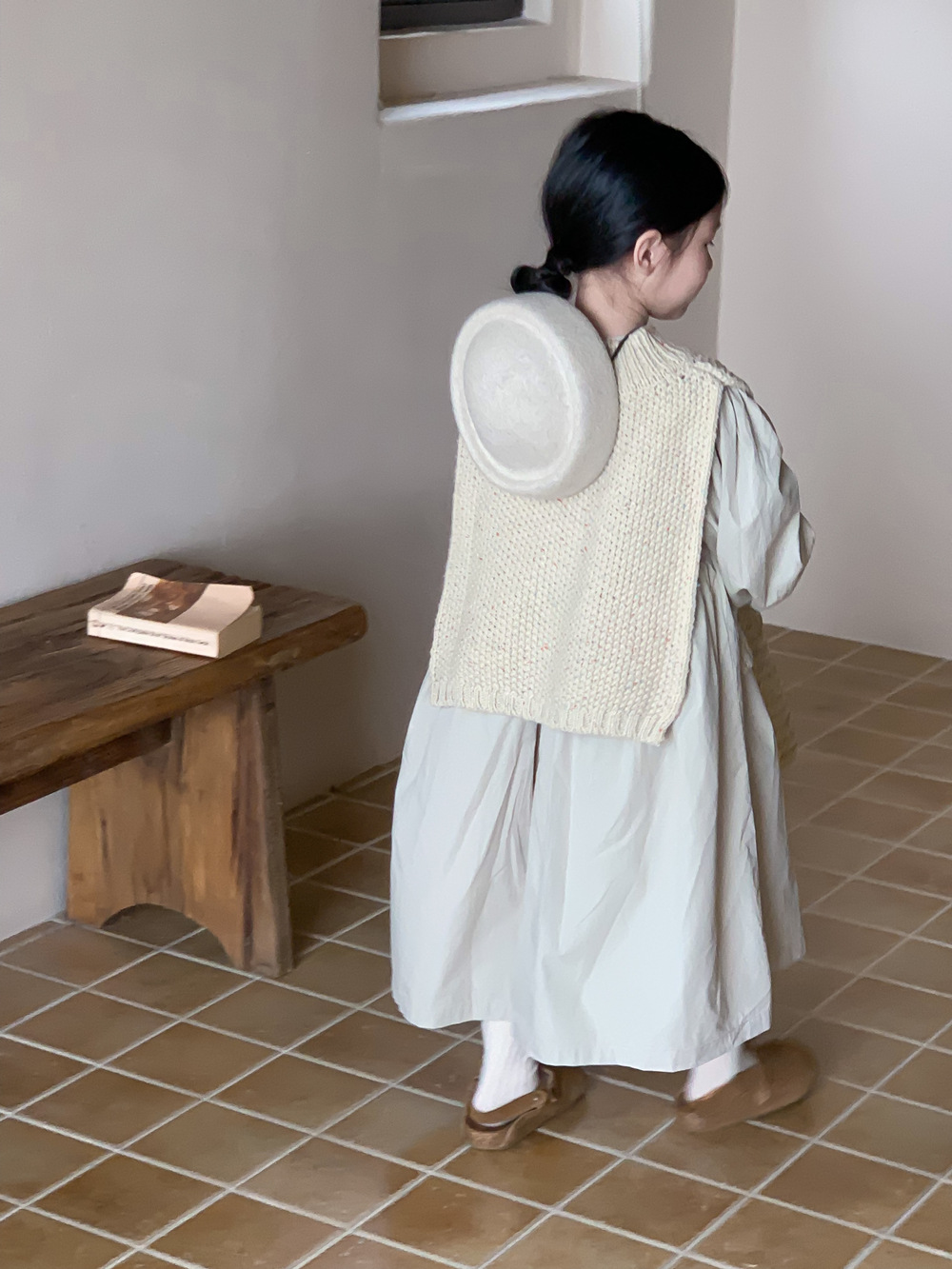 아동용 원피스 2025 봄 신상 여아 한국 스타일 단색 퍼프 소매 원피스 아동용 루즈핏 롱 원피스 니트 숄