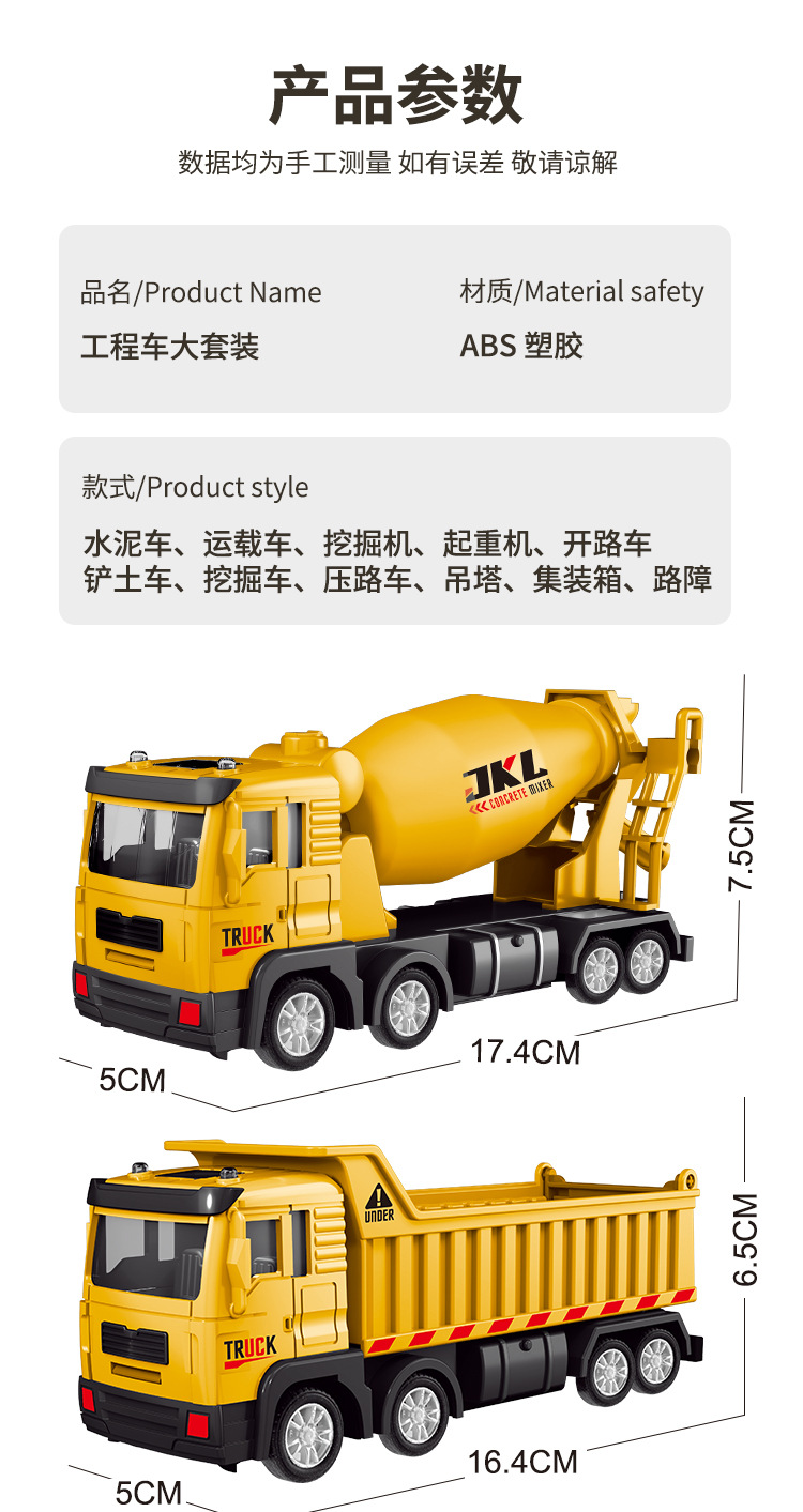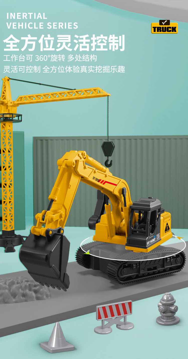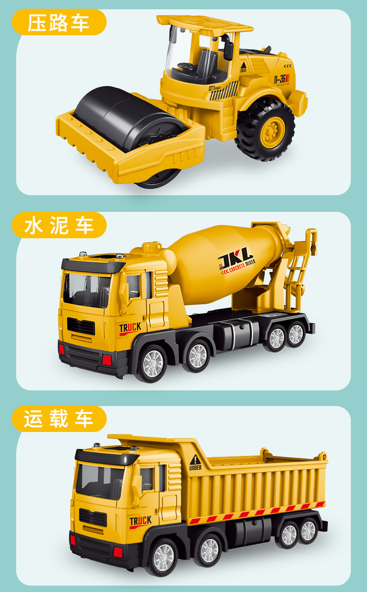 어린이 엔지니어링 차량 굴삭기 장난감 관성 자동차 세트 소년 시뮬레이션 모델 푸시 굴삭기 믹서 크레인