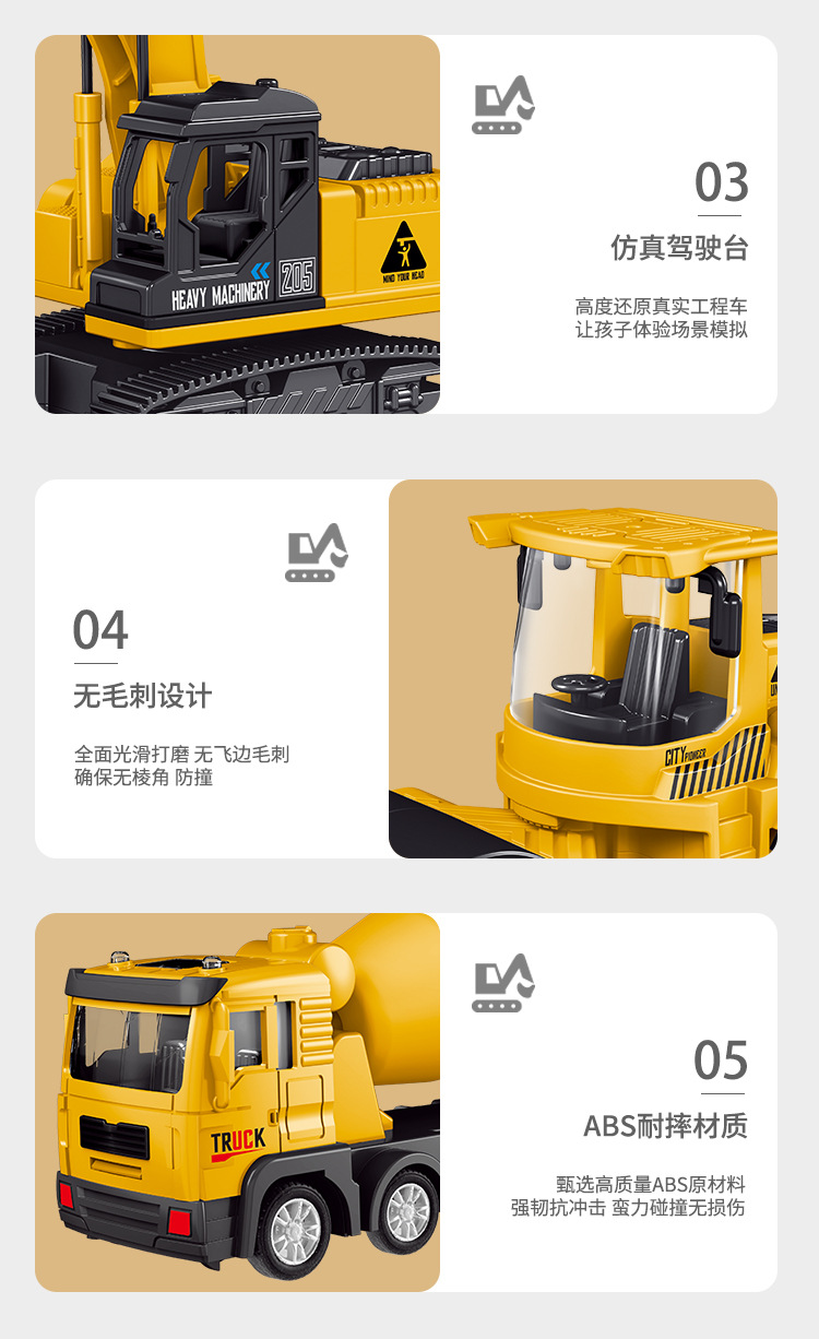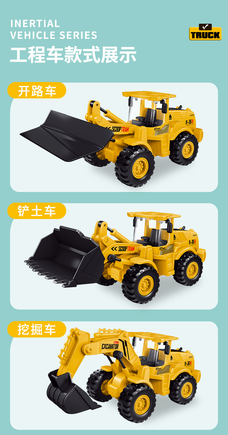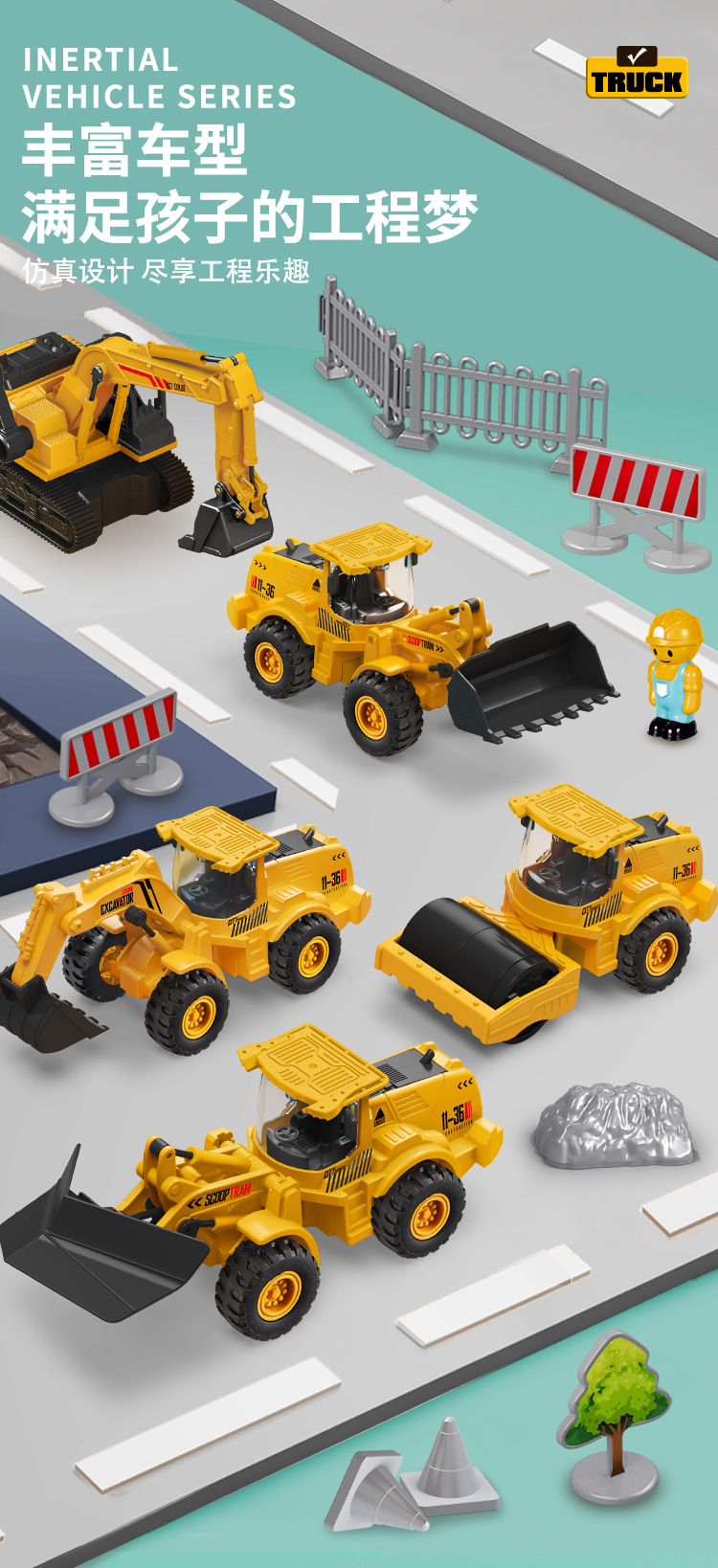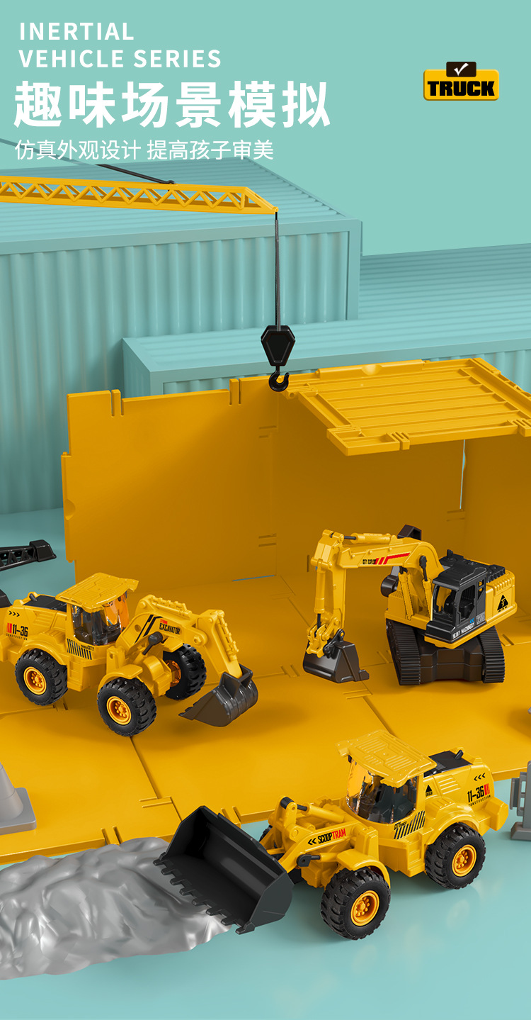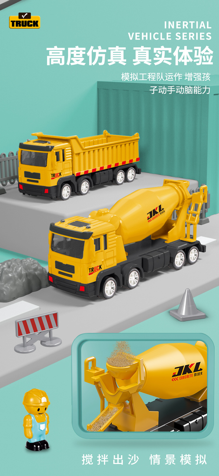 어린이 엔지니어링 차량 굴삭기 장난감 관성 자동차 세트 소년 시뮬레이션 모델 푸시 굴삭기 믹서 크레인스토어 가기