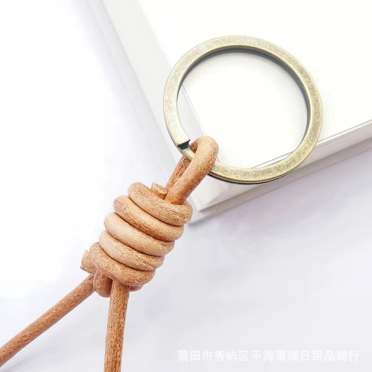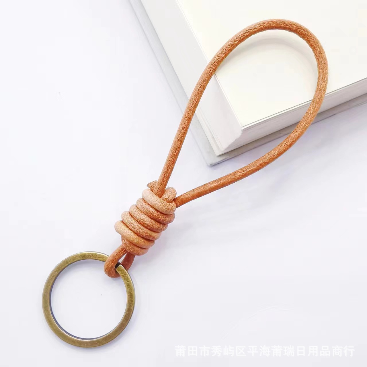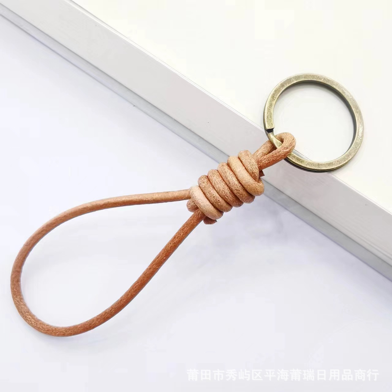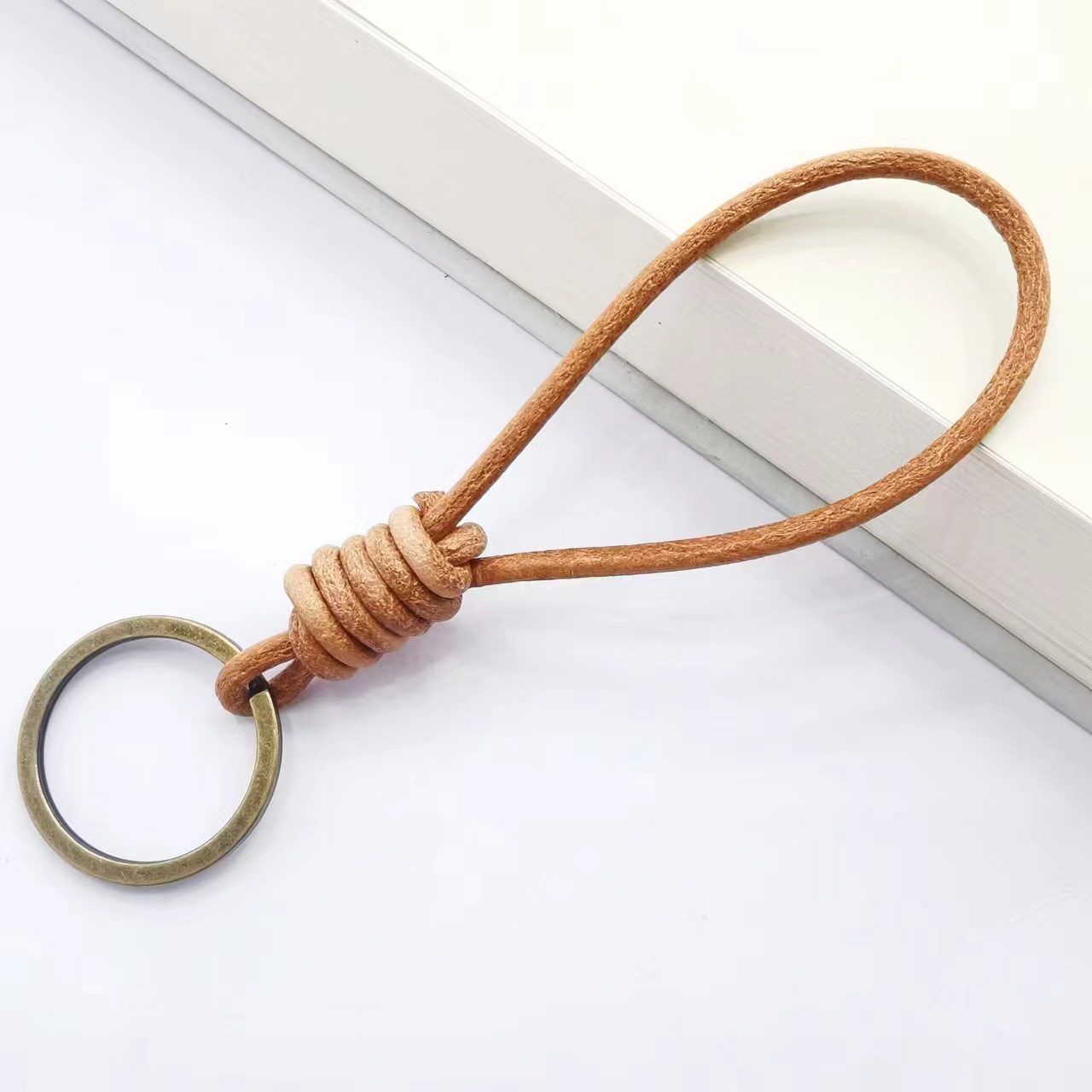 3mm 원색 소가죽 로프 키체인 심플 가죽 수제 팔찌 자동차 키링 펜던트 키 버클 도매스토어 가기