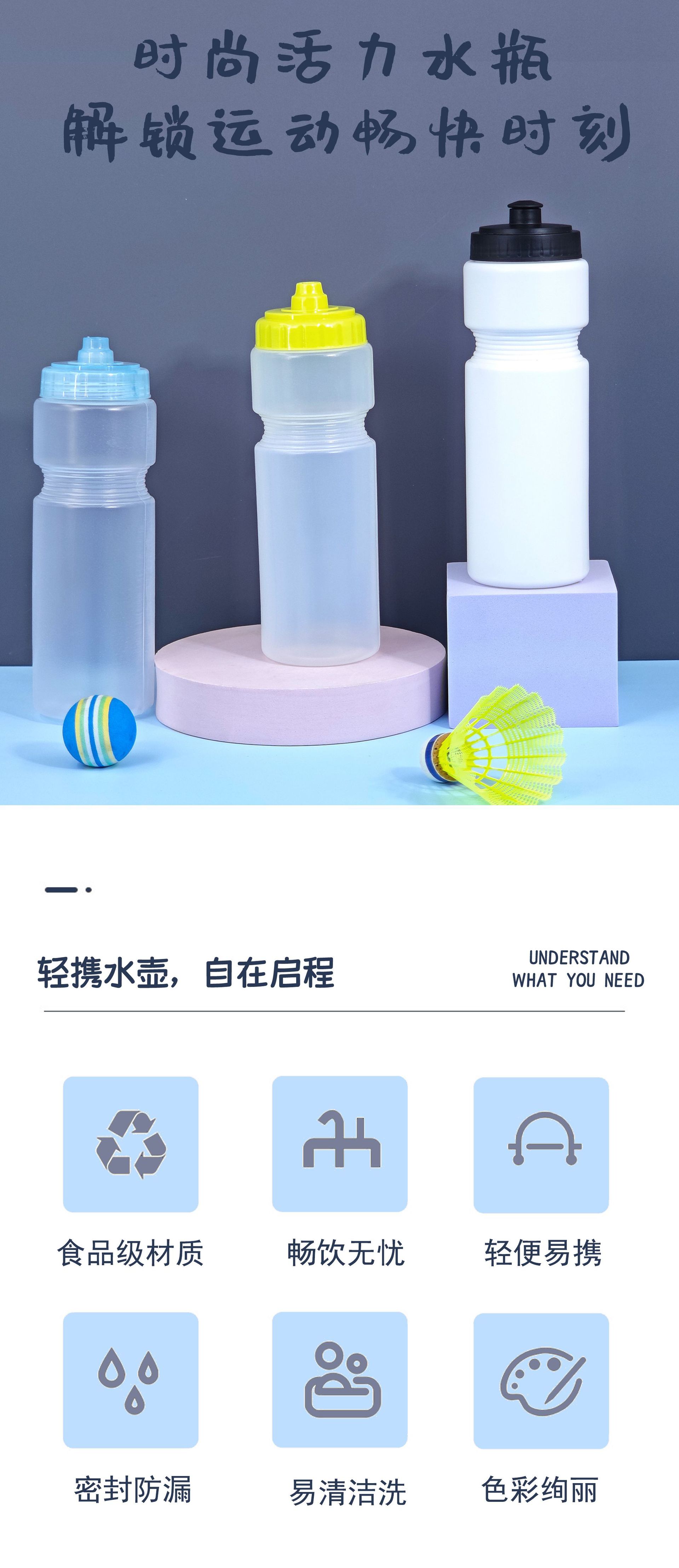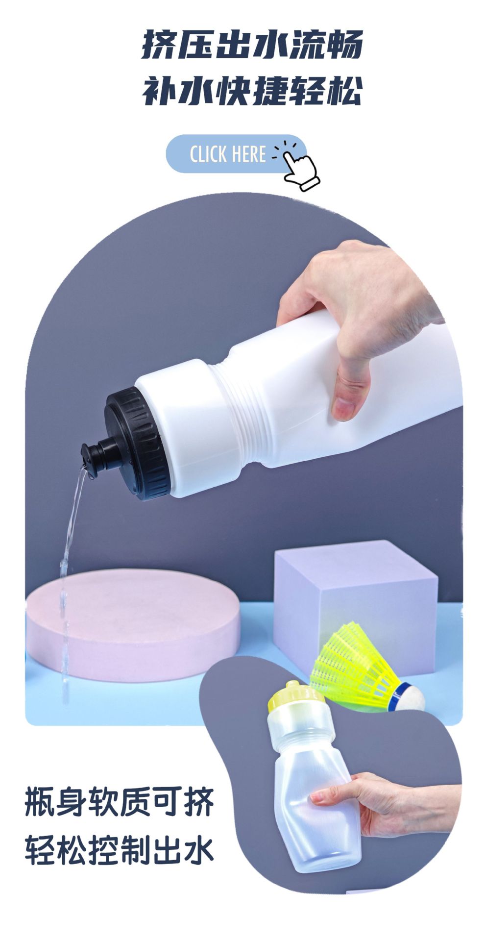 맞춤형 플라스틱 자전거 타기 등산 스포츠 물병 압착 노즐 야외 물 컵 밀봉 및 누출 방지 750ml스토어 가기