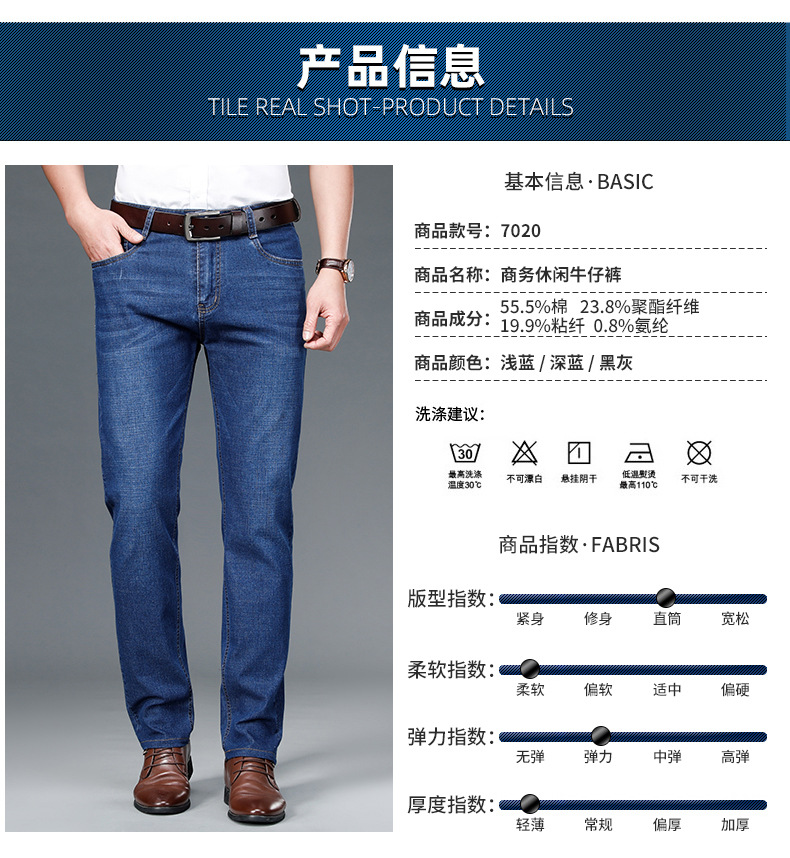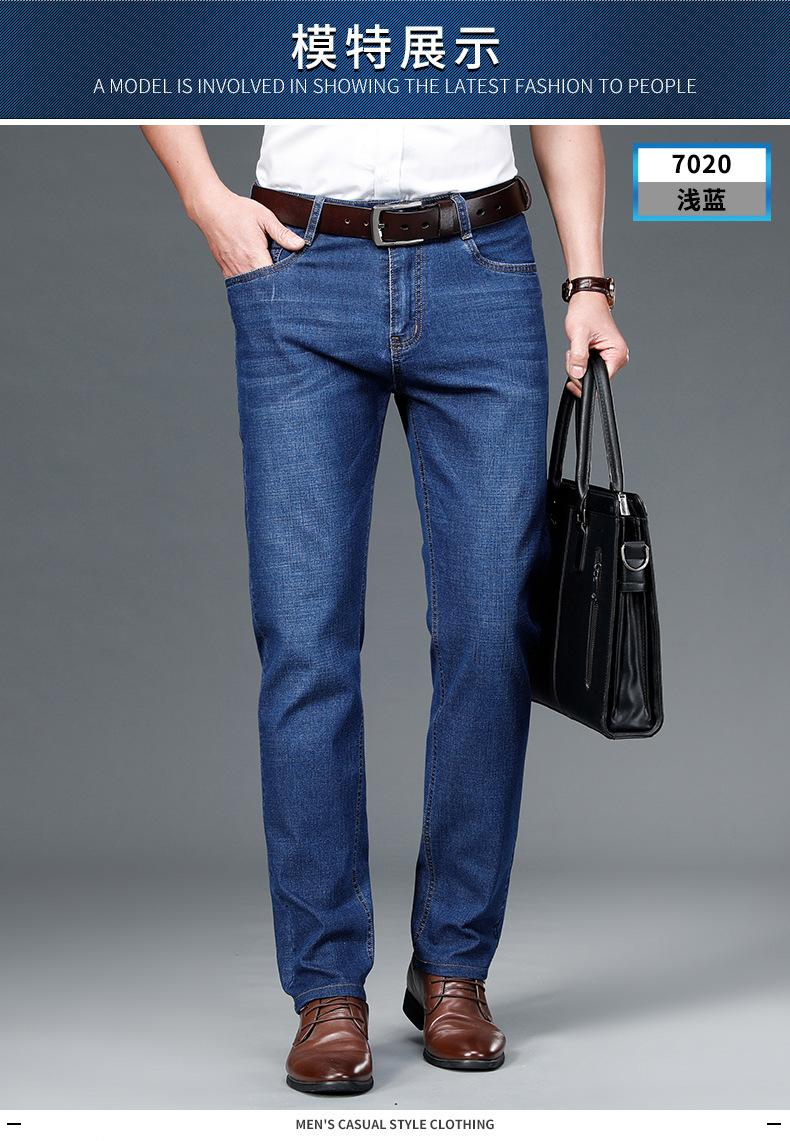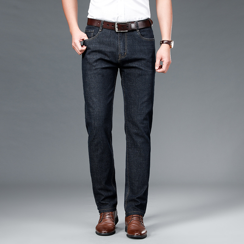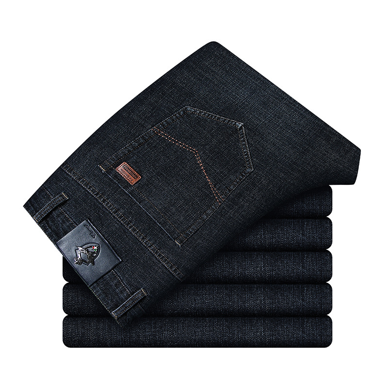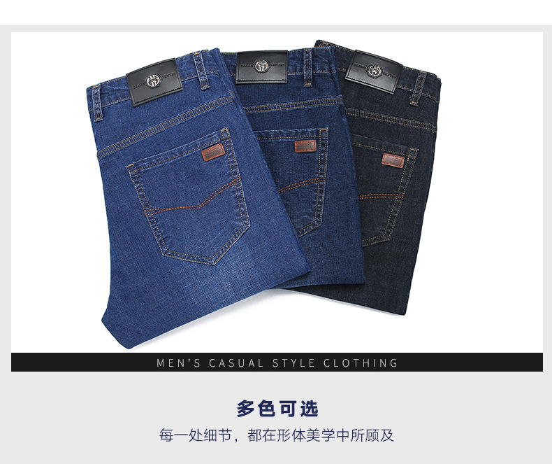 여름 얇은 남성용 청바지 남성용 탄성 스트레이트 루즈 캐주얼 남성용 바지 높은 허리 딥 크로트 플러스 봄과 가을 롱