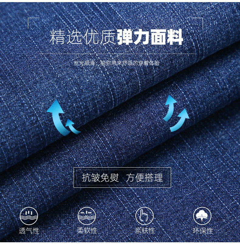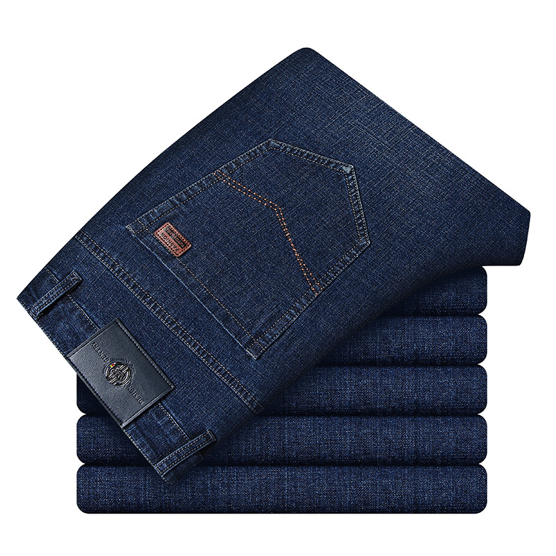 여름 얇은 남성용 청바지 남성용 탄성 스트레이트 루즈 캐주얼 남성용 바지 높은 허리 딥 크로트 플러스 봄과 가을 롱스토어 가기