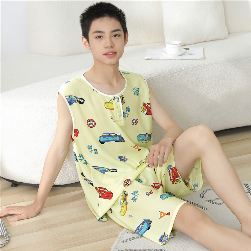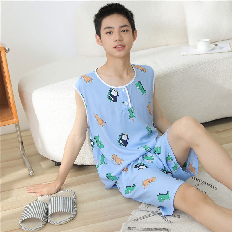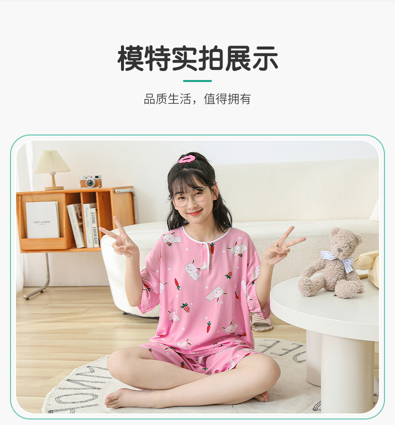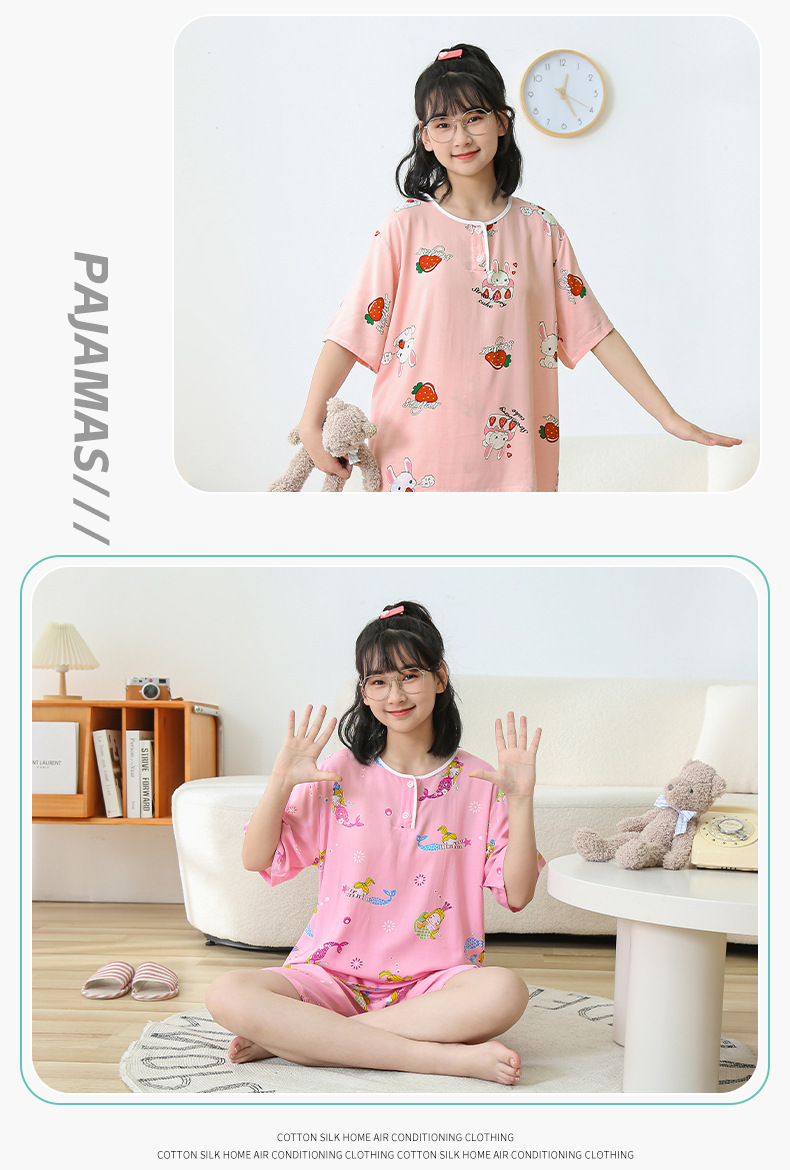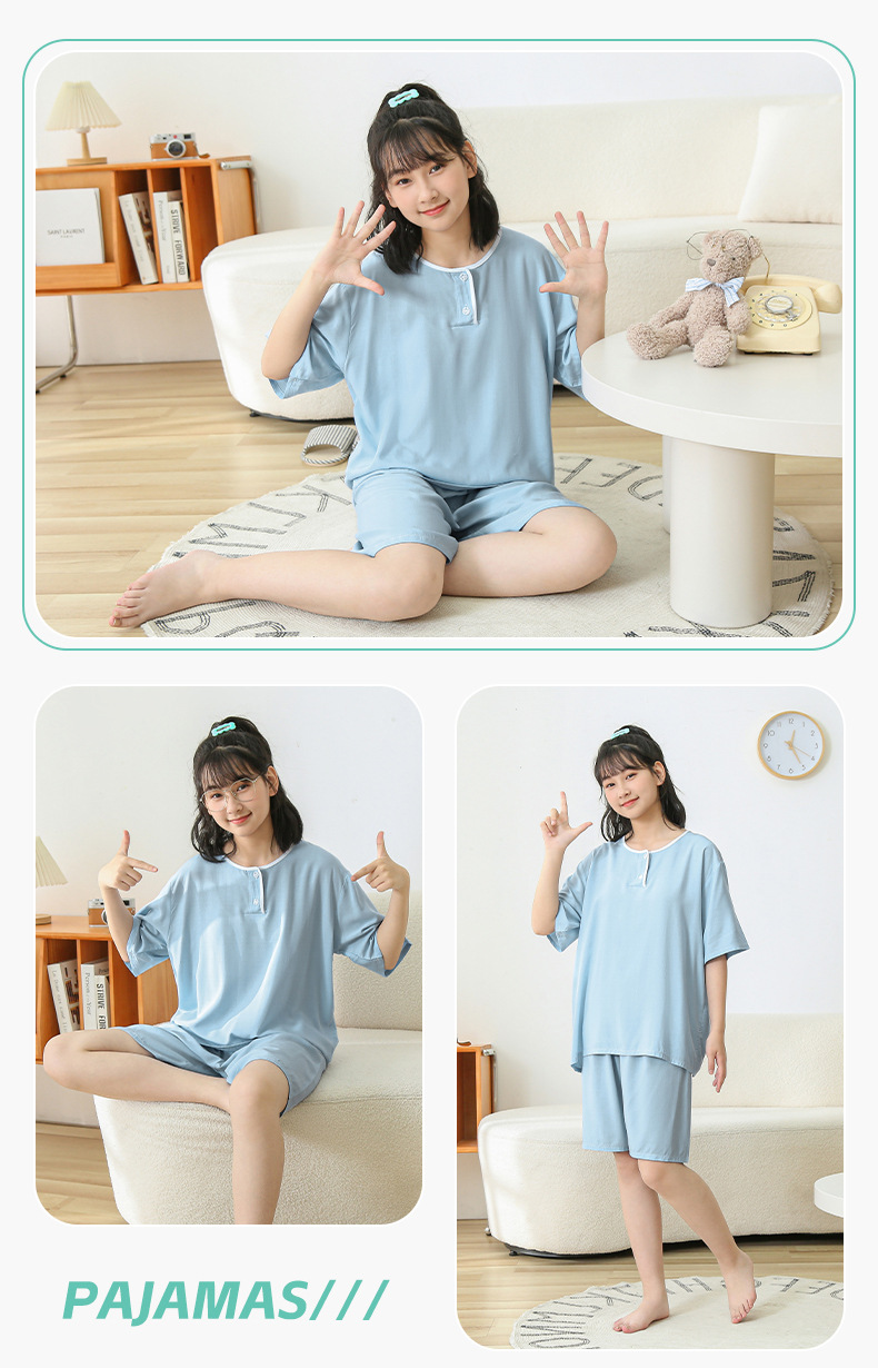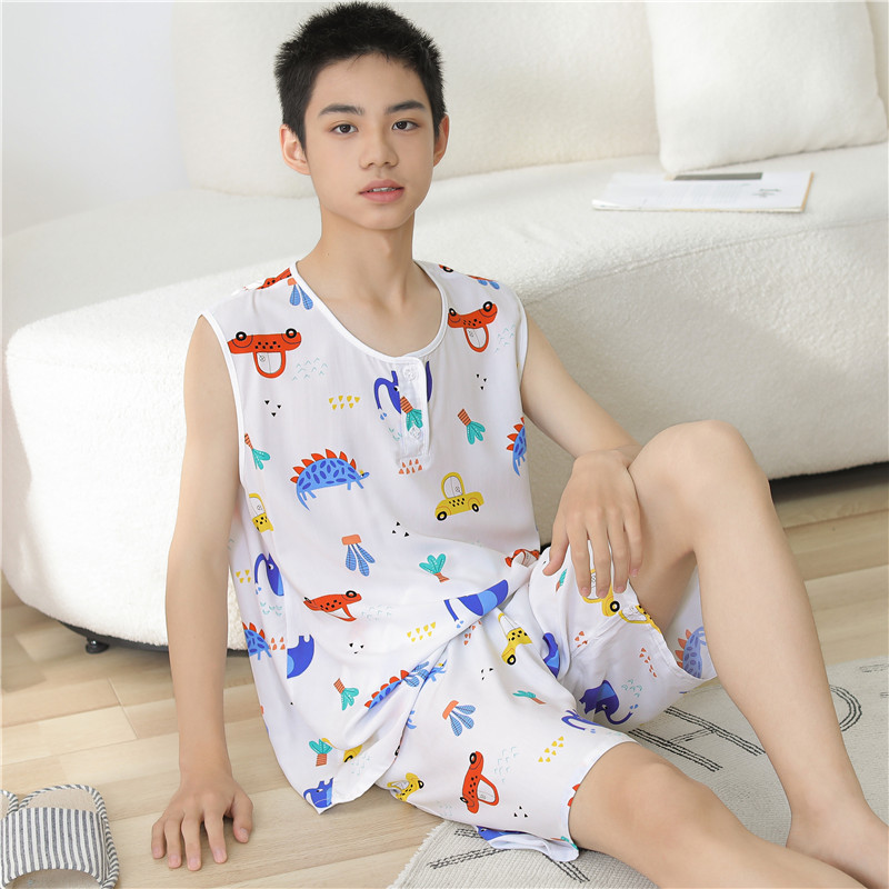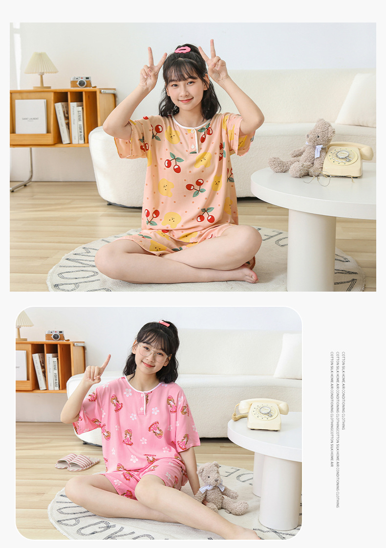 소년 잠옷 여름 얇은 반팔 반바지 청소년 느슨한 플러스 사이즈 큰 아이 인공 면 에어컨 가정 옷 세트스토어 가기