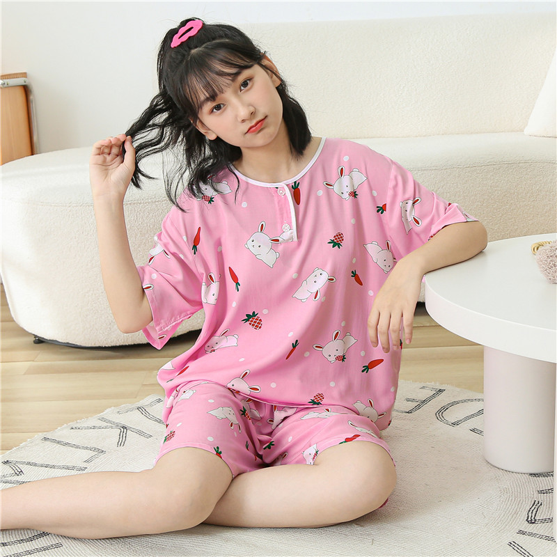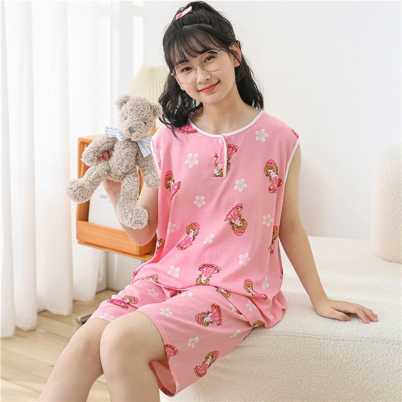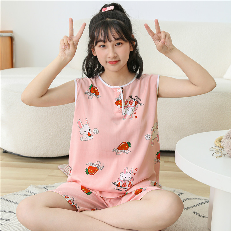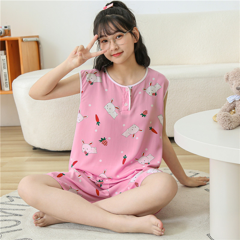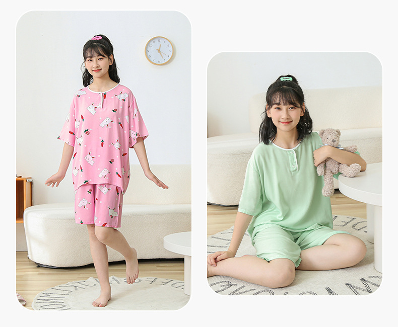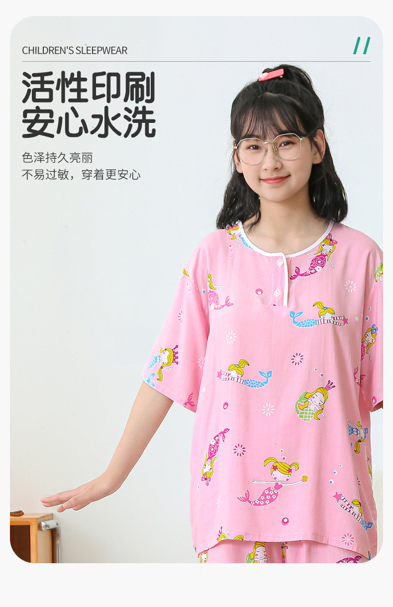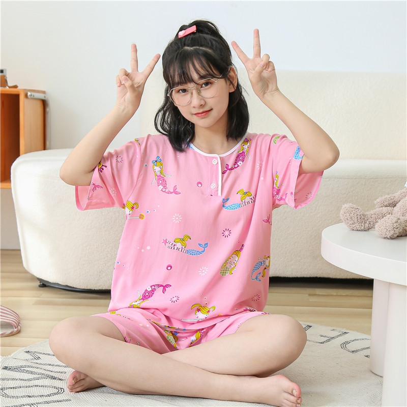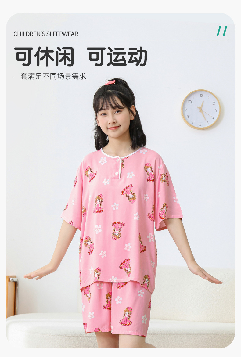 소년 잠옷 여름 얇은 반팔 반바지 청소년 느슨한 플러스 사이즈 큰 아이 인공 면 에어컨 가정 옷 세트