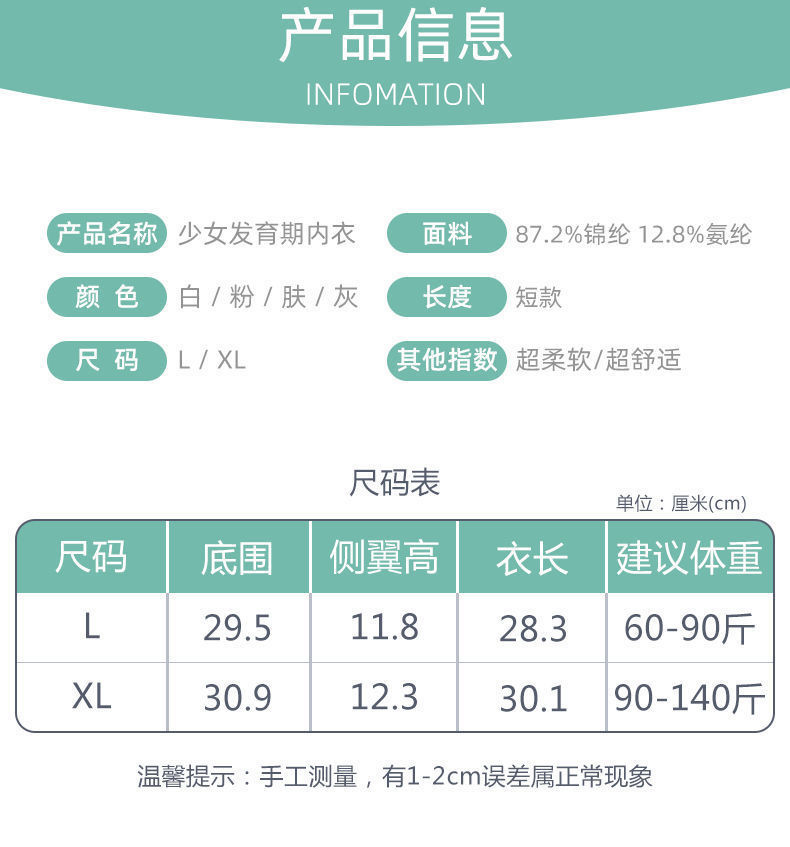 여아 속옷 개발 기간 여름 얇은 초등학교 아동 8-10-12-15 세 중학생 여아 조끼 브라