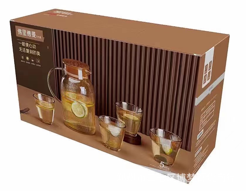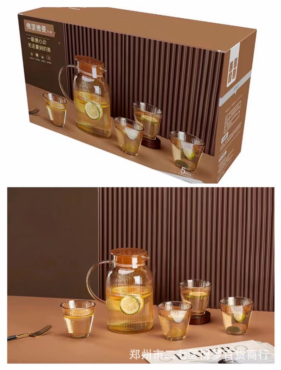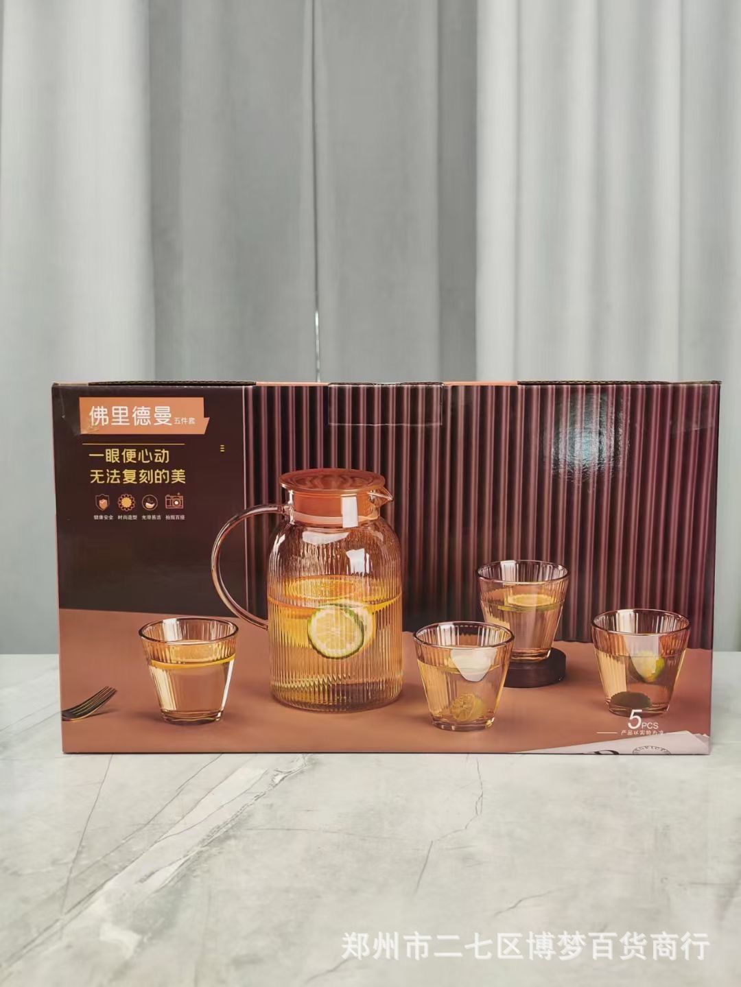 골든 프리드먼 고가 라이트 럭셔리 유리 시원한 물 주전자 내열 유리 5 종 세트 가정용 거실 대접 물