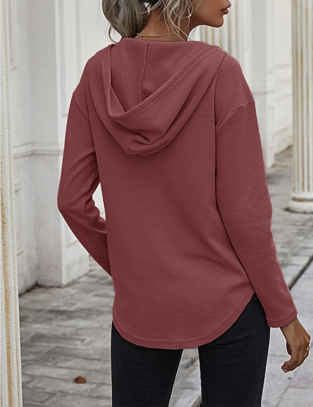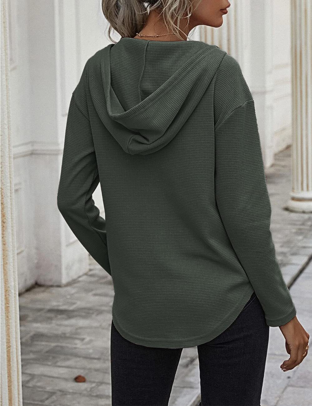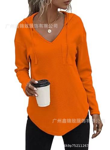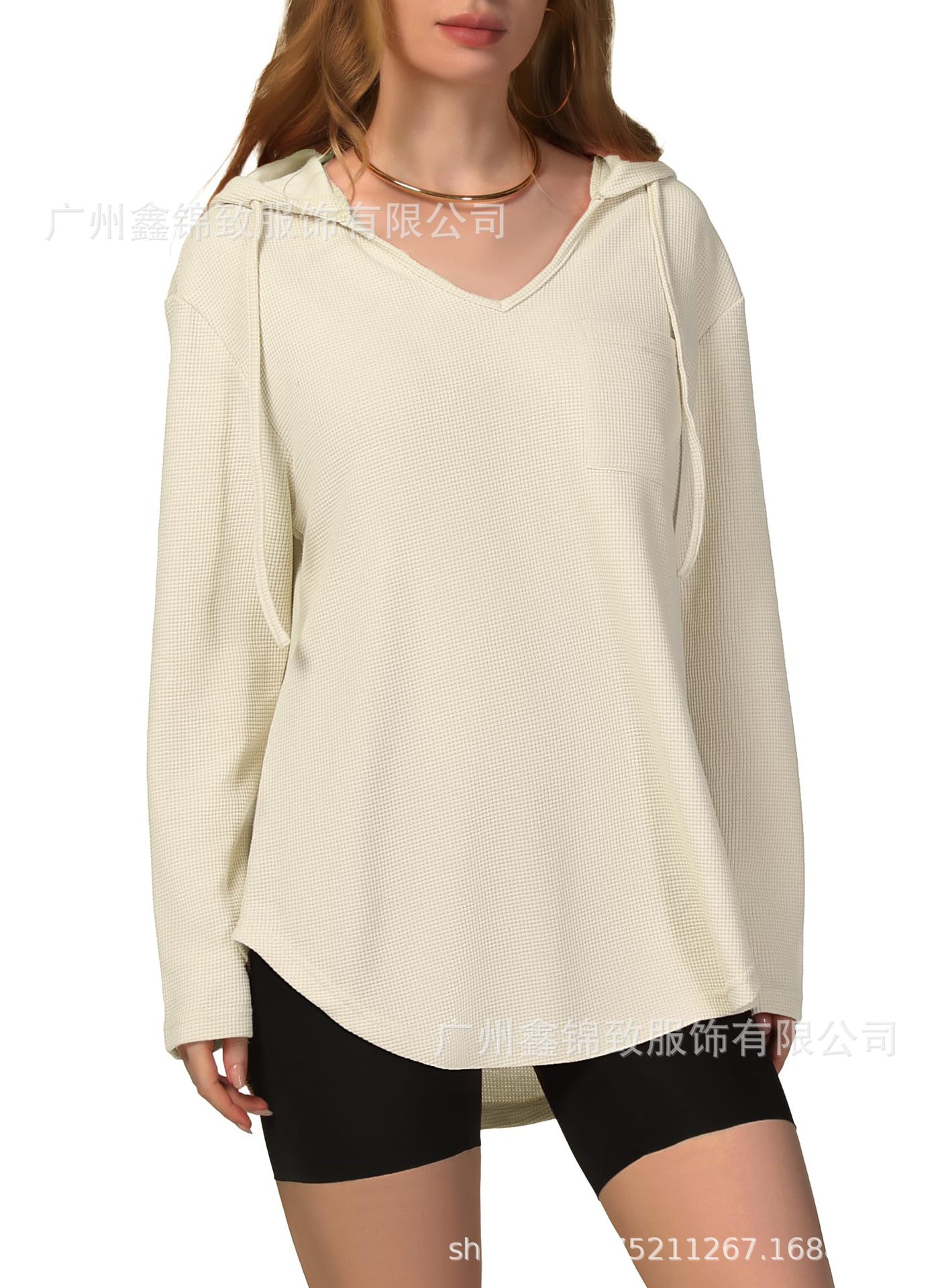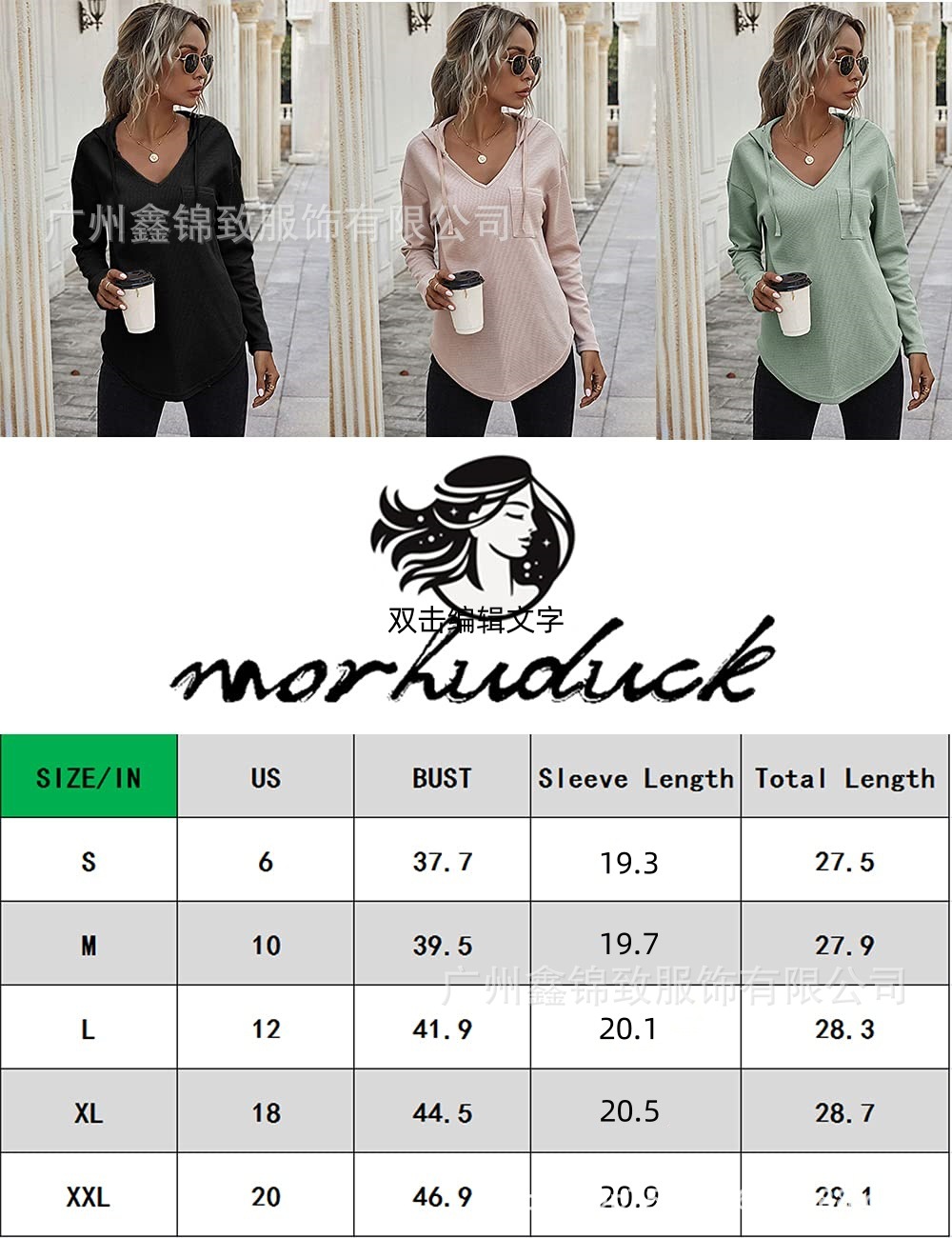 아마존 독립 역 새로운 여성용 V-넥 긴 소매 까마귀 와플 스웨터 여성용 졸라매는 끈 풀오버 탑 포켓스토어 가기