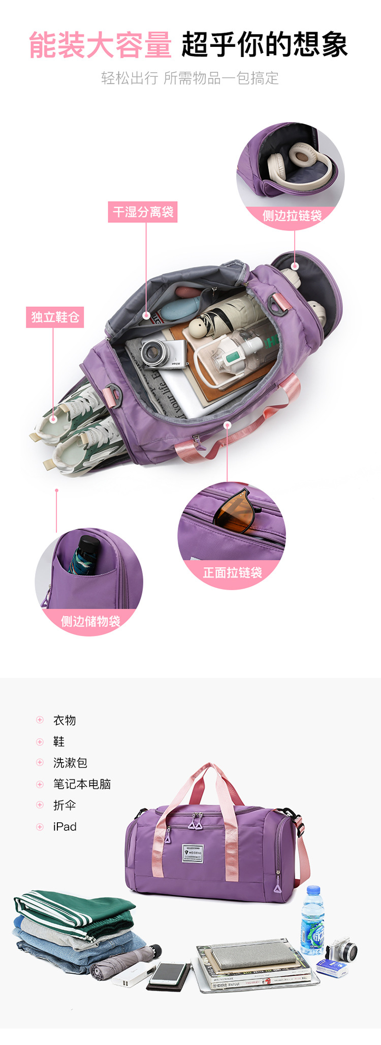 짐 가방 여성용 건식 및 습식 분리 스포츠 배낭 단거리 수영 경량 더플백 색상 일치 여행 가방 대용량스토어 가기