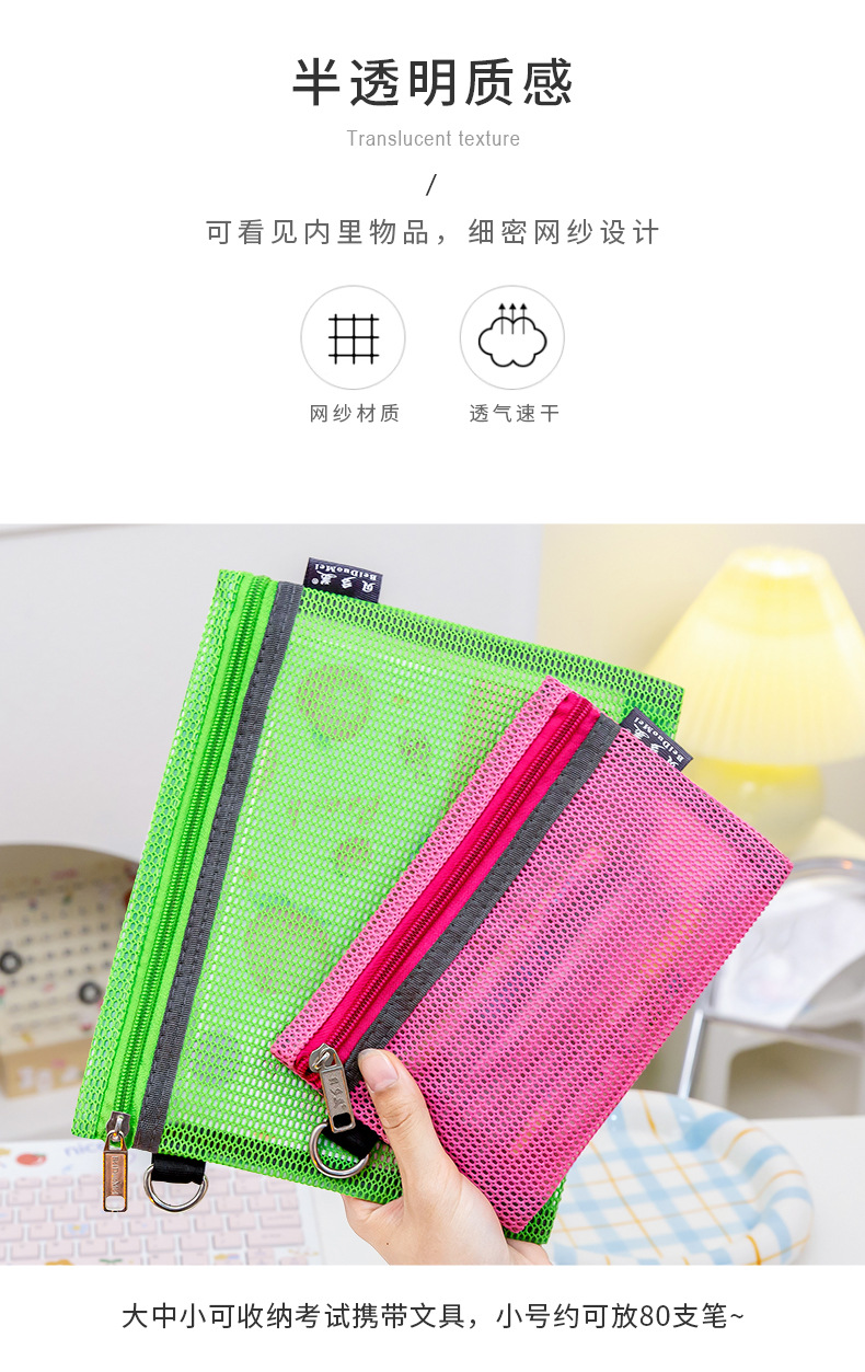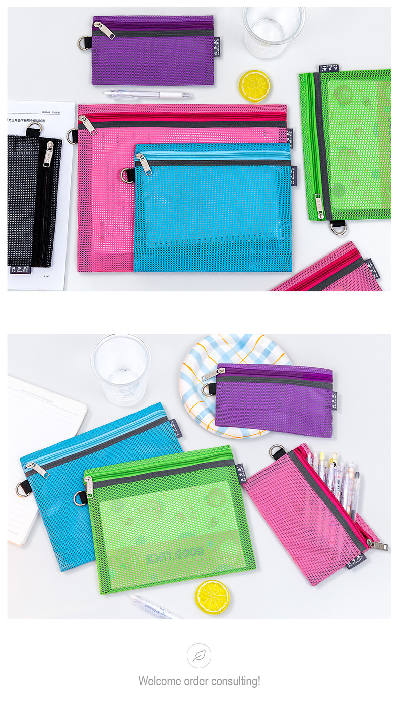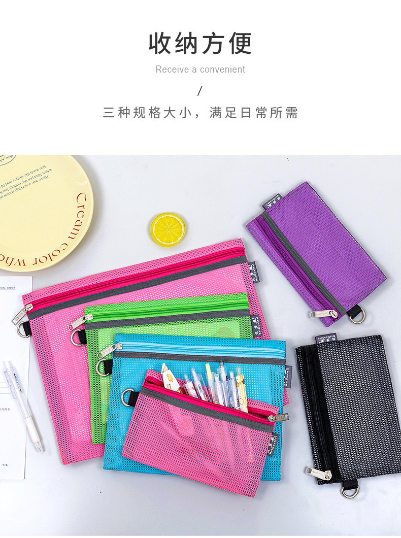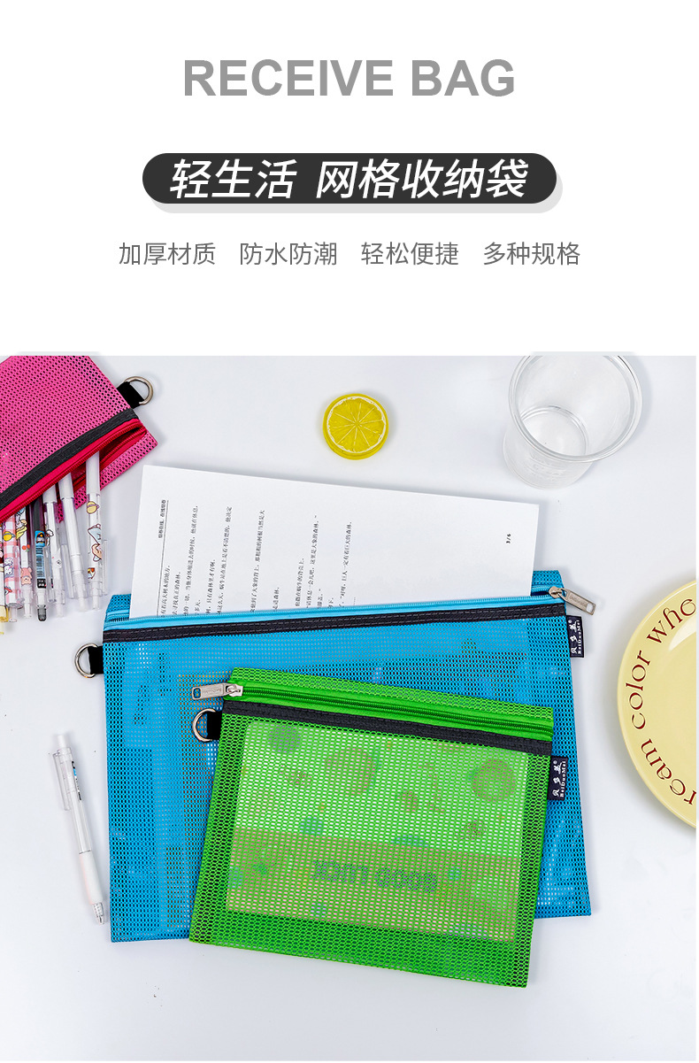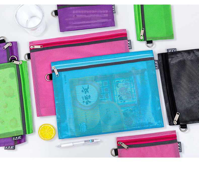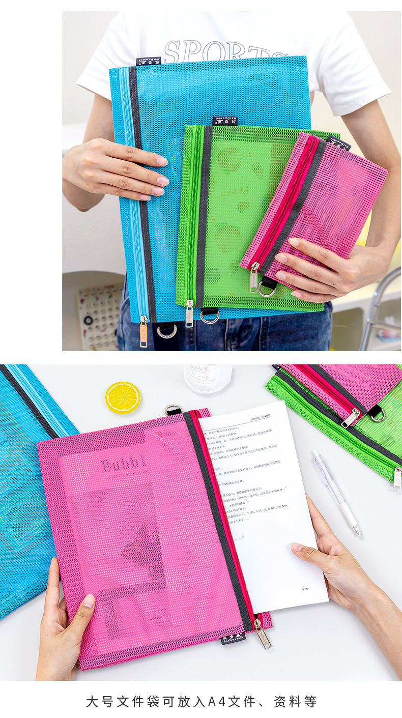 간단한 문구 그리드 보관 가방 a4 투명 파일 가방 지퍼 대용량 데이터 가방 바람 학생 파일 가방