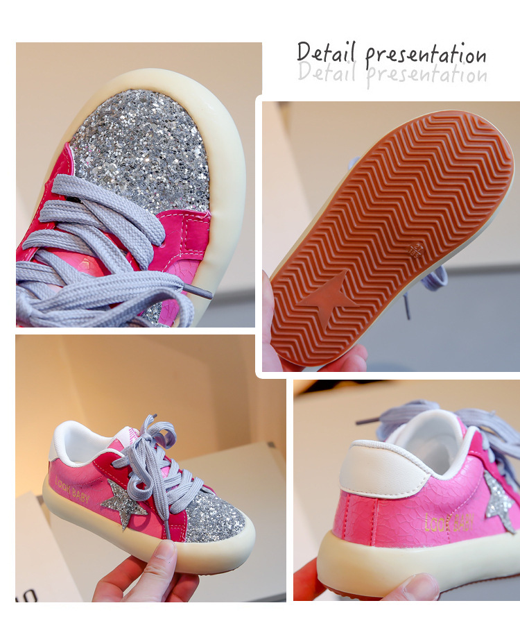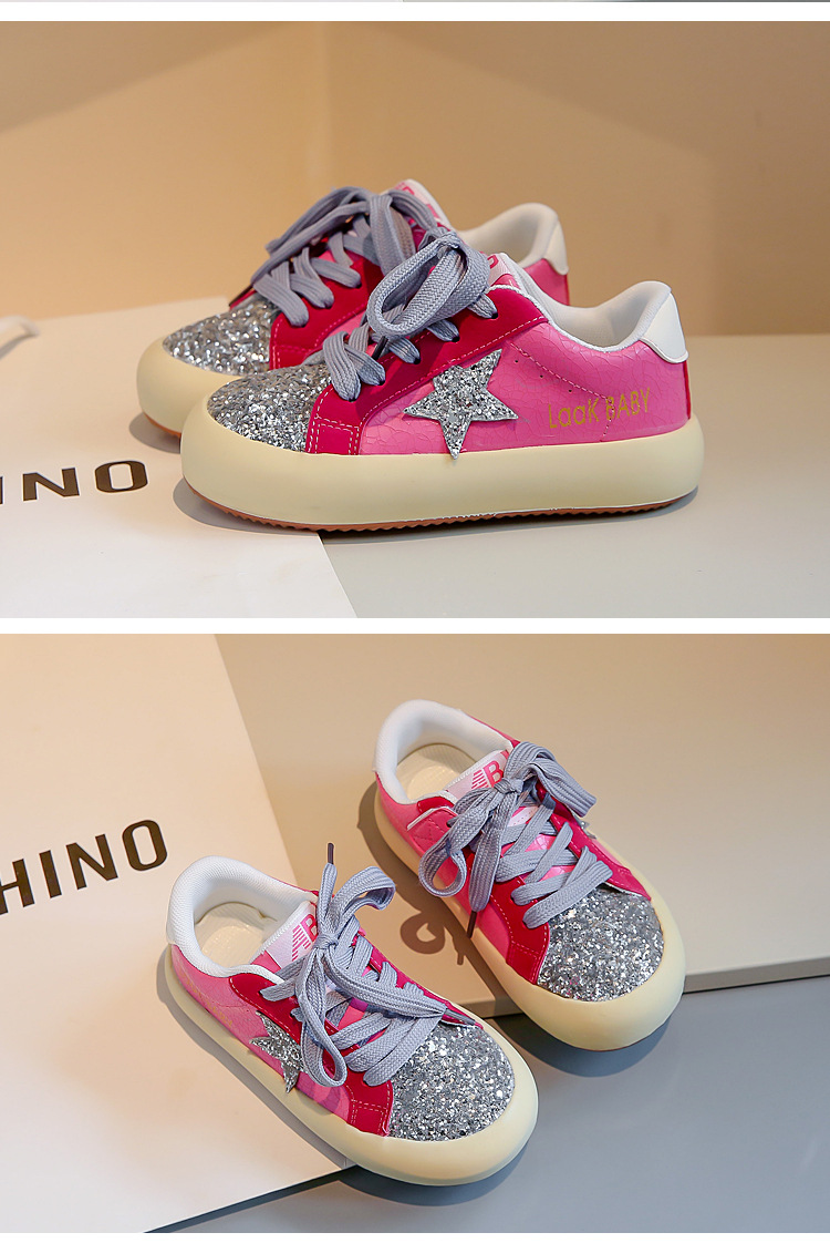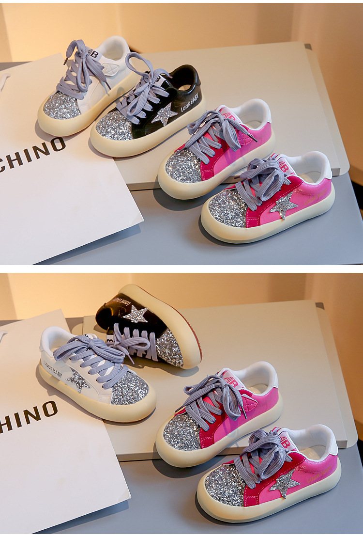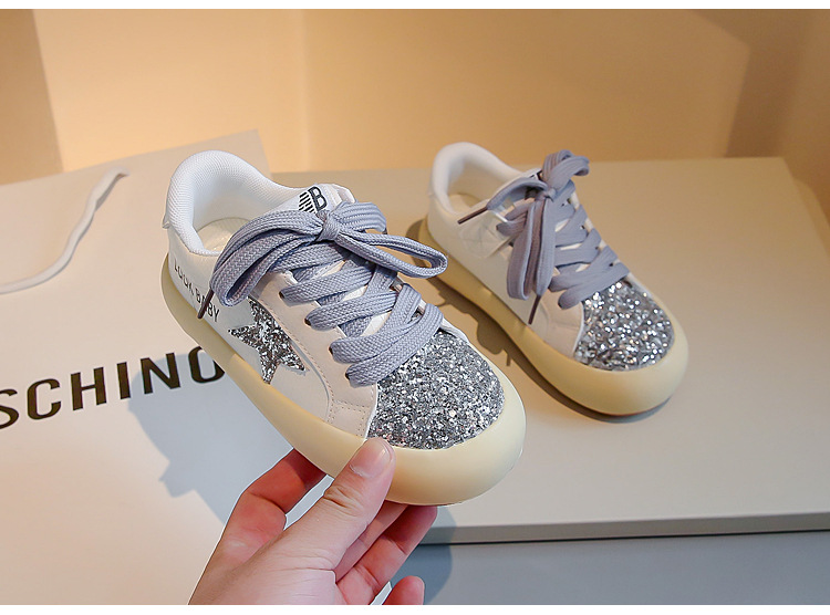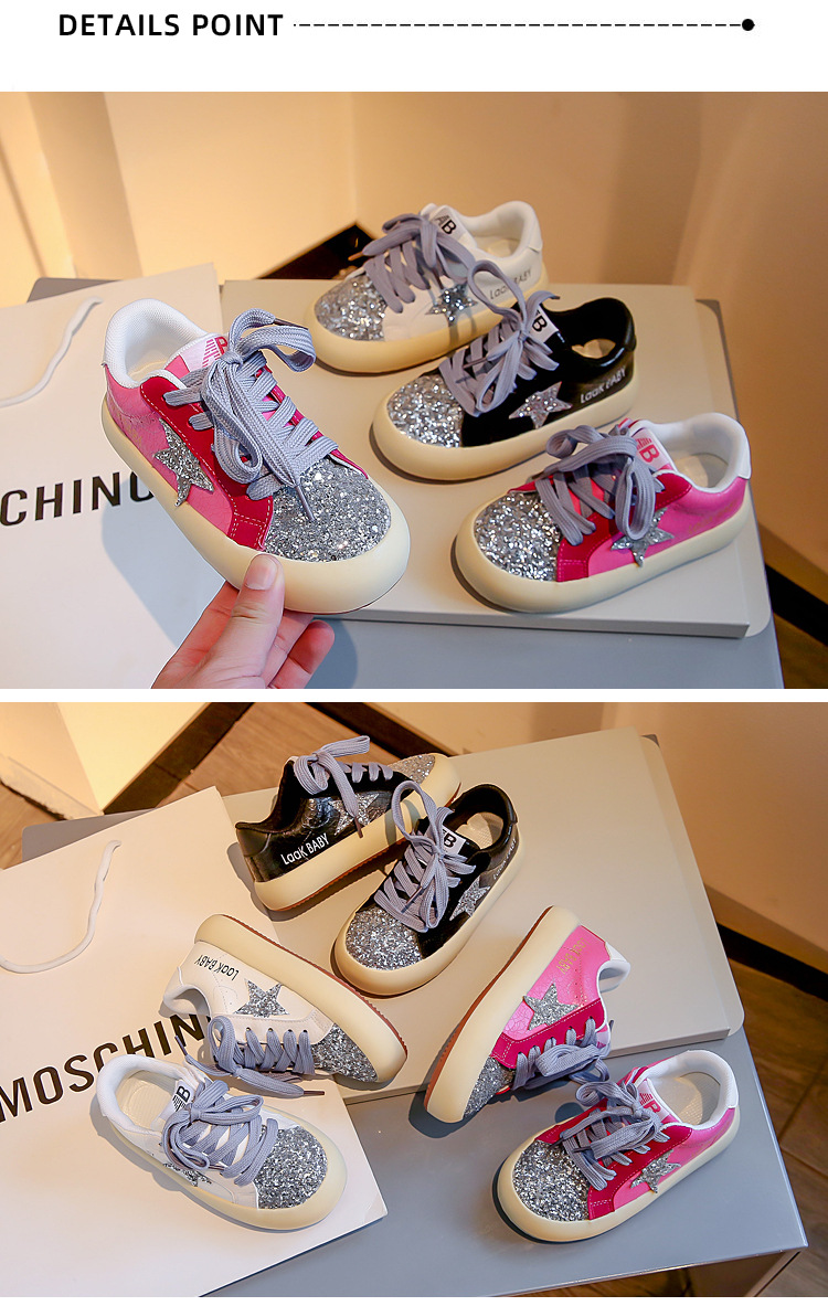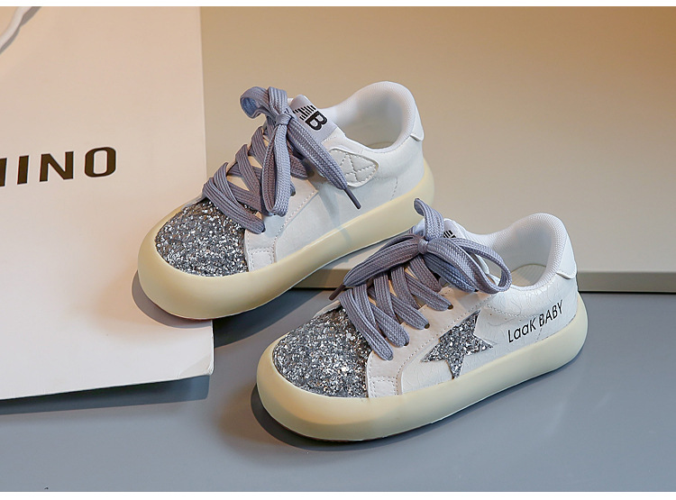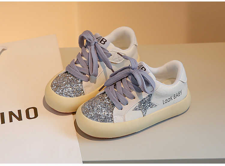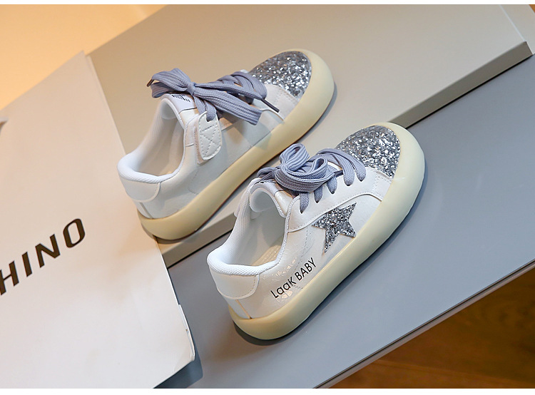 2024 봄 빛나는 별 신발 소년과 소녀 캐주얼 스포츠 신발 플랫 비 슬립 화이트 신발 레이스 업 학생 신발스토어 가기