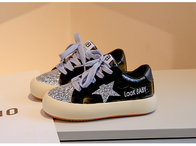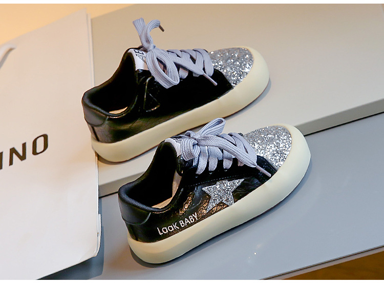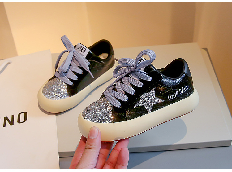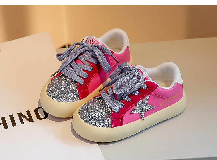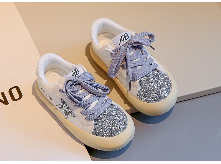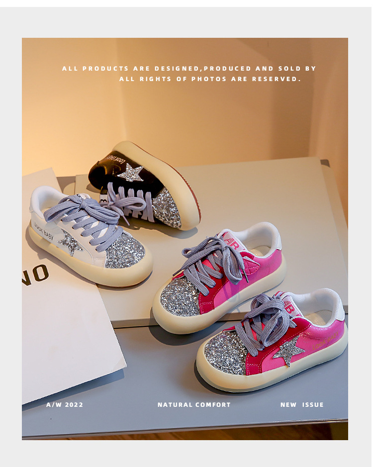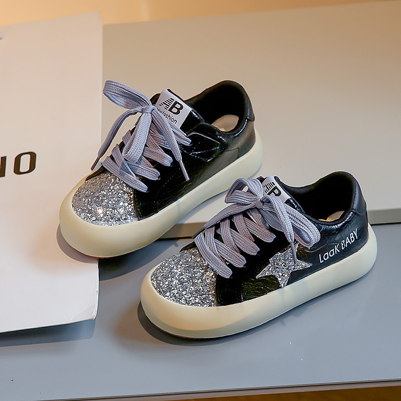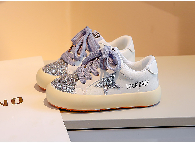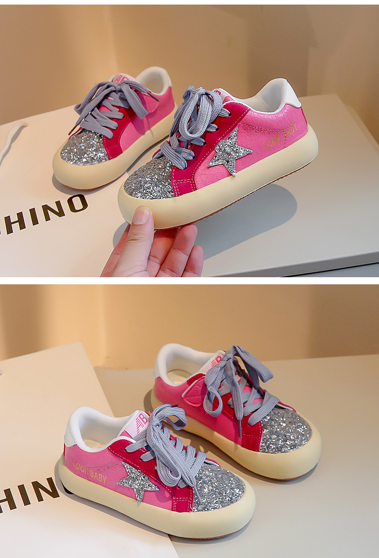 2024 봄 빛나는 별 신발 소년과 소녀 캐주얼 스포츠 신발 플랫 비 슬립 화이트 신발 레이스 업 학생 신발스토어 가기