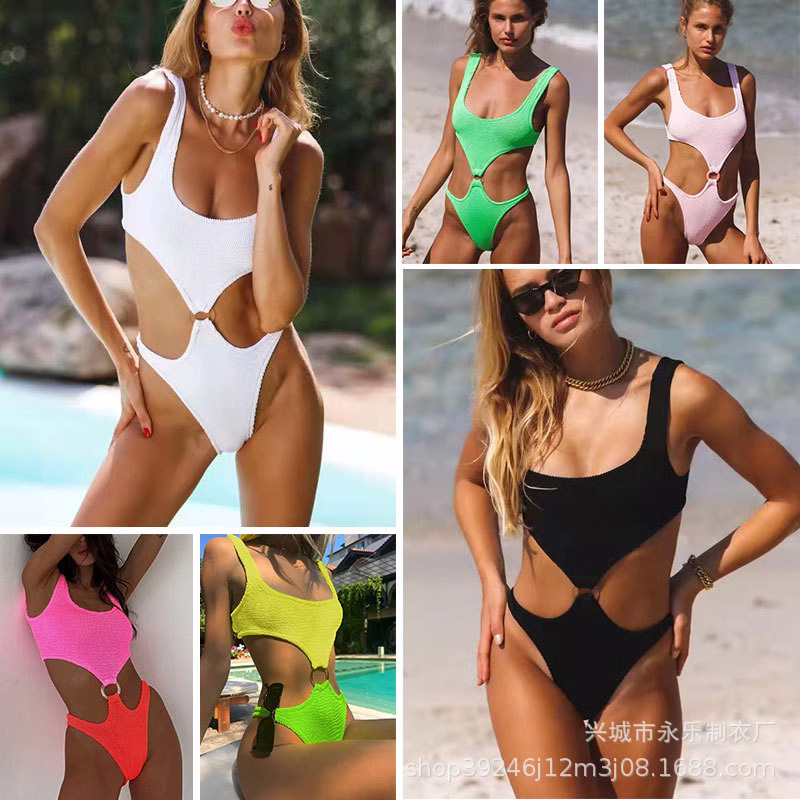 2023 새로운 유럽 및 미국 크로스 보더 솔리드 컬러 비키니 성격 중공 슬림 패션 원피스 수영복 여성 제조업체 스트레이트스토어 가기