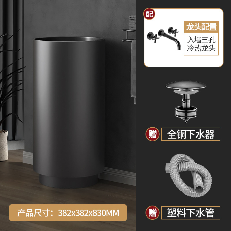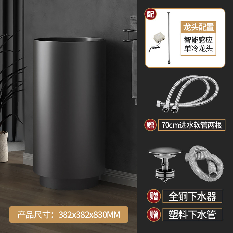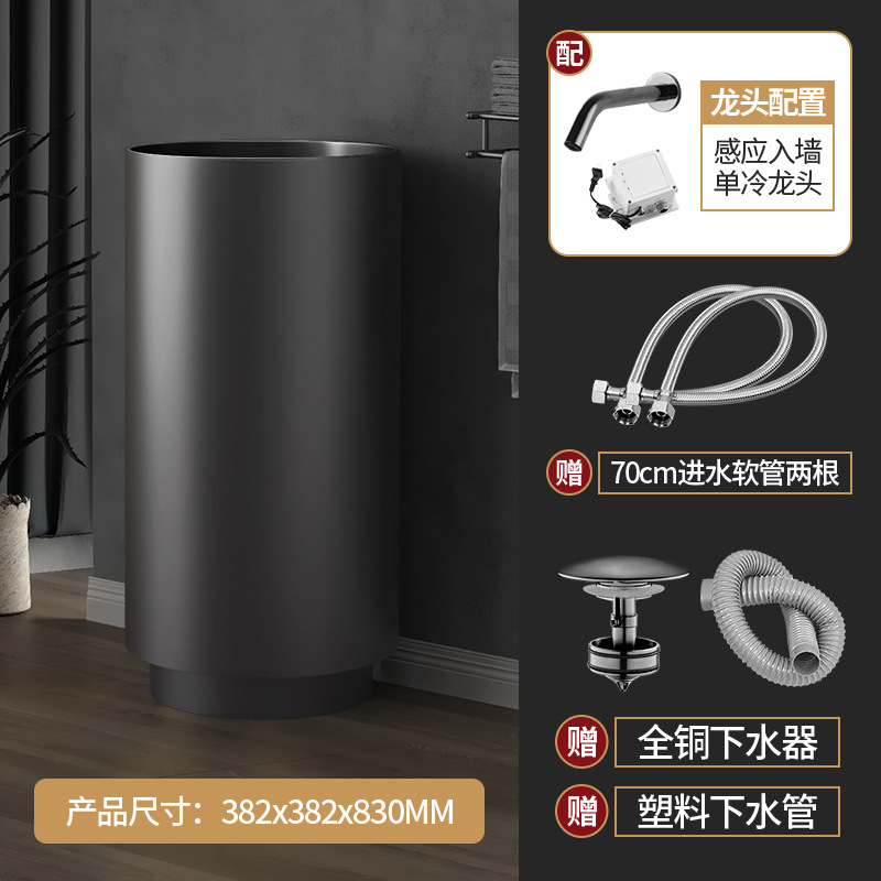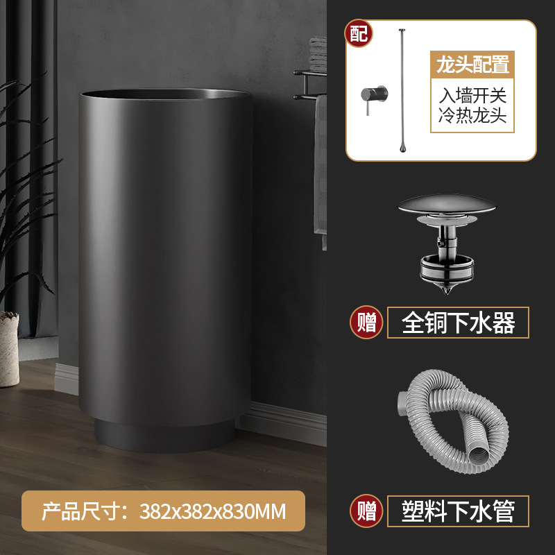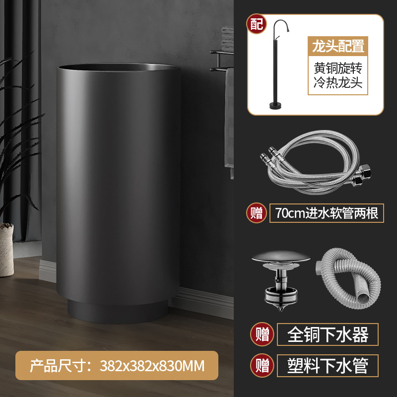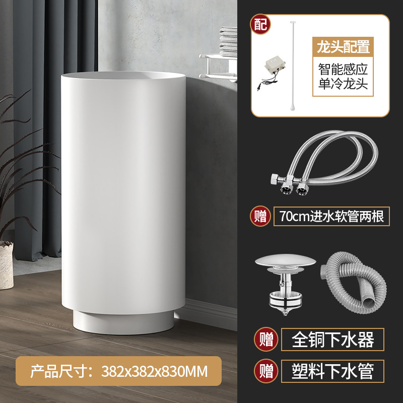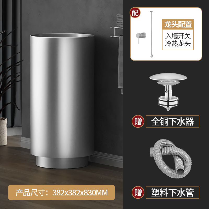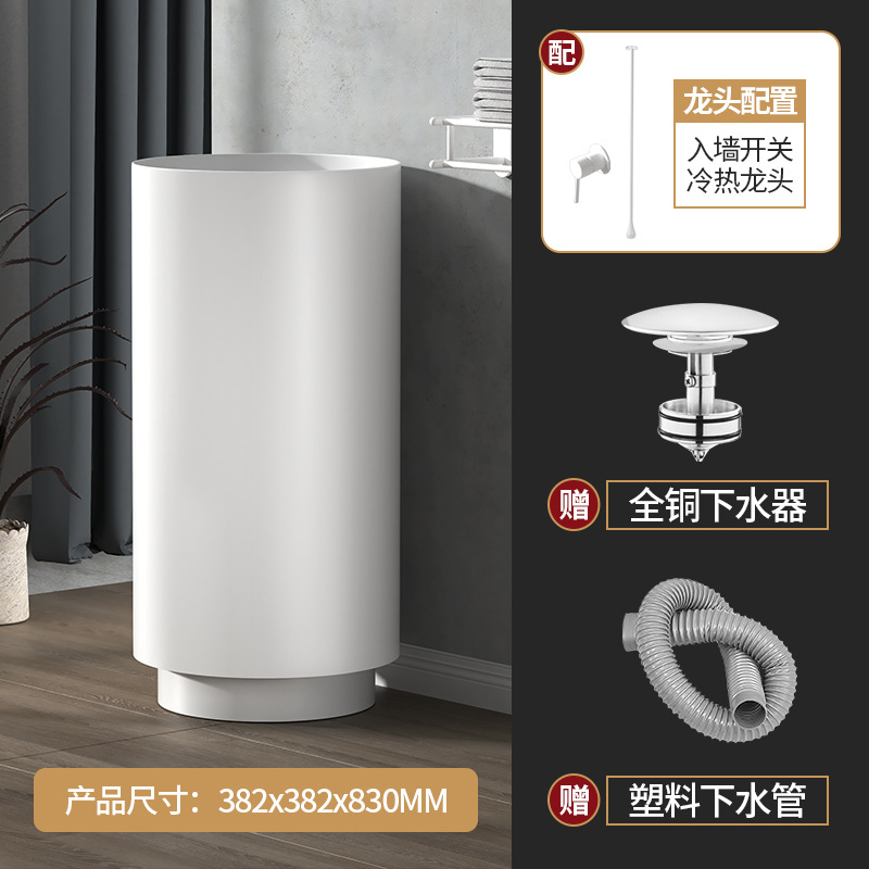 스테인레스 스틸 기둥 세면기 바닥형 통합 세면기 호텔 욕실 화이트 라운드 기둥 분지