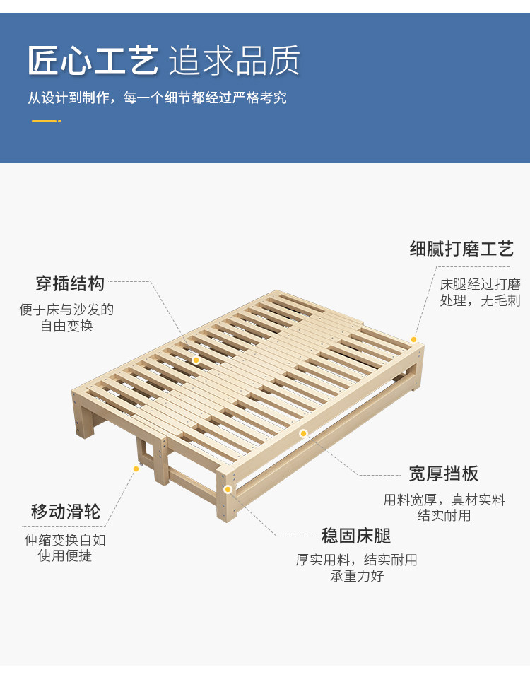 단단한 나무 소파 베드 다기능 접이식 다다미 푸시풀 텔레스코픽 침대 소형 아파트 앉아서 잠자는 이중 사용 풀풀 침대 접합