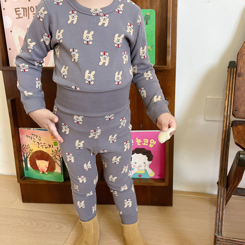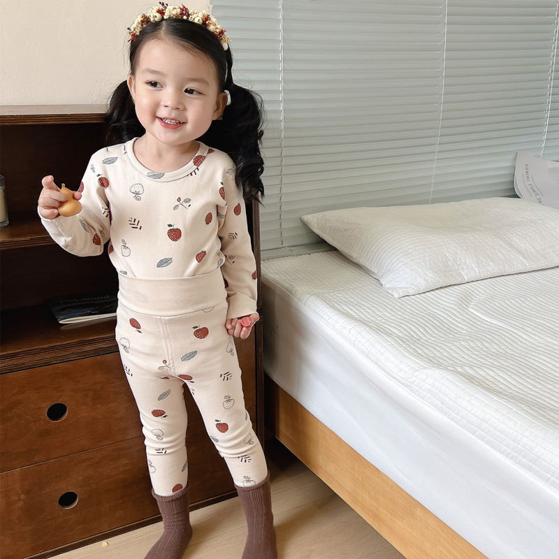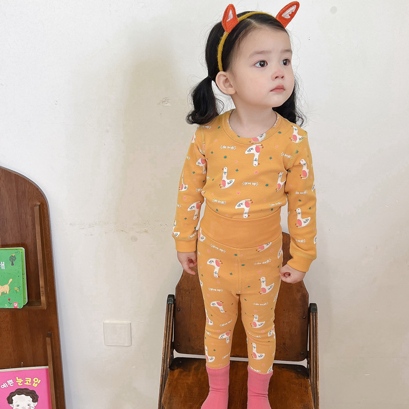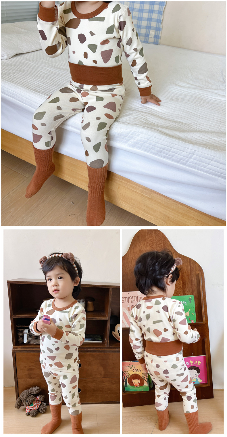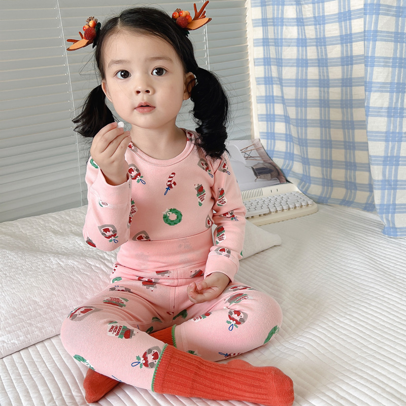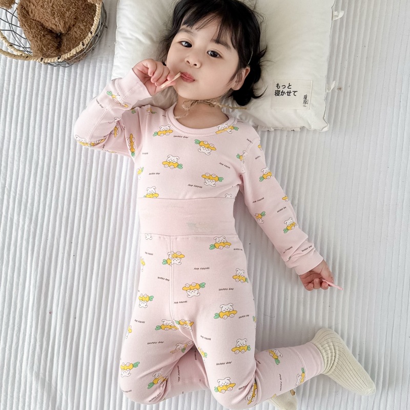 소년과 소녀를 위한 아기의 새로운 면 하이 웨이스트 속옷 세트 추적 없는 배 보호 가정 옷 가을과 겨울 두꺼운 가을 옷과 바지