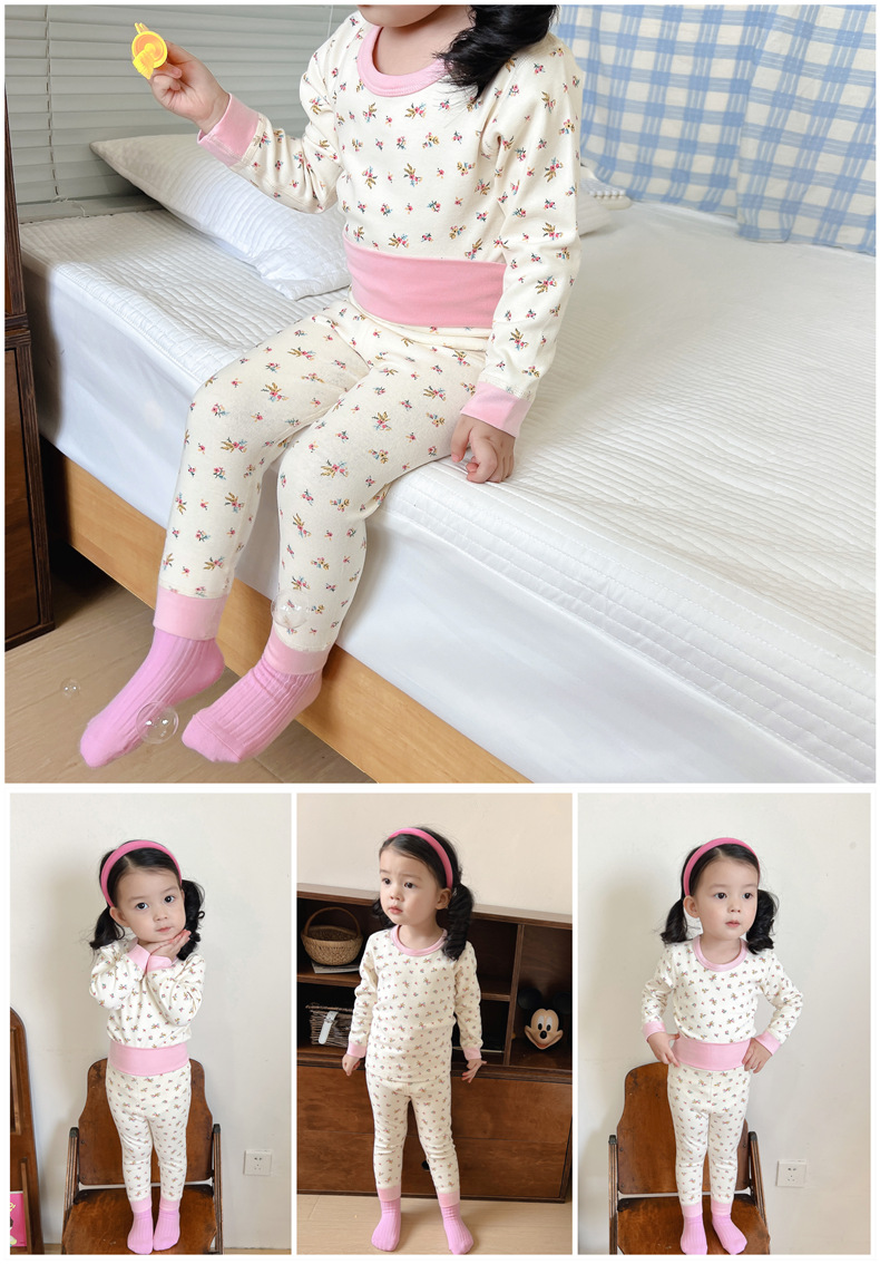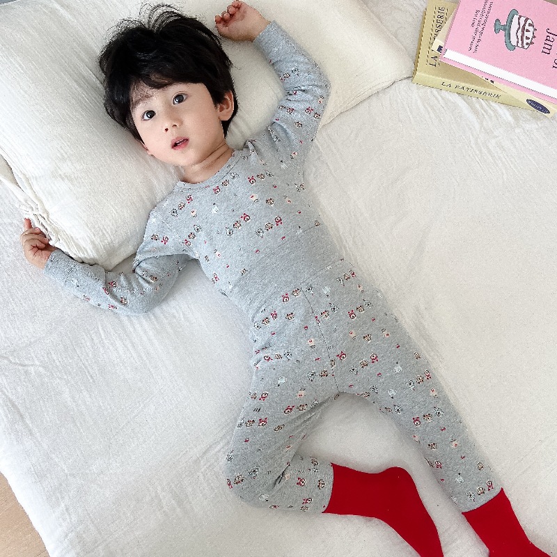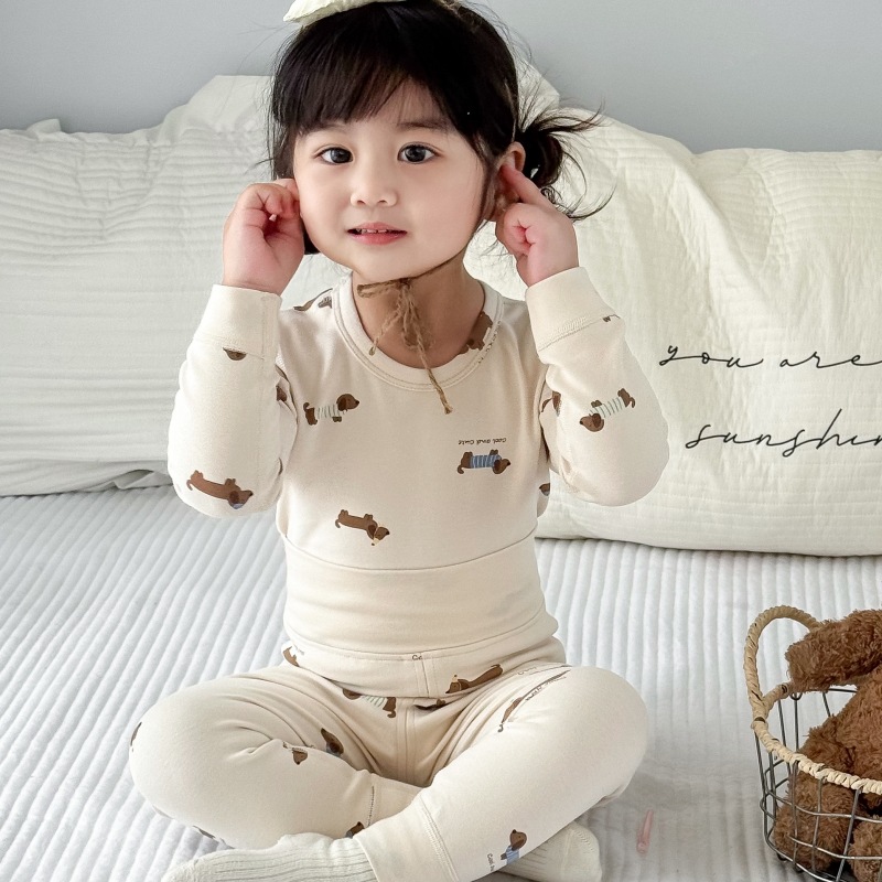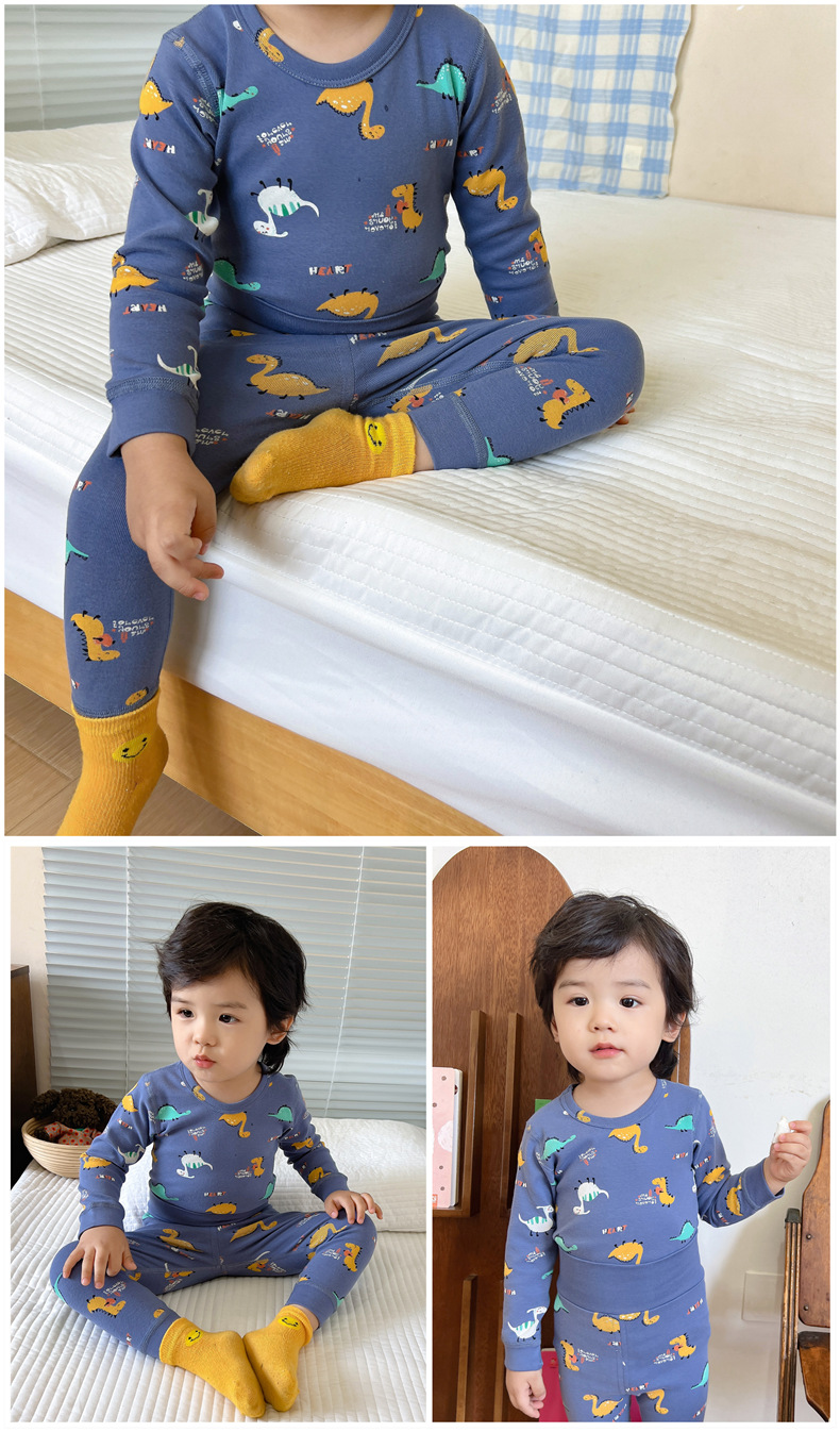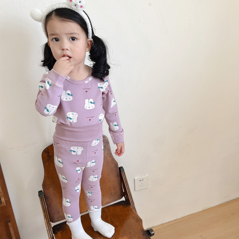 소년과 소녀를 위한 아기의 새로운 면 하이 웨이스트 속옷 세트 추적 없는 배 보호 가정 옷 가을과 겨울 두꺼운 가을 옷과 바지