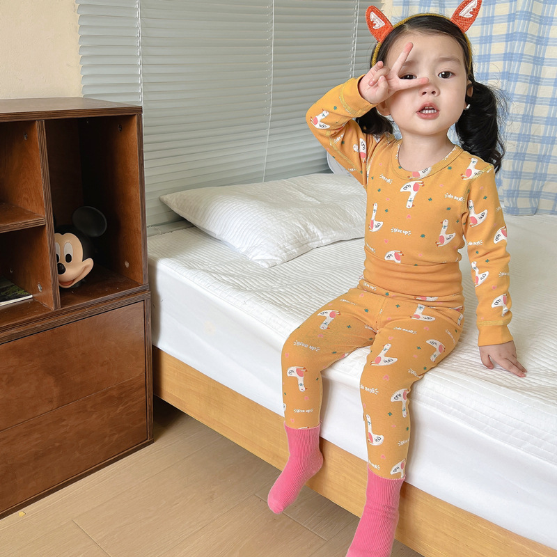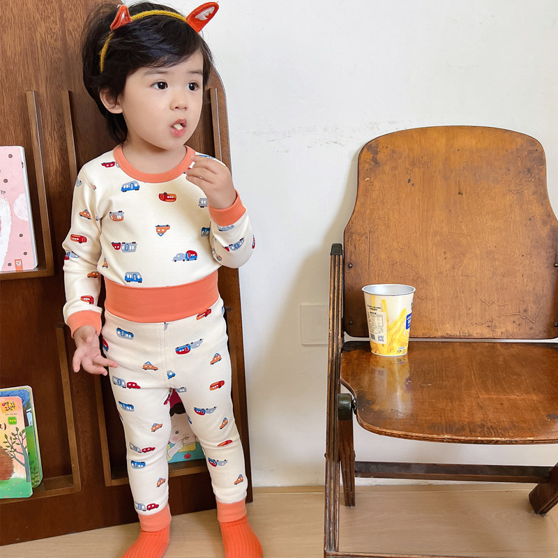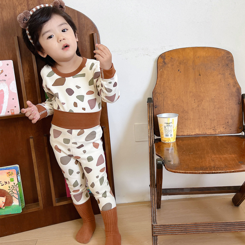 소년과 소녀를 위한 아기의 새로운 면 하이 웨이스트 속옷 세트 추적 없는 배 보호 가정 옷 가을과 겨울 두꺼운 가을 옷과 바지스토어 가기