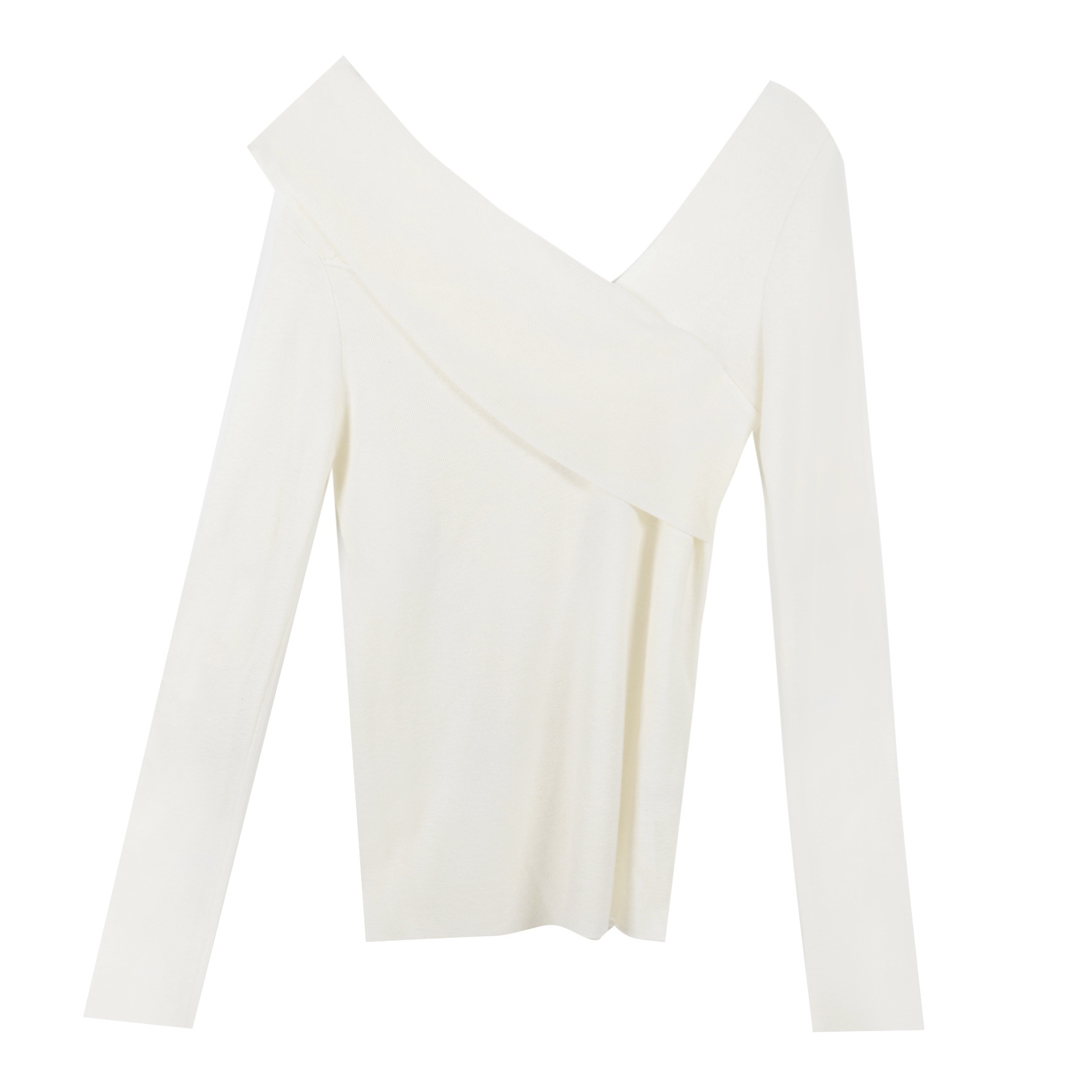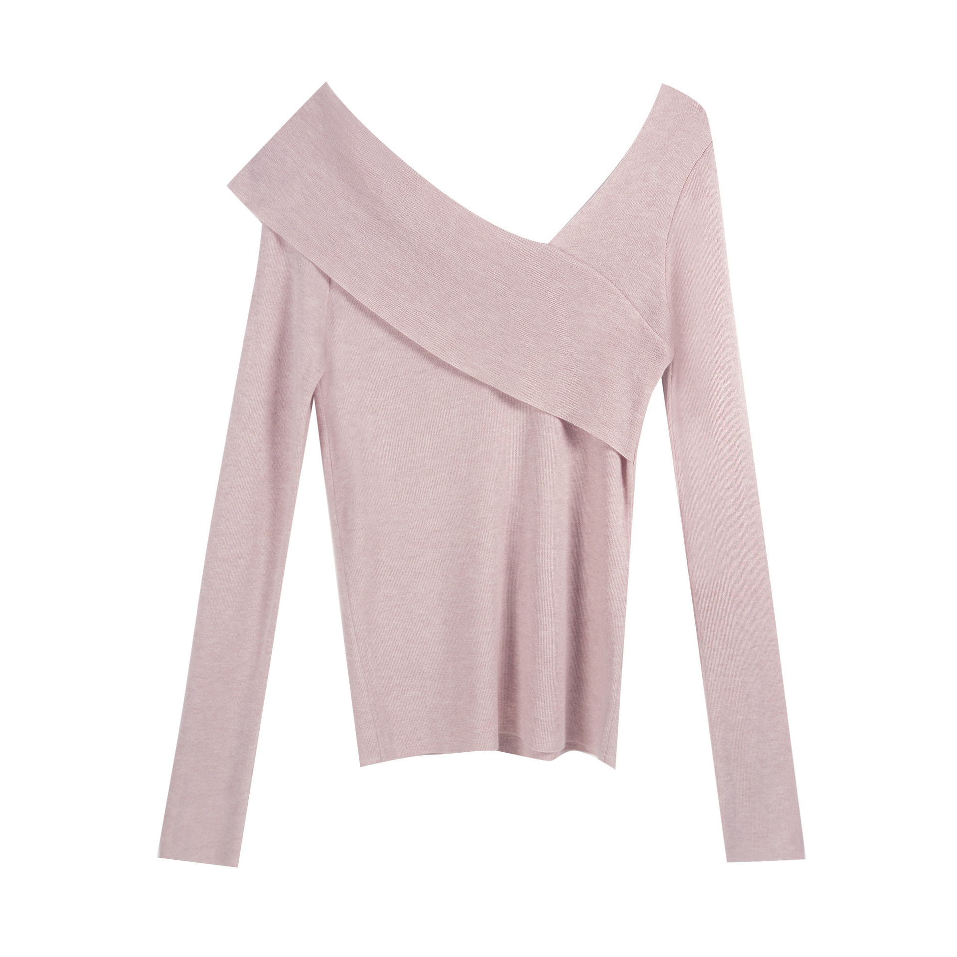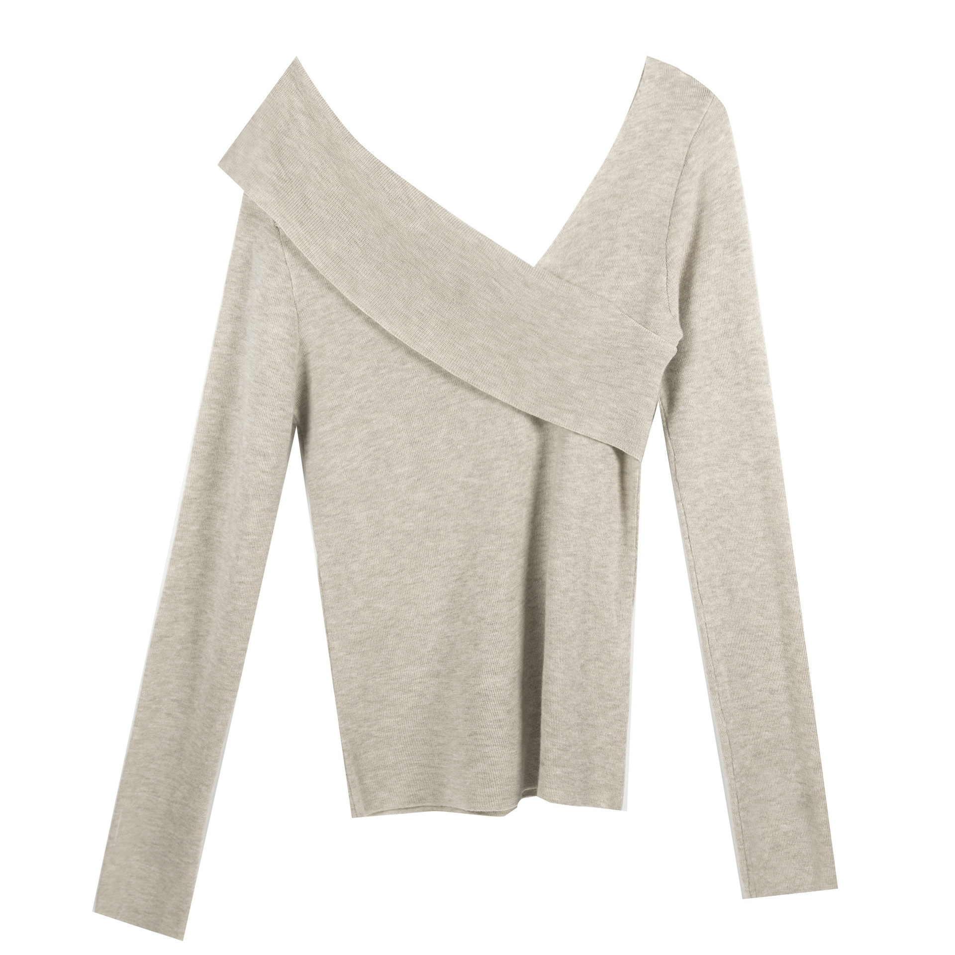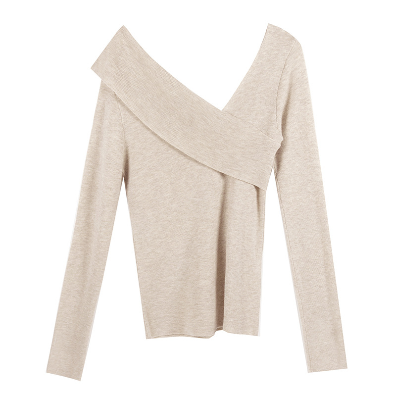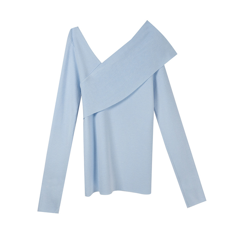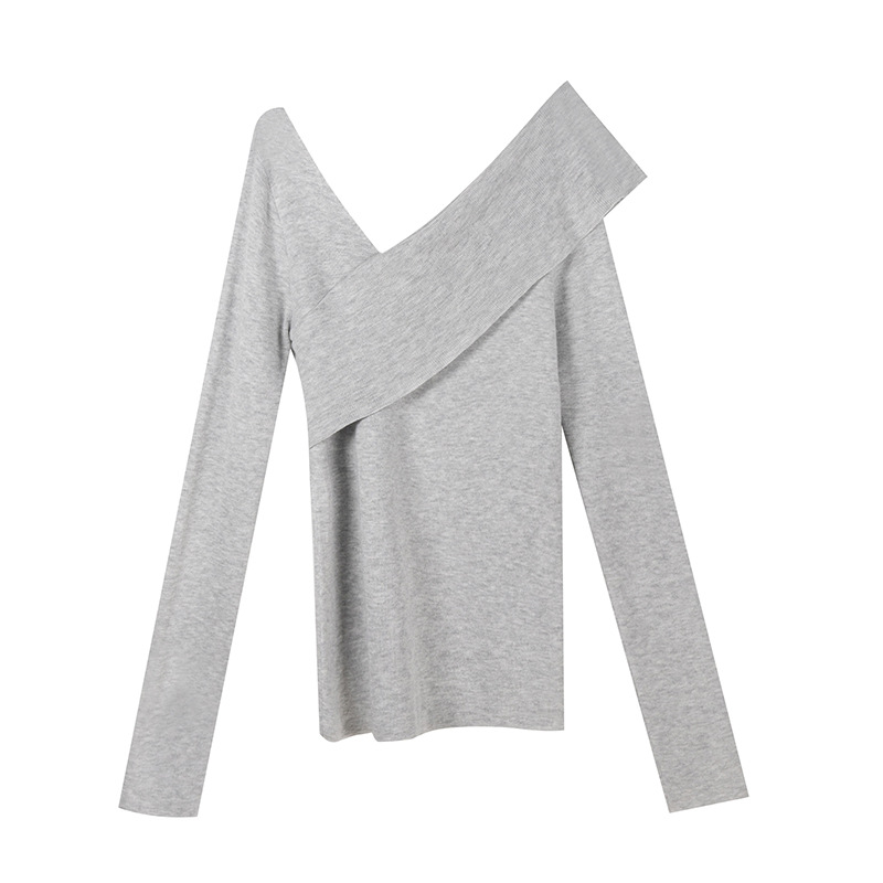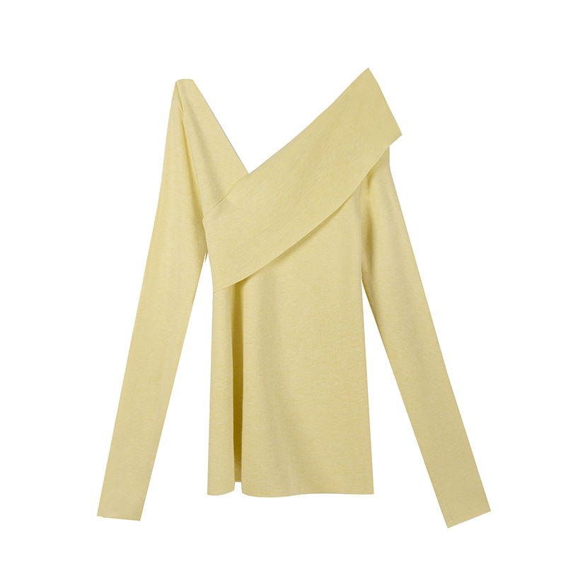 완웨이 원숄더 긴팔 니트 여성용 2025 가을 신상 슬림핏 디자인 베이직 탑 603