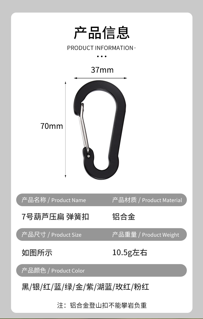 공장 공급 하이 퀄리티 7 70mm 조롱박 모양의 스프링 버클 평평한 알루미늄 합금 퀵 후크 보석 열쇠 고리