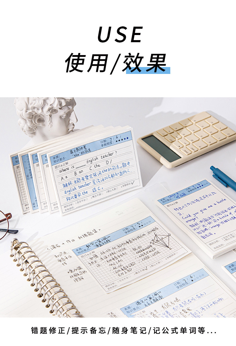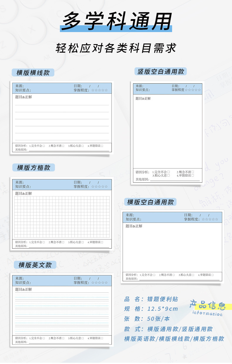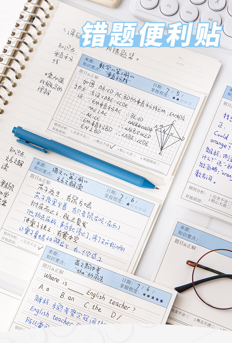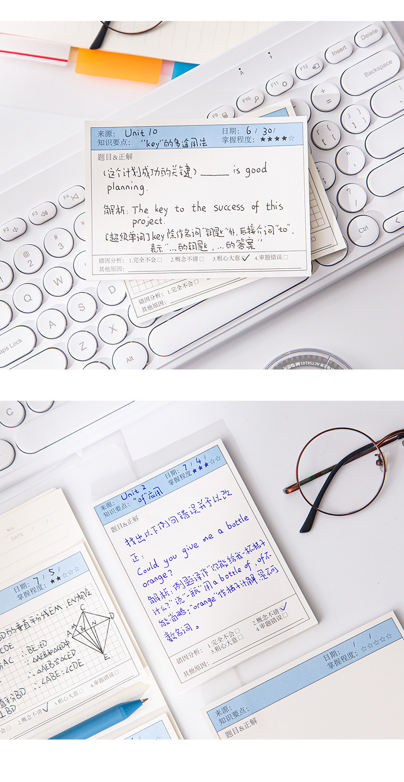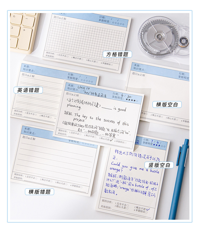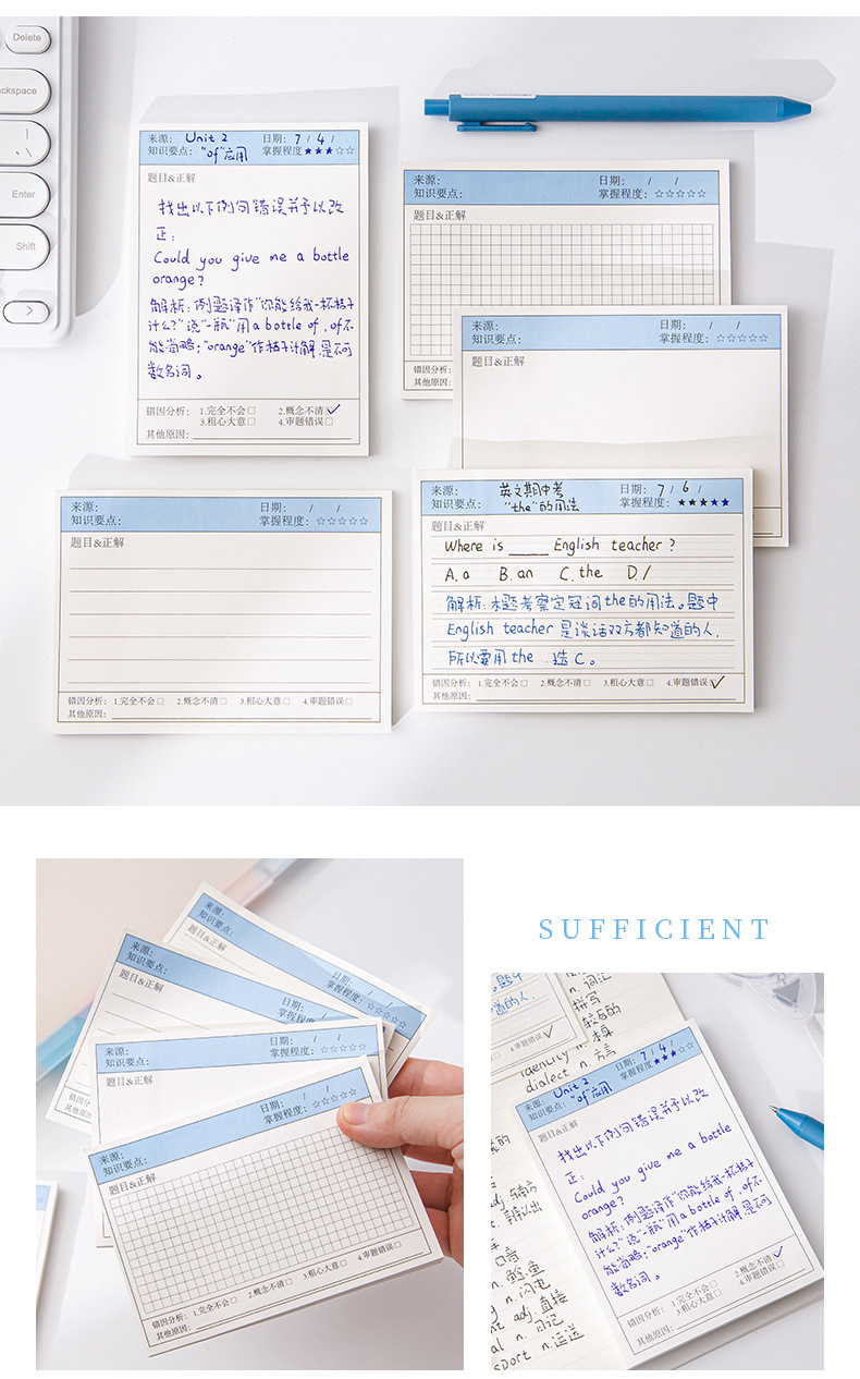 간단한 학생 다기능 라벨 용지 가로 보드 잘못된 주제 포스트잇 노트 스티커 수정 노트 용지 수정 붙여 넣기스토어 가기