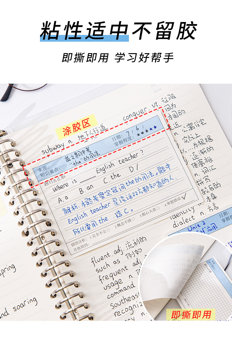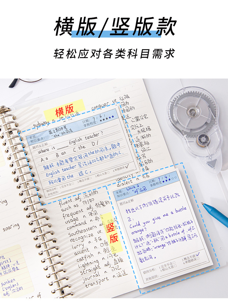 간단한 학생 다기능 라벨 용지 가로 보드 잘못된 주제 포스트잇 노트 스티커 수정 노트 용지 수정 붙여 넣기