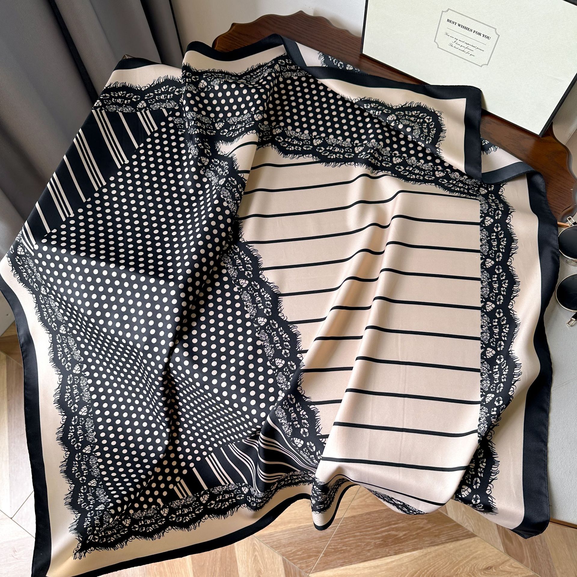 2022 New 90*90 시뮬레이션 실크 대형 사각 스카프 스카프 하운드투스 인쇄 실크 스카프 여성 액세서리 스카프 목도리