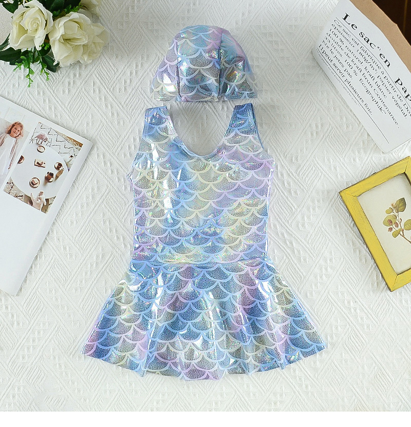 • 다채로운 치마 인어 수영복 + 둥근 수영 모자