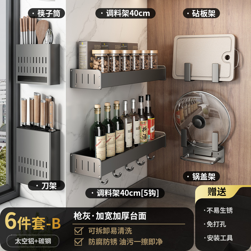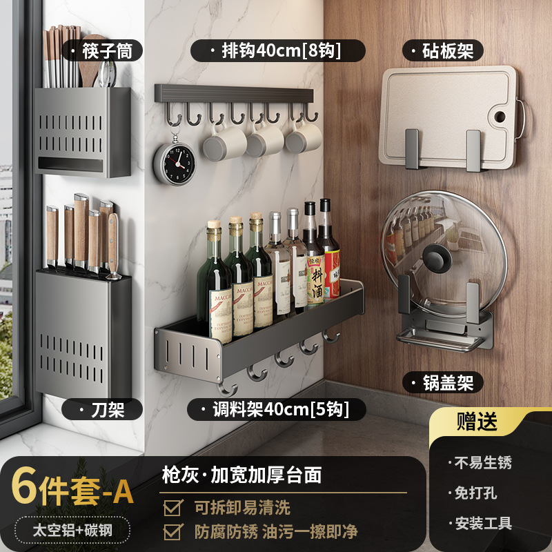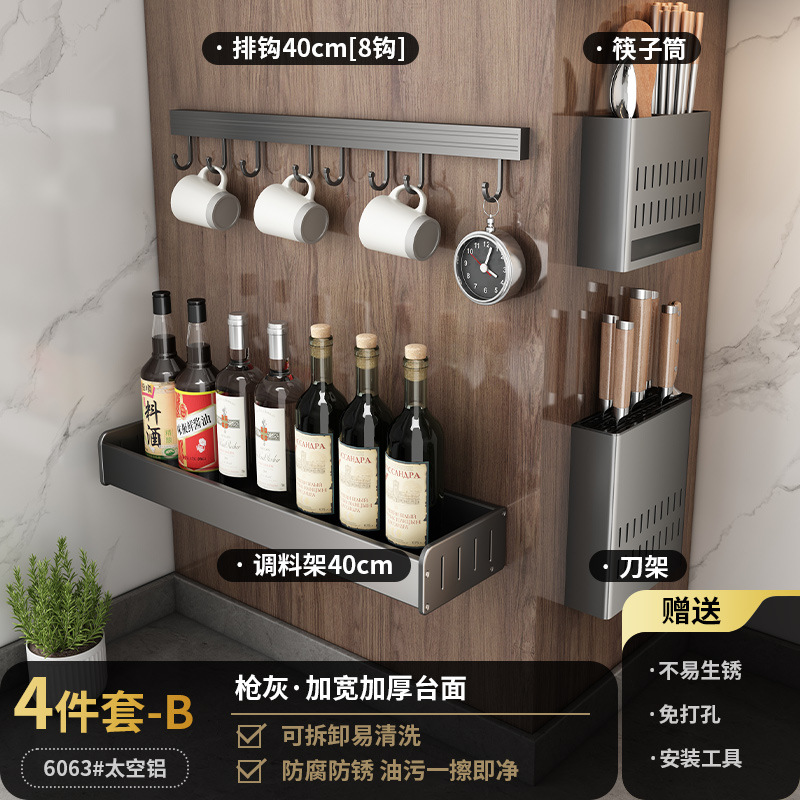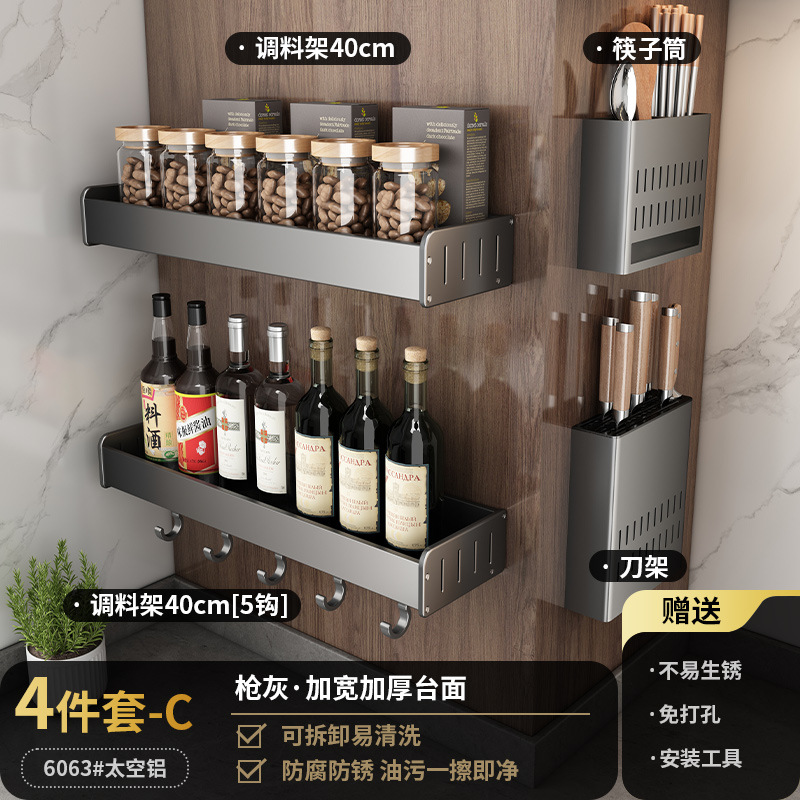 • 60cm 건 그레이 스페이스 알루미늄 조미료 랙 (펀치/펀치 프리 이중 용도)