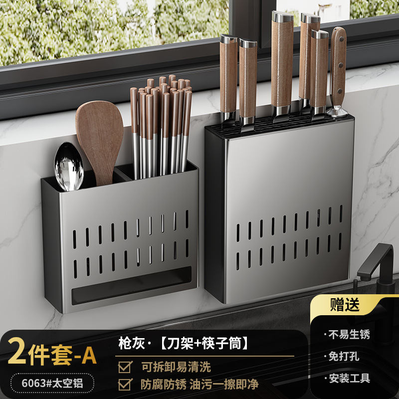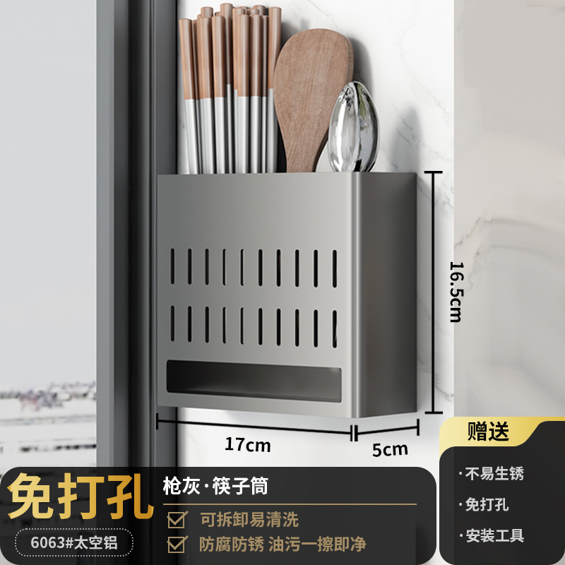 • 건 그레이 스페이스 알루미늄 젓가락 홀더 (펀치/펀치 프리 이중 용도)