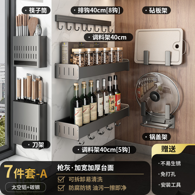 펀치없는 벽 주방 랙 벽 교수형 공간 알루미늄 조미료 랙 다기능 주방 용품 보관 랙 커버스토어 가기