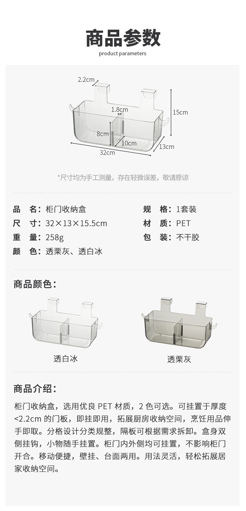型号:A0710柜门收纳盒 | 颜色:白/灰 | 规格:1个/套