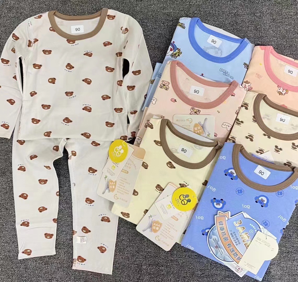 어린이 속옷 세트 소년과 소녀 라이크라 코튼 홈 옷 낮은 칼라 인쇄 가을 옷 가을 바지 어린이 긴 소매 잠옷