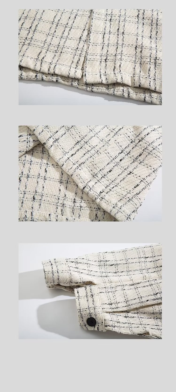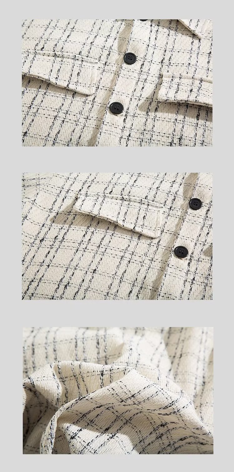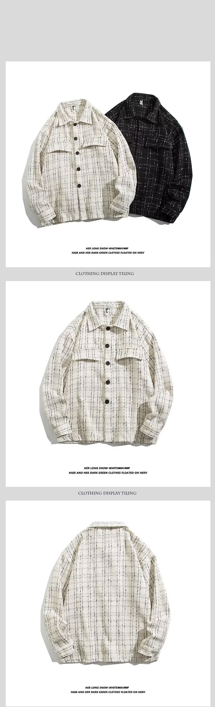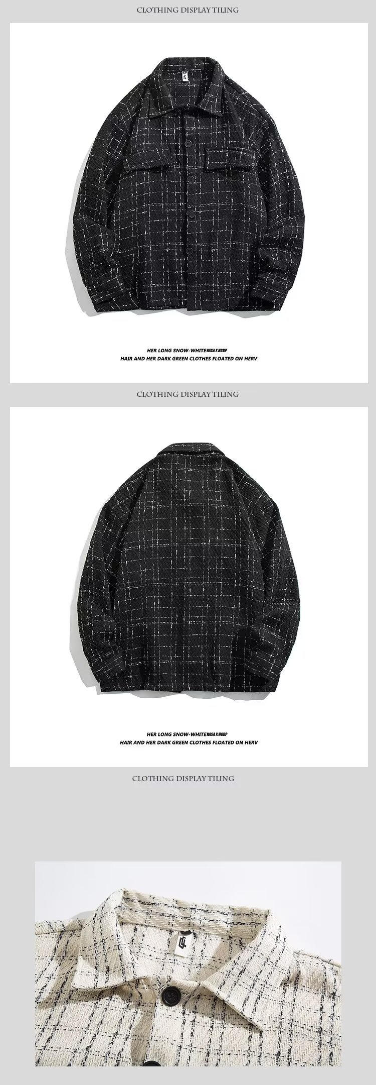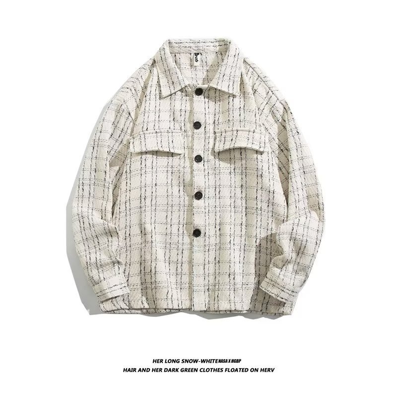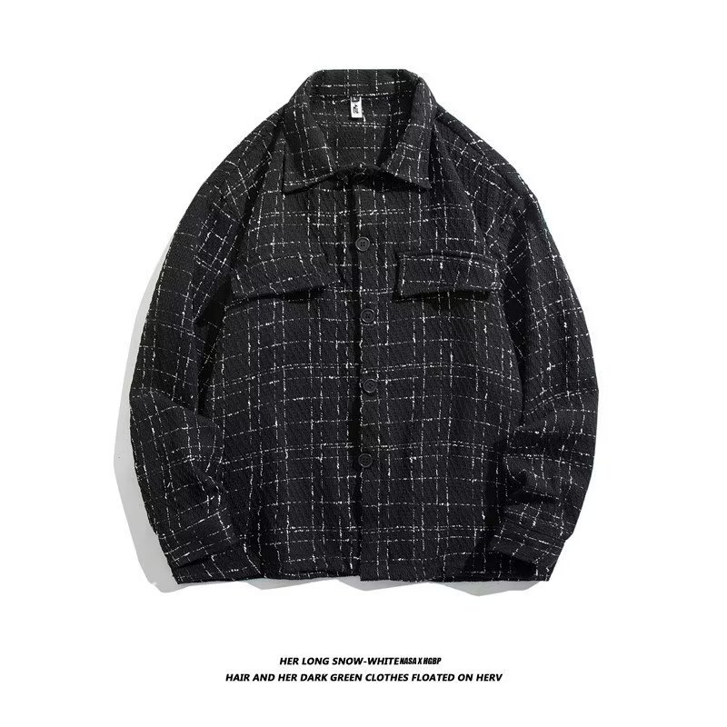 샤넬 스타일 셔츠 재킷 남자의 봄과 가을 유행 하이 스트리트 라펠 재킷 한국 스타일 느슨한 포켓 레트로 격자 무늬 탑