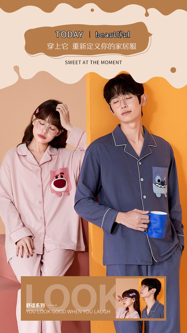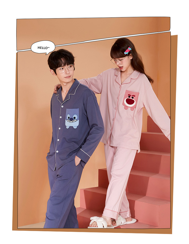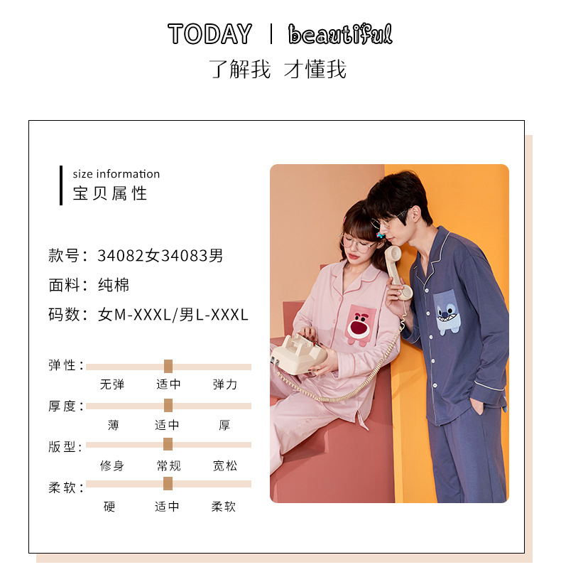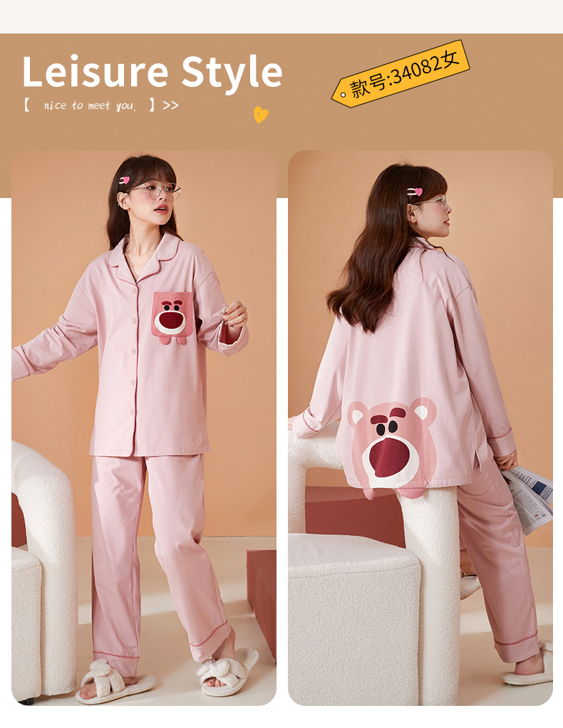 2024 가을 신상품 커플 잠옷 긴팔 면 소재 만화풍 귀엽고 달콤한 여성용 루즈핏 큰 사이즈 홈웨어 가을스토어 가기