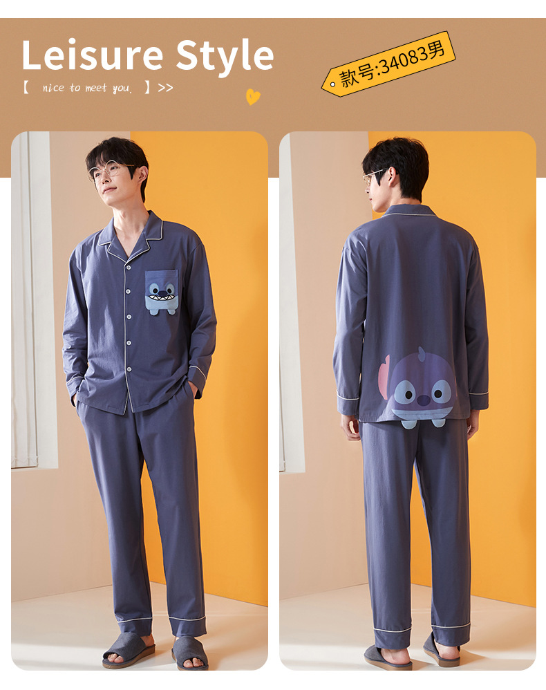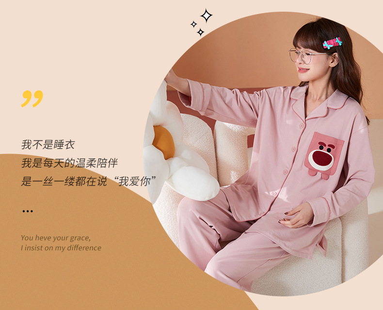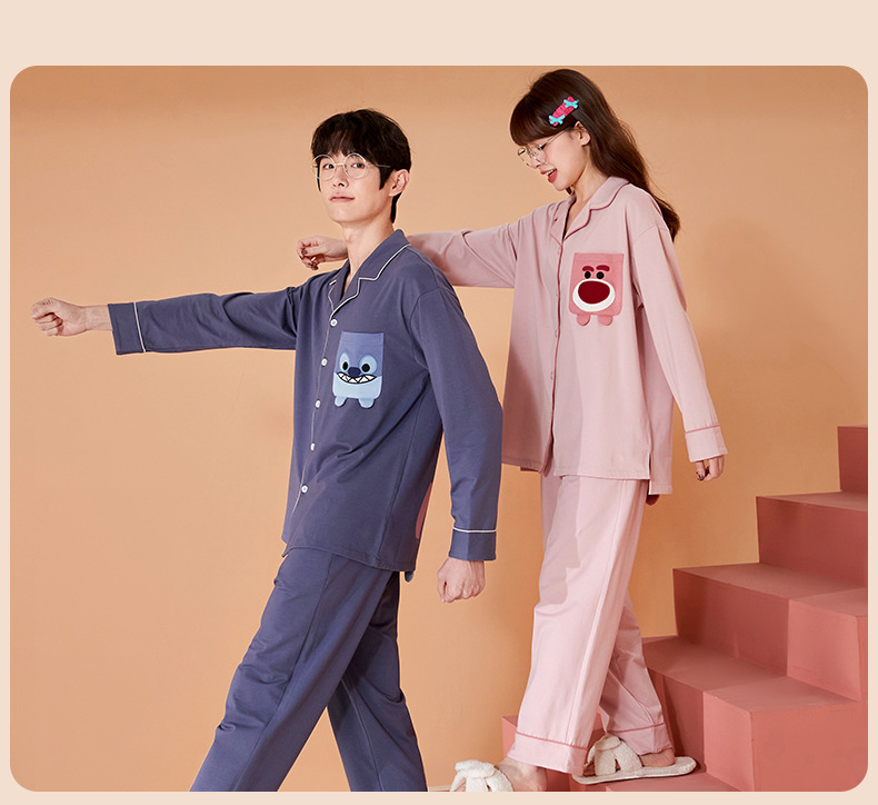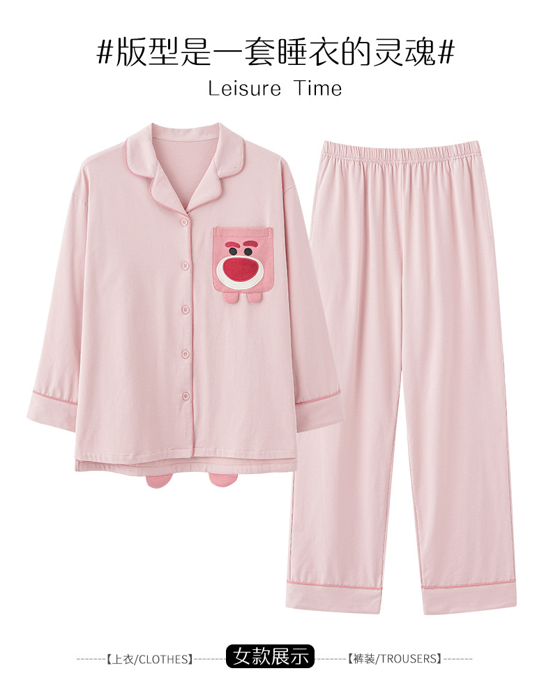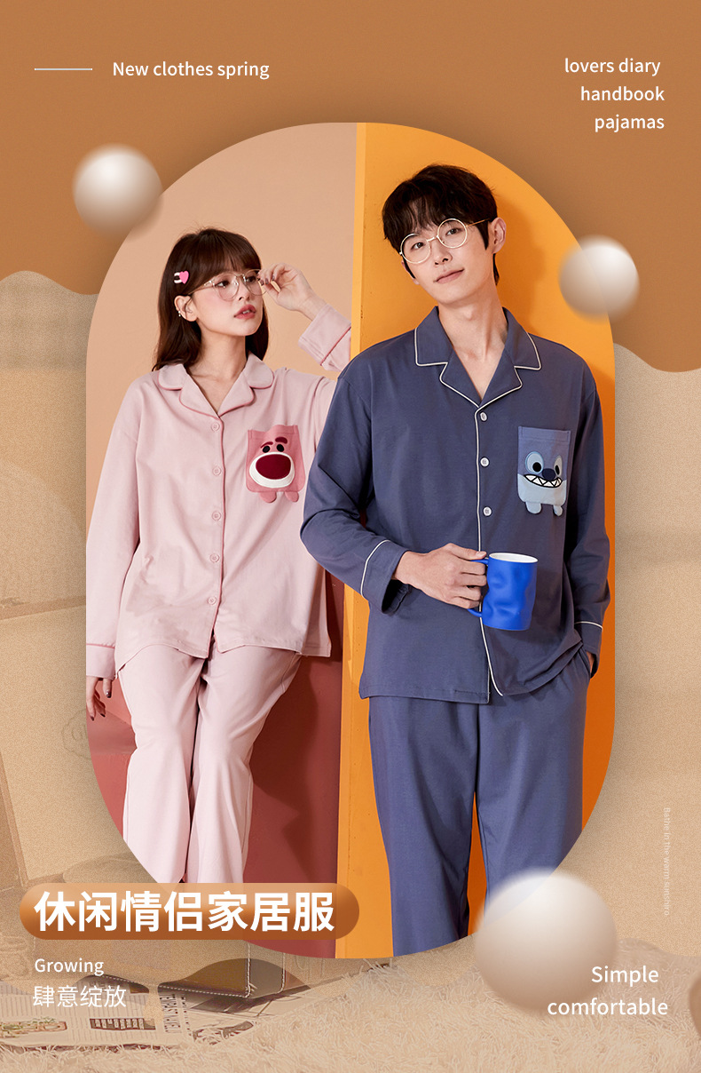 2024 가을 신상품 커플 잠옷 긴팔 면 소재 만화풍 귀엽고 달콤한 여성용 루즈핏 큰 사이즈 홈웨어 가을스토어 가기