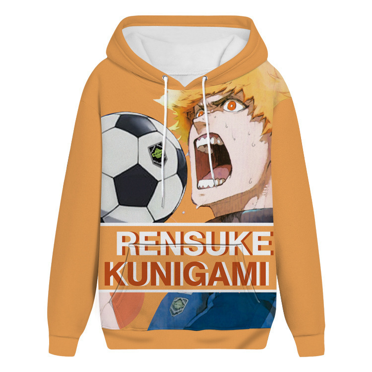 유럽과 미국의 새로운 BLUE LOCK BLUE 감옥 지퍼 재킷 남성용 3D 디지털 인쇄 느슨한 긴 소매 스웨터