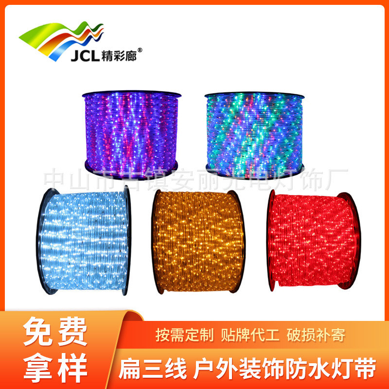 220V 크리스마스 라이트 led 무지개 튜브 평면 3 선 야외 조명 장식 방수 실내 조명 분위기 빛 벨트