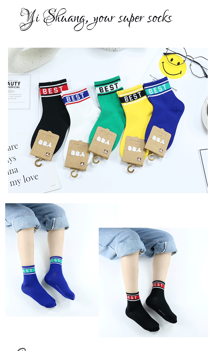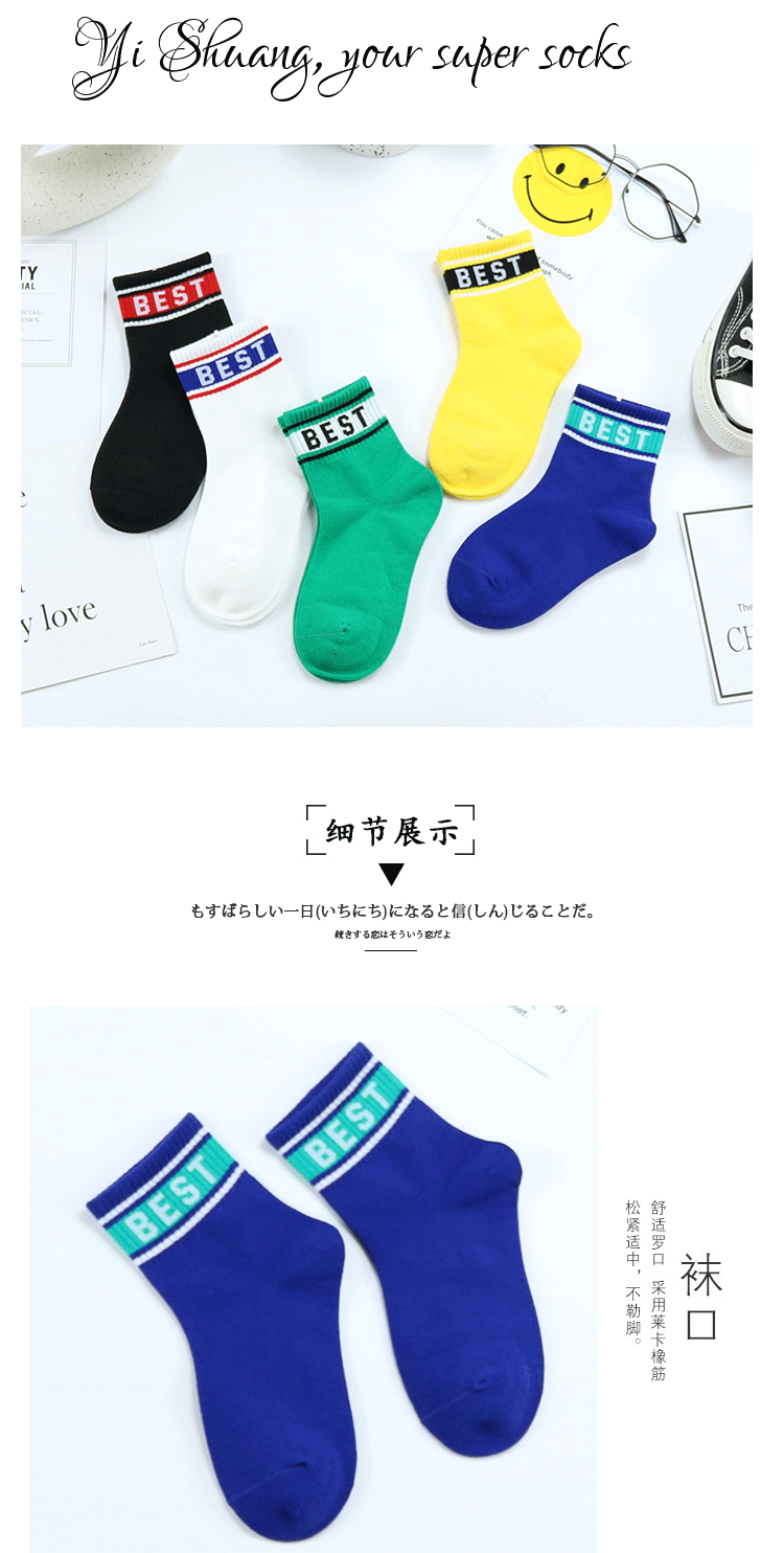 어린이 양말 이순신 쌍 가을과 겨울 새로운 한국식 편지 중간 길이 양말 빗질 면 소년 스포츠 양말 트렌디 브랜드 어린이 양말