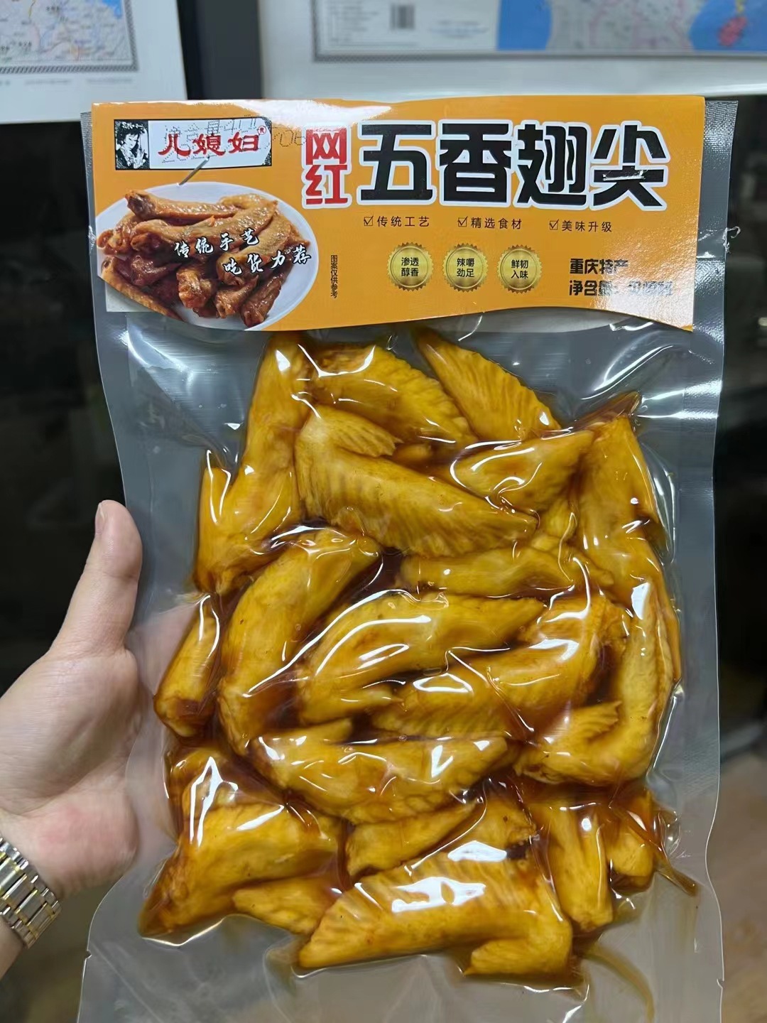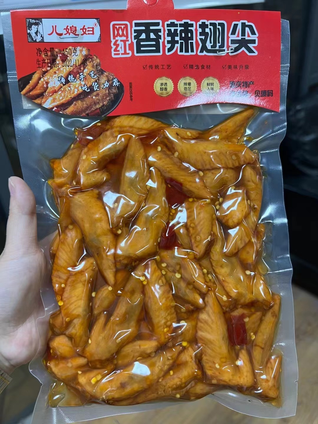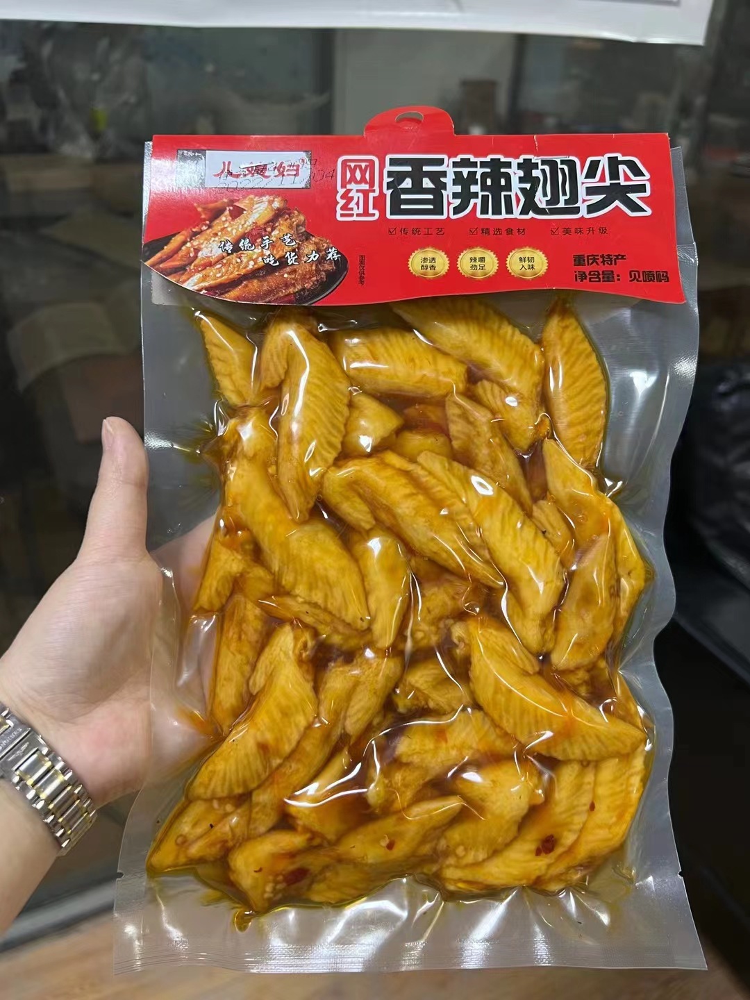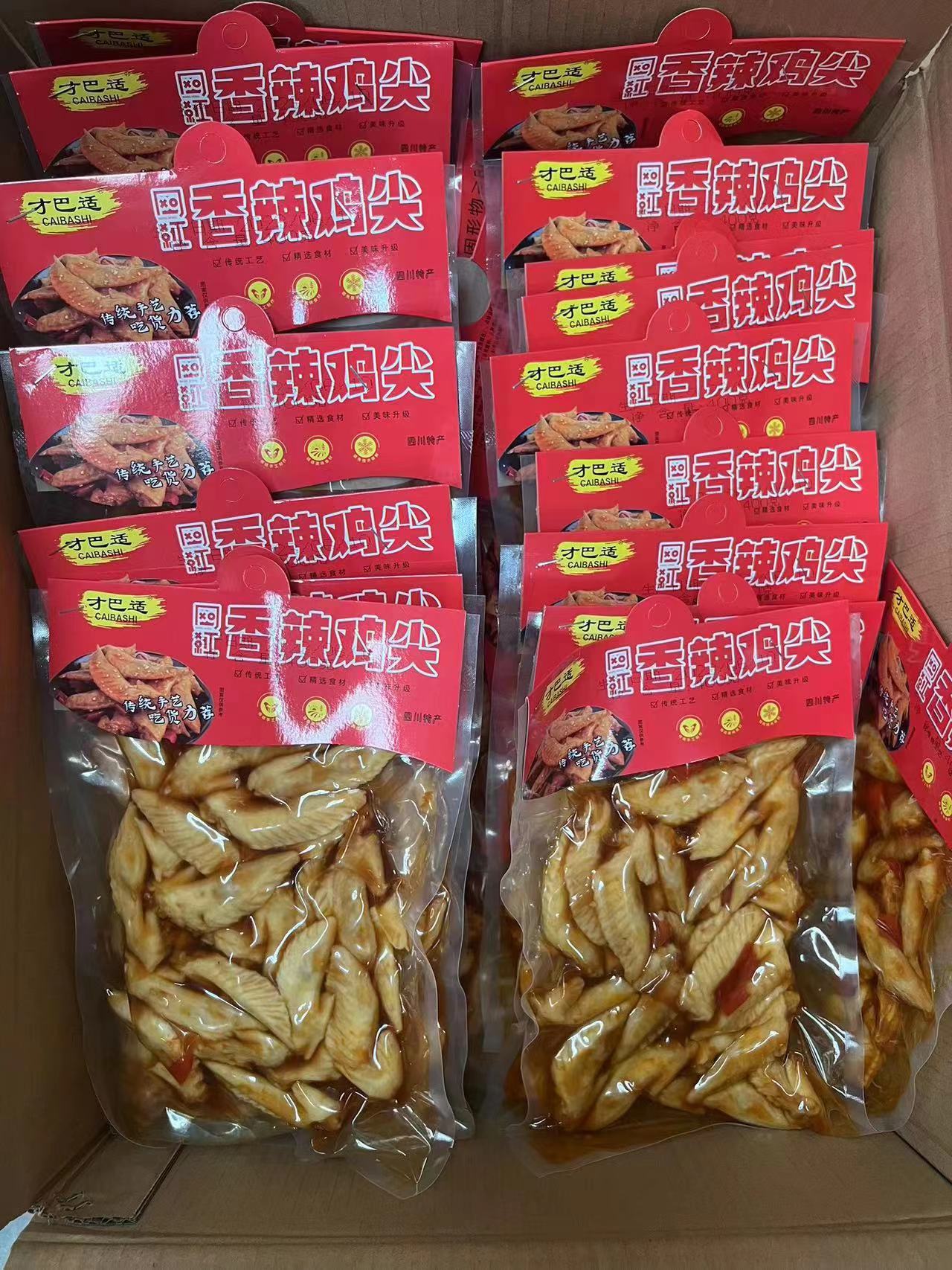 产品介绍:满口喜鸡尖一件30袋,一袋450克,五香味 麻辣味 一件一个味道, 按照30的倍数下单