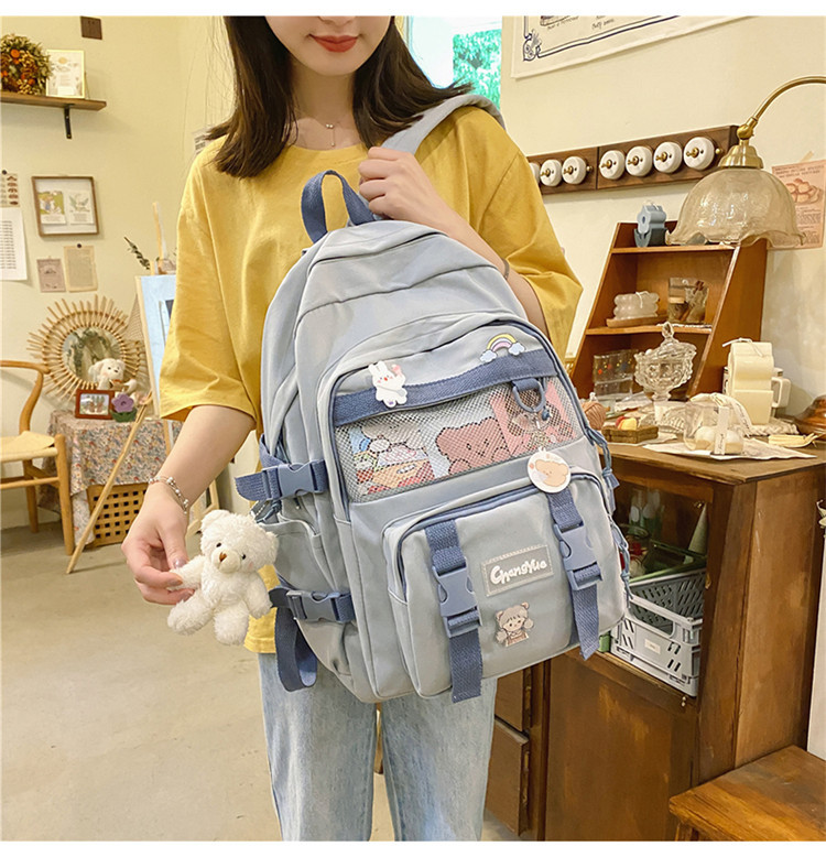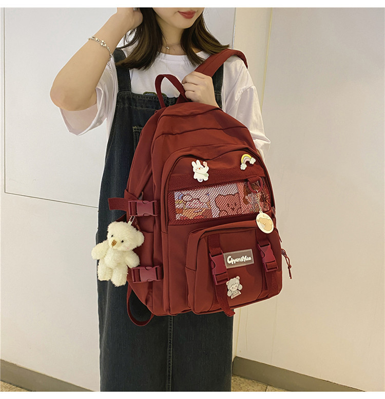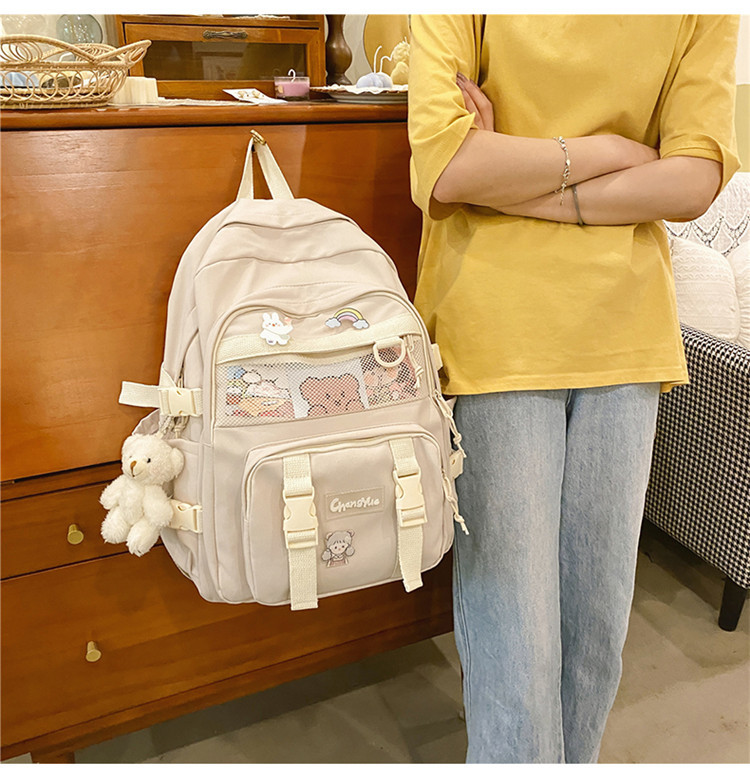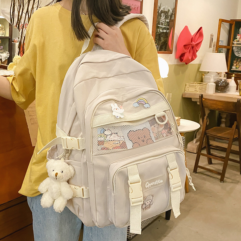 대형 백팩 여성용 다층 멀티 포켓 심플 캐주얼 고등학생 대용량 책가방 한국식 일본식 하라주쿠 단색스토어 가기